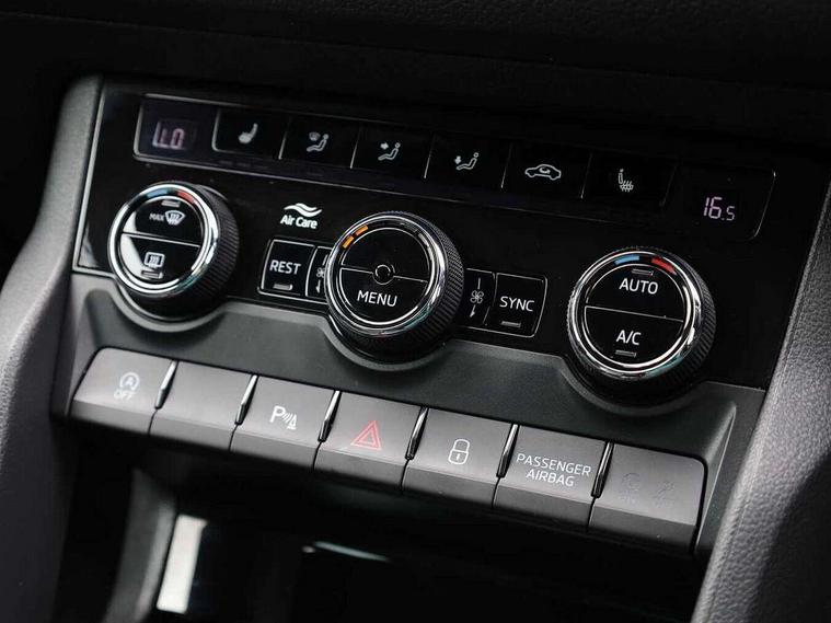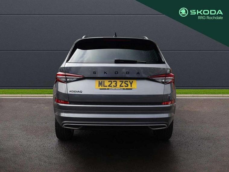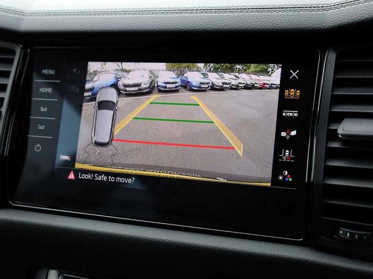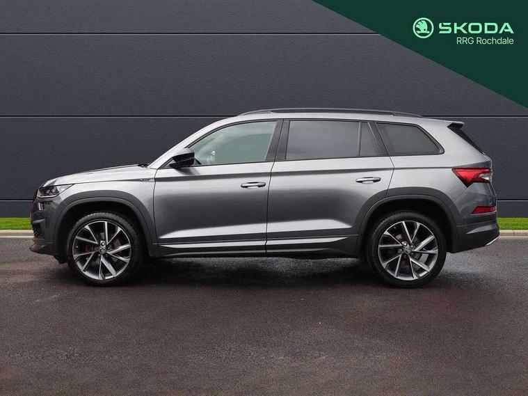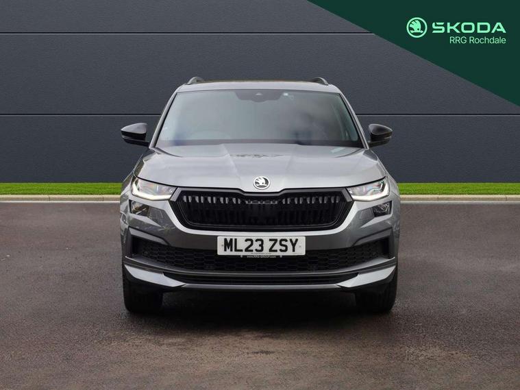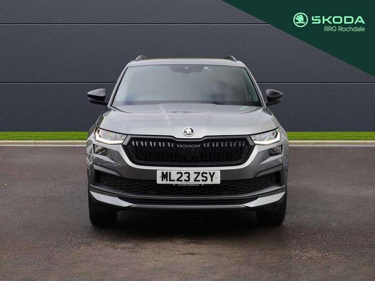 Bluetooth system, Columbus satellite navigation with 9.2" touchscreen, integrated Wi-Fi, web radio, Digital voice enhancement, e call+, ECO Stop/start function, Exterior temperature indicator, Progressive steering, Rear view camera, Smartlink wireless for apple carplay and wired for android auto, Speed limiter, Tailgate unlocking from outside, USB C Port x 2 in front centre console, Virtual Cockpit - 10.25" digital display with additional sports design, Wireless charging, 8 Speakers, DAB Digital radio, Aero front windscreen wipers with intermittent function, Aero rear window wiper, Auto dimming rear view mirror, Black roof rails, Black sports styling including front grille and window surrounds, Black wheel arch surrounds, Body colour bumpers, Body colour door handles, Electric adjustable/heated/folding door mirrors, driver side auto dimming with boarding sports and memory function, Electric front and rear windows, Extended rear spoiler with finlets in gloss black, Front fog lights, Full LED matrix headlights with AFS (adaptive front light system), cornering function and AWL (all weather lighting system), Gloss black door mirrors, Headlight washers, Heated rear window, Invisible tailpipe, LED daytime running lights, LED rear fog light, LED third brake light in rear spoiler, Light assistant (coming/leaving home/tunnel light), Off-road style lower front bumper element, Privacy glass, Rain and light sensors, Rear diffuser, Rear LED lights (high functionality) with welcome effect and dynamic indicators, Rear side wing doors, Safety reflectors on front and rear doors, Sportline badge on front fender, Sports front and rear bumpers including lower rear chrome strip, Tailgate lettering in Black, Window control switches with black trim, 12V socket in boot, 2 rails with 2 hooks, 2 seat bench in 3rd row, 3 seat bench in 2nd row, 4 foldable roof handles with rear coat hooks, 60:40 foldable rear seat with sliding adjustment and backrest angle adjustment, Aluminium pedals, Black roof headlining, Bottle holders in door panel in the 1.5 litre front and 1 litre rear, Cargo storage compartments, Chrome headlight control button, Chrome interior door handles, Coat hooks on B pillar, Covered storage compartment on driver side, Decorative door sill covers, Front and rear door armrest with black adductor trim, Front centre armrest with storage compartment, cup holder and 12V socket, Front courtesy lights, Gear shift lever with chrome frame and black gloss insert, Grey stitching in front and rear armrests and door armrests + door inserts, Height adjustable front headrests, Illuminated and cooled glovebox, Illuminated luggage compartment, Isofix child seat fittings in outer rear seats with top tether, Manually adjustable steering column, Microsuede door panels, Net programme in boot (1x horizontal Net, 2x vertical Nets), Overhead glasses storage compartment, Pollen filter, Rear centre armrest with cupholders, Single front passenger seat, Sliding trunk cover, Small Bags on the inner sides of the front backrests, Sports seats, Sunvisors with illuminated vanity mirrors, Three rear height adjustable headrests, Ticket holder on A Pillar, Umbrella in door panel, Variable boot floor, LED Interior light pack - Kodiaq, Auto door release and activation of warning lights in the event of an accident, Child locks on rear doors, Driver and front passenger airbag with knee airbag and front passenger airbag deactivation, Electronic parking brake with hill start assist, Emergency rear braking signal, ESC (incl. ABS+MSR+ASR+EDS+HBA+DSR+RBS+MKB), Front assist with autonomous emergency braking, Front side airbags with curtain airbags, Fuel cut off safety device, Height adjustable front 3 point seatbelts + pretensioners, Hill hold control, Rear disc brakes, Safety vest holder in door, Seat belt reminder for all seats, Three point rear seat belts, Two tone horn, Tyre pressure monitor, Alarm with interior monitoring and tilt sensor with safe function, Anti-theft wheel bolts, Immobiliser, Keyless entry and start system (KESSY), Remote central locking with 2 keys, Black air vent surround, Carbon finish dashboard and door inserts, Grey stitching in dashboard, 20" Vega Anthracite alloy wheels, Temporary spare wheel (space saver),