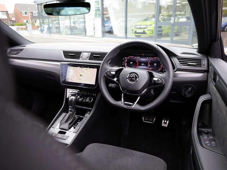 Bluetooth system, CareConnect and Emergency Call, Columbus HDD satellite 3D map navigation with 9.2" colour touch screen, web radio, integrated Wi-Fi, Driver fatigue sensor, Front assist with pedestrian protection, Progressive dynamic steering, Stop/start engine system and energy recovery, Virtual cockpit, Voice control system, Wireless smartlink apple carplay, SmartLink+ android auto, XDS+, 2 USB ports, Bolero radio with 8" touchscreen display, DAB Digital radio, 3rd brake light, Aero front windscreen wipers with intermittent function, Auto dimming rear view mirror, Black rear badge, Body colour door handles, Cornering front fog lights, Electrically adjustable heated and folding door mirrors with memory function, Front and rear electric windows, Full matrix LED headlights with AFS LED DRL integrated with headlight washer LED rear lights(High function), dynamic indicators and lighting animation, Gloss black exterior door mirrors with sports styling including front grill, side strip and window surrounds, Gloss black grille surround with gloss black rib elements, Gloss black rear spoiler, Gloss black strip between rear lights, Light assistant (coming/leaving home/tunnel light), Privacy glass, Rain sensor, Rear exhaust diffuser styling elements, Rear side wing doors, Sport Line badging, 12v power point in centre console, 3 seat bench in 2nd row, Black roof headlining, Black textile floor mats, Carbon optic interior elements, Electric auxiliary air heater, Front and rear footwell illumination, Front armrest with storage box, Height adjustable front and rear head restraints, Ice scraper, Illuminated and cooled glovebox, Interior lights with control switches, Isofix child seat fittings on outer rear seats, LED front and rear reading lights, Microsuede/leather upholstery with silver diamond stitching sports seats, One umbrella compartments in driver door with one umbrella in drivers door, Overhead glasses storage compartment, Rear centre armrest with cupholders, Removable parcel shelf, Single front passenger seat, Split folding rear seats, Storage compartment with cover in luggage compartment side panels, Ticket holder on A Pillar, LED package plus - Superb, 3 rear seatbelts, 7 airbags - Front, front side, curtain, driver's knee airbag with front passenger deactivation switch, Driver and passenger seatbelts with warning light, Electronic parking brake, ESC including ABS, EBV, MSR, ASR, EDS, HBA, DSR, RBS, CBC, multi-collision brake (MKB) and Auto hold, Hill start assist, Power operated child lock in rear doors, Tyre pressure monitor, Alarm with interior monitoring tilt sensor and back up horn, Electronic engine immobiliser, Keyless entry and start/stop, Remote central locking with SAFE system, Third remote key,