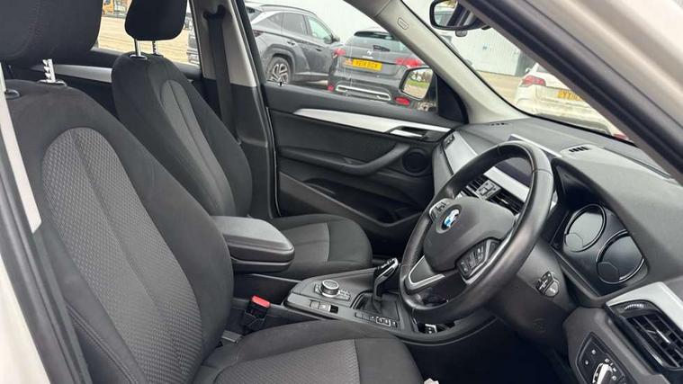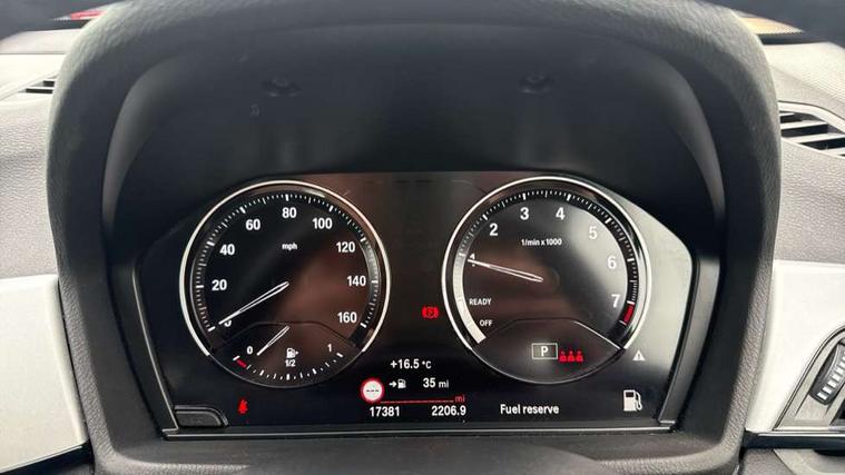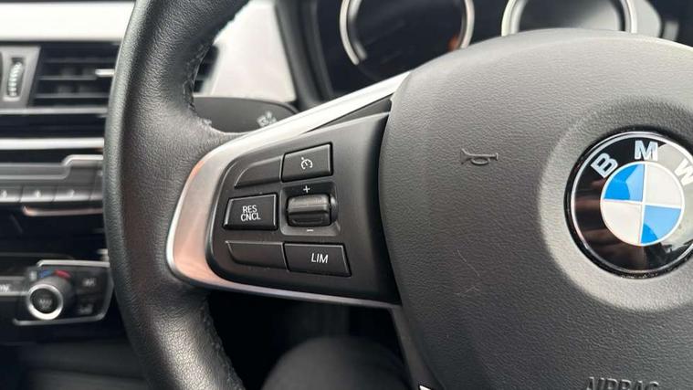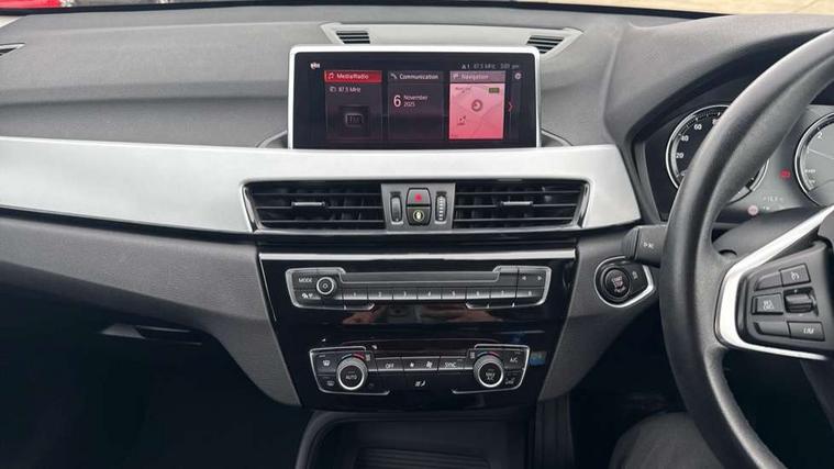 Active Guard incl speed limiting and lane departure functions with auto steering, and front collision warning with brake intervention, Ambient temperature display, Apple CarPlay, Arrow pointers, north up, direction of travel and perspective map displays, Attentiveness assist, Automatic tailgate opening, BMW ConnectedDrive, BMW Online services, BMW remote services, BMW Teleservices, Brake pad wear indicator in front and rear, Characteristic map controlled oil pump system, Cruise control with brake assist, Front axle single joint with specific axle kinematics to minimise drive influences on steering + provide increased rigidity agile driving behaviour, Front/rear park distance control (PDC), Instrument cluster with Black optic display featuring superimposed dials and 5.7" colour display, Instrument cluster with speedometer with miles per hour read out, tachometer and fuel gauge, Integrated hard drive with map data updates via USB interface, Lights on warning by audio warning signal when ignition is switched off, On board computer, Operation by iDrive with direct selection buttons and 8 programmable buttons, Optimum shift indicator, Outside temperature gauge, Park assist system, Personal Profile - automatic lock when driving away selectable, Real time traffic information, Rigidly mounted rear subframe - Multi link construction with separate spring / damper configuration and excellent driving characteristics, Service interval indicator, Servotronic PAS, Tyre puncture warning system, 12V compressor with integrated sealant injection bottle and hose, Aluminium lightweight construction including crankcase, Anti-roll bars, Balancer shaft, Double VANOS, Drive performance control with ECO PRO comfort + sport mode, High precision injection, Performance Control, Seven speed dual clutch automatic transmission (DCT), Standard suspension, Stop/start function, Turbocharger with Valvetronic, Twin tube gas filled shock absorbers with degressive characteristic curve, BMW professional radio includes amplifier power 100w, Two mide range speakers in door trims and two woofers as central bass speaker under front seats, DAB Digital radio, Adjustable headlights, Aero curtain, Automatically dimming rear view mirror, Black roof rails, BMW Icon design LED daytime driving lights, Body colour bumpers, Body colour door handles, Body colour door mirrors, Direction indicator side lights integrated exterior mirrors, Dynamic brake lights, Electric windows - front and rear, with open/close fingertip control, anti-trap facility and comfort closing, Electrically adjustable door mirrors with aspheric on driver side, convex on passenger side with integrated indicators, Follow me home headlights, Front air guide finished in black silver, Front and rear bumper system, Green tinted heat protection glazing glass, Headlight beam throw control, Heated door mirrors, Heated windscreen washer jets, High level third brake light, Kidney grille with 14 chrome black vertical bars, LED direction indicator lights in headlight eyebrow, LED front fog lights, Lightweight engineering, Model designation, Rain sensor including auto headlights activation, Rear fog lights, Rear window aerial, Rear window wash/wipe, Reversing light in rear light cluster, Roof mouldings in matt black, Shark fin antenna, Sill cover finished matt black, Single chrome exhaust tailpipe, Two eye face design on light, Visible VIN plate, Welcome lighting, 12v power point in centre console, 2 cup holders in front, 3 rear headrests, 3 spoke sport leather steering wheel, 40:20:40 split folding rear bench seat, Black door sill finishers with BMW designation, Boot light, Centre armrest in 20 degree part rear seat backrest, Child seat ISOFIX attachment for two outer rear seats and front passenger seat with anchorage points, Conditioned based service, Driver/front passenger seat backrest back with luggage net, Dual zone automatic air conditioning, Four grab handles integrated in roof linings, Front and rear side armrests integrated into door trim, Front centre armrest/sliding cover, Front centre interior light over interior mirror and rear centre automatic interior light when door is opened/ignition switched off or via remote key, Front standard seats, Front/rear adjustable head restraints, Illuminated glovebox, Leather gearknob/gaiter/handbrake grip, Luggage area underfloor compartment, Luggage compartment access via recessed handle below tailgate, Luggage compartment lighting, Manually adjustment steering wheel column, Multifunction steering wheel, Rear coded belt buckles, Standing free front adjustable armrest and fixed in different positions, Steering wheel gearshift paddles, Velour floor carpets, Extended storage package - X1, ABS/EBD, Audio/visual collision warning system, Automatic Stability Control (ASC), Battery safety cut-off, BMW emergency call, Brake drying, Brake energy regeneration, Braking readiness, Collision mitigation braking system, Cornering brake control (CBC), Crash Sensor - activates hazard/interior lighting + unlocks doors, Driver/Front Passenger airbags, Driver/front passenger side airbags, Dynamic brake control, Dynamic stability control + (DSC+), Dynamic Traction Control - DTC, Electronic differential lock control (EDLC), Electronic parking brake, Front and rear head airbags, Front passenger airbag deactivation, Front seatbelt force limiters, Front ventilated disc brakes, Hill start assist, Pyrotechnically pre-tensioned front seatbelts, Rear disc brakes, Rear door child safety locks, Seatbelt security check for driver and front passenger, Side impact protection, Three point seat belts in all seats, Twin horns, Tyre pressure monitor, Warning triangle and first aid kit, Central locking switch for all doors, fuel filler cap and luggage compartment, Check control system for monitoring of lights and door/luggage compartment open warning, Engine immobiliser, Locking wheel bolts, Remote control Thatcham category 1 alarm, Remote control with integrated two key, St