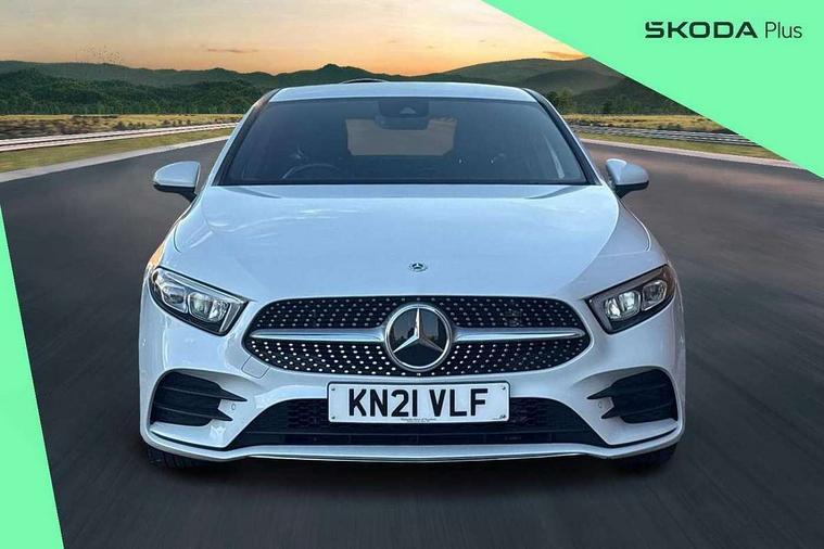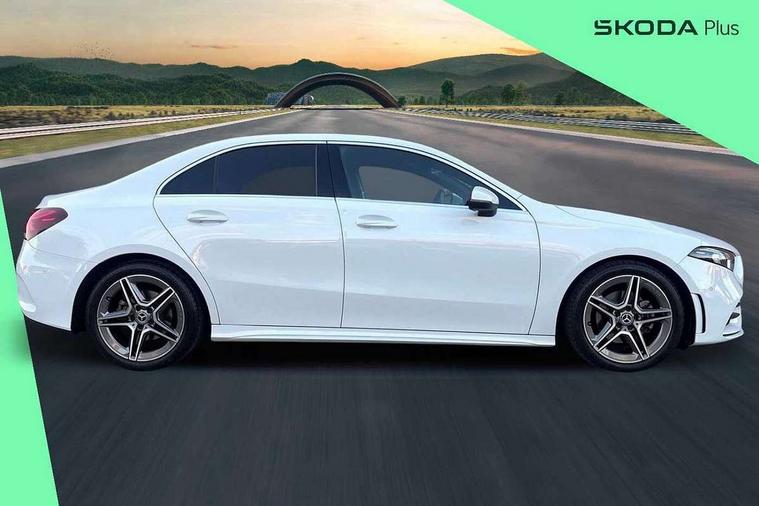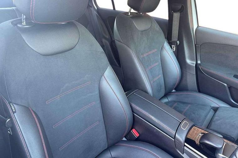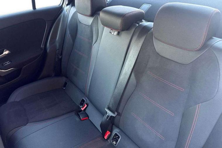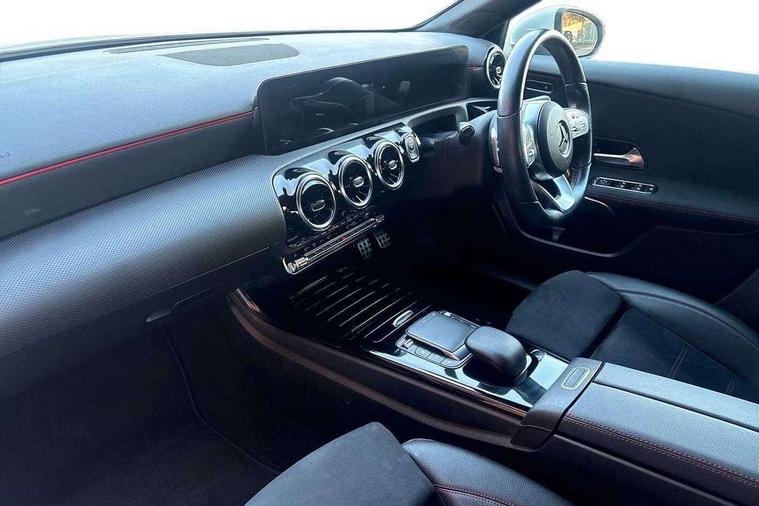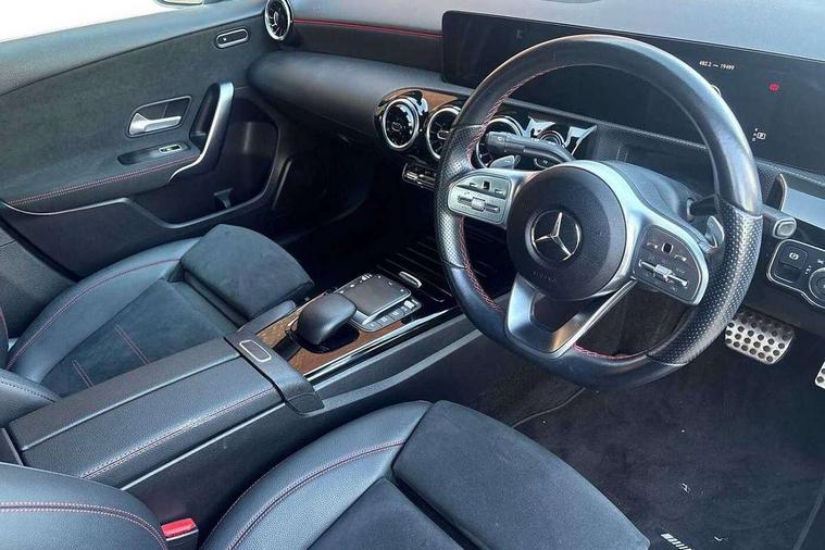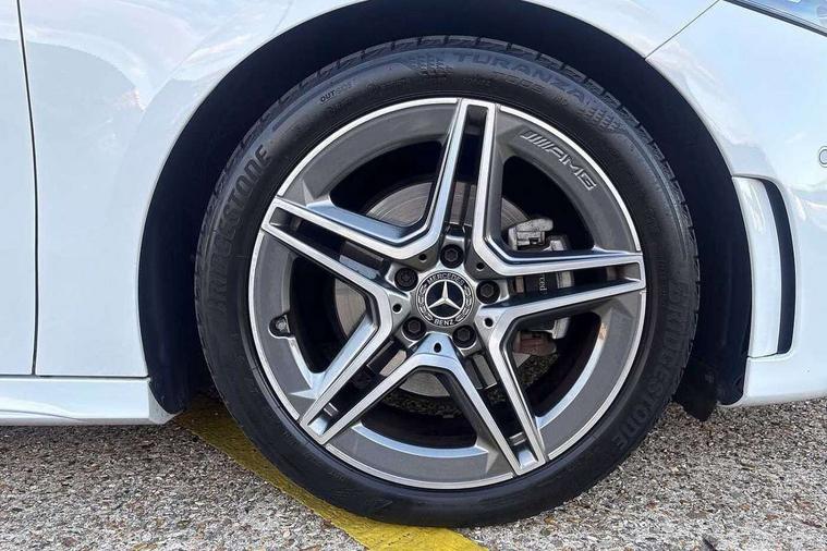 Ultrasonic sensors positioned in the front and rear bumpers, 10.25" media display, 180 degree rear view camera with parking guidelines, 7" colour screen in instrument panel, Active parking assist with visual and audible warning of detected obstacles, Attention assist, Brake pad wear indicator warning light, Car wash mode, Cruise control + speed limiter, Direct steering, Dual bluetooth interfaces, DYNAMIC SELECT with a choice of driving modes (ECO, Comfort, Sport and Individual), ECO start/stop function, Fluid level warning indicator for fuel, oil, coolant and washer fluid, Hard-disk navigation, Hey Mercedes Voice activation, Lamp failure indicator, Mercedes me connect including emergency call system, accident recovery, breakdown management and maintenance, Mercedes me remote services, Outside temperature gauge, Owners manual in English, Pre-installation for car sharing, Preinstallation for Mercedes Benz link, Service indicator (ASSYST), Smartphone integration with Apple CarPlay and Android auto, Speed sensitive power steering, Trip computer, Wireless charging, Lowered comfort suspension, Rear axle torsion beam, 2 USB ports (type C) in rear stowage compartment and one in front of center console, 6 speakers, DAB Digital radio, MBUX multimedia system with DAB digital radio and touchpad including satellite navigation, Mercedes-Benz sound system - 100W, 4 Electric Front and Rear windows, Adaptive brake lights, AMG bodystyling - Front apron with splitter in chrome, rear apron with chrome trim and chrome visible trim elements in tailpipe, Black weather strip, Body colour bumpers, Body colour door handles, Body colour side skirt, Body coloured door mirrors, Chrome beltline trim, Diamond radiator grille with chrome pins and silver louvre + chrome insert, Electric adjustable and heated door mirrors with integrated LED side indicators, Exhaust system - Twin visible tailpipes in polished stainless steel, Headlamp assist automatic headlamp activation, Heated glass rear windscreen + timer control, LED high performance headlamps with integrated LED daytime running lights, LED tail lamp, LED third brake light, Privacy glass, Radio aerial, Rain sensing windscreen wipers with two sensitivity settings, Rear fog lights, Window line trim strip in chrome, 3 Spoke flat bottom leather multi function steering wheel with perforated leather in grip area, 40:20:40 split folding rear seats, Artico man-made leather/Microfibre Dinamica upholstery with red contrast stitching, Auto Mercedes-Benz child seat recognition sensor, Black air vents with surround in silver chrome, Black roof lining, Brushed stainless steel sports pedals with rubber studs, Controller on centre console with chrome surround, Floor mats with stitched edging and AMG lettering, Front centre armrest with storage compartment, Front door sills with Mercedes Benz lettering, Front seat backs luggage nets, Front seat cushion length adjustment, Galvanished gear shift paddles on steering wheel, Heated front seats, Height/reach adjustable steering column, Interior mirror with reading lamps in black and frameless, ISOFIX and top tether child seat fixing points in two outer rear seats, Manual height adjustable front seats, Rear head restraints, Seat occupancy sensor for front passenger seat, Sports seats with adjustable head restraints, Stowage compartment in centre console with retractable cover, Sunvisors with illuminated vanity mirrors, Touchpad on center console, Twin front cupholders, Two zone thermotronic luxury automatic climate control, Light and sight pack - A Class, Mirror package - A Class, Seat comfort pack - A Class, 3 rear 3 point seatbelts, ABS with Brake Assist, Active bonnet, Active brake assist includes forward collision warning system with autonomous braking, Adaptive brake assist with hold function and hill start assist, Black seatbelts, Childproof locks manually operated for rear doors and electrically operated for rear power windows, Crash responsive emergency lighting, Driver and passenger head and side airbags, Drivers knee airbag, Dual stage driver/passenger airbags, Electronic parking brake, ESP curve dynamic assist, ESP with ASR, Front and rear seatbelt reminder, Front brake callipers with Mercedes Benz lettering, Tyre pressure monitoring system, Warning triangle and first aid kit, Window airbags, Alarm system/interior protection/immobiliser, Keyless Go, Remote central locking and crash sensor with emergency opening function, Urban guard vehicle protection system with immobiliser and interior protection, Dinamica microfibre trim in black, 18" AMG 5 twin spoke light alloy wheels in titanium grey with highsheen finish, Summer tyres, Tirefit sealant kit,