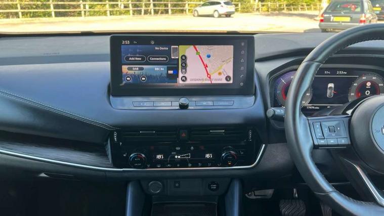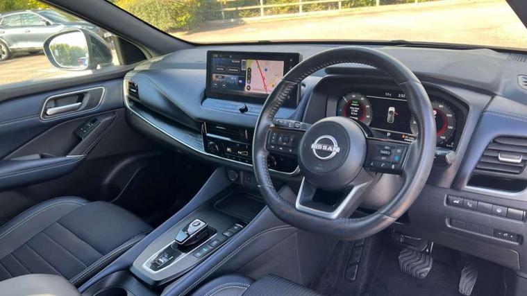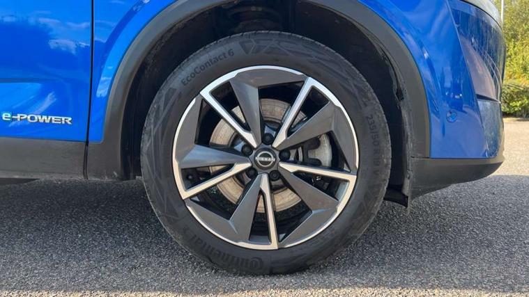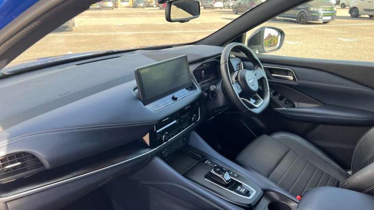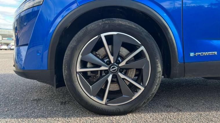 Advanced windscreen head up display, Blind spot warning, Drive modes (sport, normal, eco), e-Pedal step, Electric speed sensitive power steering, Emergency and breakdown call, Front and rear parking sensors, Full Digital 12.3" TFT Digital Combimeter, Google maps services - search, weather, 3D maps and Google street view, Hands free power tailgate, Idle stop/start system, Intelligent around view monitor, Intelligent Cruise control (ICC), Intelligent driver alert system, Intelligent forward collision warning, Intelligent lane intervention, Lane departure prevention, Lane departure warning system, Lane keep assist, Moving object detection, Nissan connect 12.3 inch touchscreen infotainment system, Nissan connect navigation, ProPILOT with Navi-Link, Push button starter, Rear cross traffic alert, Rear view camera, Remote control services - door locks, lights, horn and car locator, Telematics - notifications and connectivity services, TomTom live traffic services, Traffic sign recognition with legal speed adjustment, Trip computer, Virtual personal assistant and firmware over the air capability, Wireless Apple CarPlay and wired Android Auto, Wireless charging pad, 6 speakers, AM/FM audio system with DAB, Bluetooth audio streaming, Front USB connections (Type-A and Type-C), Rear USB charging only ports (Type-A and Type-C), Auto dimming rear view mirror, Auto rear wiper when reversing, Automatic hazard signal with emergency stop signal, Body colour mirror caps, Body coloured door handles, Bodyside mouldings, Chrome side window finisher, Door handle with button, e-POWER badging, Electric auto folding door mirrors, Electrically adjustable and heated door mirrors with LED turn indicator, Follow me home headlights, Front and rear LED turning signals, Headlights auto levelling system, Intelligent auto headlights, LED 3rd brake light, LED daytime running lights, LED headlights with adaptive driving beam, LED rear lights, One touch front and rear electric windows with remote opening and closing, Partially body coloured bumpers, Privacy glass, Rear bumper with graphite insert, Rear reversing light (bulb lighting), Rear roof spoiler, Rear side wing doors, Rear styling plate, Shark fin antenna, Splash free rain sensing wipers, Super UV and infrared cut glass, Thermaclear heated windscreen, Three blink turn signal, 12v power socket in dashboard and luggage, 2x Rear coat hooks, 3 bench rear seats in 2nd row, 3 rear headrests, 4 folding assist grip, 6 Luggage hooks - 4 on floor, 2 on side, 60/40 split folding rear seat bench, Ambient lighting around centre console, Ambient lighting in front doors, Centre console storage tray, Chrome interior door handles, Cloth/syntech leather monoform upholstery, Dark black/blueish PVC wrapping, Dark headlining, Driver and front passenger sunvisors with illuminated vanity mirrors, Driver seat back pocket, Dual zone automatic climate control with pollen filter, e-POWER shifter, Electrically adjustable driver seat, Electrically adjustable lumbar support for driver, Front and rear door storage, Front centre console and armrest, Front cupholders x 2, Front door with bottle holders, Glovebox with light, Hard trunk cover, Heated front seats, Heated steering wheel, Height adjustable driver's seat, Height adjustable front headrests, Height adjustable passenger seat, Leather steering wheel, Luggage board system, Luggage space lighting, Manual lumbar support on passenger seat, Manually adjustable passenger (slide recline + lifter), Multifunction steering wheel, Passenger seat back pocket, Rear armrest with 2 cupholders, Rear door bottle holders, Single front passenger seat, Soft PVC kneepad, Steering wheel switches, Tilt/telescopic adjustable steering wheel, Two rear isofix child seat anchorage points with top tether, Welcome light and doors with console tray ambient lighting, Glass roof pack with roof rails - Qashqai, 3x3 point rear seatbelt pretensioners + load limiters, ABS with EBD and brake assist, Active brake limited slip, Auto hold function, Child locks on rear doors, Curtain and front side, far side airbags, Driver and passenger airbags, Driver, passenger and 2nd row rear seat belt reminder, Electronic parking brake, Front seatbelt pretensioners + load limiters, Height adjustable front seatbelts, Hill start assist, Intelligent blind spot intervention, Intelligent front emergency braking with pedestrian, cyclist recognition and junction assist, Intelligent rear automatic braking, Tyre pressure monitoring system, Vehicle dynamic control, Capless fuel filler, Engine immobiliser, Intelligent Key, Remote central door locking with deadlocking, Thatcham Cat.1 alarm, Interior instrumental panel C finisher, 19" Diamond cut alloy wheels, Tyre puncture repair kit,