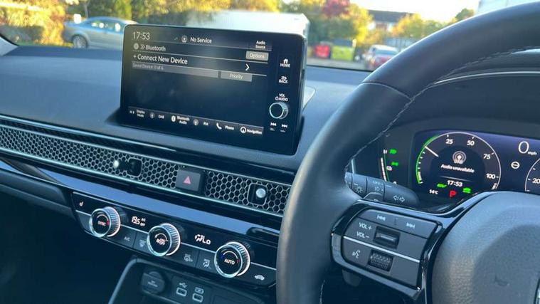 10.2" Multi information display, Adaptive cruise control, Adaptive motion for electric power steering, Adjustable speed limiter, Agile handling assist, BLIS (Blind Spot Information System) with Cross Traffic Monitor, Bluetooth hands free telephone connection, Driving modes, Economy mode, Electric power steering wheel with variable gear ratio steering, Emergency call service, Emergency stop signalling system, Forward collision warning, Front and rear parking sensors, Honda CONNECT with Navigation 9" touchscreen, AM/FM/DAB, Apple Carplay and Android Auto, live traffic info, Honda sensing, Idle stop, Intelligent speed limiter, Lane departure warning system, Lane keep assist, Low speed following, Power meter, Rear parking camera, Road departure mitigation, Smartphone wireless charging plate, Tailgate, Traffic jam assist, Traffic sign recognition, Wireless apple carplay, Vehicle stability assist, 'Shark fin' mobile antenna, 2x USB Front socket (1 data & 1 charge), Centre speaker, Digital Audio Broadcast (DAB) Tuner, Front tweeters, Premium BOSE audio system with 12 speakers, Steering wheel mounted audio controls, Subwoofer, Adaptive driving beam, Aspherical driver door mirrors, Auto dimming rear view mirror, Auto headlight adjuster, Auto headlights, Automatic coming/leaving home lighting function, Automatic rain sensing wipers, Body colour door handles, Chrome window garnish, Electric adjustable heated door mirrors, Electric front and rear windows, Electrically folding door mirrors, Headlight extension aluminium, High beam assist, High level LED brake light, LED daytime running lights, LED front fog lights, LED front turn type, LED Headlights, LED rear lights, Material finish grille, Panorama glass roof, Pop up hood, Privacy glass, Rear side wing doors, Rear wiper, Single hidden exhaust pipe, Variable front intermittent wipers, 3 seat bench in 2nd row, 4 way electric adjustable passenger seat, 60/40 split folding rear seat, 8 way electric adjustable drivers seat, Cargo accessory power socket, Cargo net hooks, Driver and front passenger seat armrests, Driver and front passenger seat electric lumbar adjustment, Driver's seat electric height adjustment, Driver/passenger front seatback pockets, Dual climate control air conditioning system, Front accessory power socket, Front map lights, Front/rear courtesy lights, Glovebox light, Heated front seats, Heated steering wheel, Hybrid emblem, Isofix points/i size, Leather steering wheel, Leather/synthetic leather upholstery, Meter Illumination white, Platinum chrome interior door handles, Rear air vents, Rear head restraints, Rear reading lights, Rear seat centre armrest, Single front passenger seat, Stainless steel sports pedals, Sunglasses holder, Sunvisors with illuminated vanity mirrors, Tilt/telescopic adjustable steering wheel, Tonneau cover, Trunk light, USB Rear number 2 x charge, White ambient roof light, 3x3 point rear seatbelts, ABS+EBD+Brake assist, Airbags - driver and front passenger, Airbags - Knee (AS), Airbags - Knee (DR), Anti-whiplash front headrests, Brake hold function, Collision mitigation braking system, Collision mitigation throttle control, Deflation detection system, Driver SRS airbag (single stage inflation), Electronic parking brake with auto hold, Front and rear curtain airbags, Front and rear seat belts with emergency locking retractor (ELR), Front centre airbag, Front side airbags, Hill start assist, Low speed brake system, Manual child lock in rear doors, Passenger airbag deactivate switch, Rear airbags, Regenerative braking/deceleration paddle control, Immobiliser, Mirrors and windows key fob, Remote central locking with 2 jack knife keys, Security alarm, Selectable door unlock, Smart entry + Smart start, Superlocking, Tilt sensors, Ultrasonic security sensor, Tyre repair kit,
