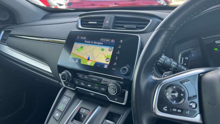 Adaptive cruise control, Agile handling assist, BLIS (Blind Spot Information System) with dual power heated blind spot mirrors, Bluetooth hands free telephone connection, E-call, Economy mode, Electric power steering, Emergency stop signalling system, Forward collision warning, Front parking sensors, Hands free tailgate, Head up Display, Honda CONNECT with GARMIN Navigation + 7" touchscreen, DAB radio, Apple CarPlay, Android Auto, Aha app integration and internet browsing, Intelligent multi info display, Lane departure warning system, Lane keep assist system, Low speed following, Rear parking sensors, Rear view camera, Road departure mitigation, Speed limiter, Traffic sign recognition, Wireless charging, Drive mode (Econ, Sport, EV), Vehicle stability assist, 2 USB sockets in rear, 2x USB sockets in front, 9 speakers, DAB Digital radio, Dashboard centre speaker, Front tweeters, Steering wheel mounted controls, Subwoofer, Aspheric door mirrors, Auto dimming rear view mirror, Auto wipers, Automatic headlights with dusk sensor, Body colour bumpers, Body colour door handles, Body colour door mirrors, Chrome grille, Cornering light, Door mirrors tilt when reversing, Electric front windows/one touch facility, Electric rear windows + one touch facility, Electrically adjustable and heated door mirrors, Electrically retractable door mirrors, Front LED Indicator lights, Front windscreen de-icer, High beam assist, LED daytime running lights, LED front fog lights, LED Headlights, LED rear lights, Panoramic opening glass sunroof, Rain sensor, Rear privacy glass, Rear side wing doors, Rear wiper, Roof rails, Shark fin roof aerial, Third brake light, Welcome home function, 3 seat bench in 2nd row, 60/40 split folding rear seat, 8 way electrically adjustable drivers seat + mirror memory, Accessory sockets, Ambient interior lighting, Ambient light in roof, AWD emblem rear, Cargo hooks, Courtesy lights, Driver's electric adjustable lumbar support, Driver/passenger front seatback pockets, Driver/passenger sunvisors with illuminated vanity mirrors, Dual zone automatic climate control, Electric lumbar adjustment on passenger's seat, Front centre armrest, Front map lights, Front passenger seat height adjust, Heated front seats, Heated rear seats, Heated steering wheel, Hybrid emblem, Illuminated glovebox, Instrument panel with garnish wood film, Isofix child seat preparation, Leather steering wheel, Leather upholstery, Paddle shift controls, Rear air vents, Rear centre armrest, Rear headrests, Rear reading lights, Silver interior door handles, Silver interior panels, Single front passenger seat, Sunglasses holder with mirror, Tilt/telescopic adjustable steering wheel, Tonneau cover, Trunk light, 5 x 3 point seatbelts, ABS/EBD, Anti-whiplash front headrests, Brake assist function, Collision mitigation braking system, Deflation detection system, Driver airbag, Electronic parking brake with auto hold, Front and rear curtain airbags, Front and rear seat belts with emergency locking retractor (ELR), Front passenger airbag, Front side airbags, Hill start assist, Manual child lock in rear doors, Passenger airbag deactivate switch, Honda super locks, Immobiliser, Security alarm, Selectable door unlock, Smart entry + Smart start, Ultrasonic security sensor, Tyre repair kit,