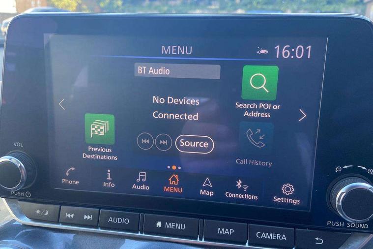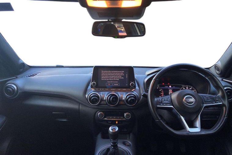 7" full colour TFT screen combimeter, 8" infotainment colour display with touch screen, Apple CarPlay and Google Android auto, Drive modes select (Eco, normal and sport), Emergency and breakdown call, Front parking sensor, Idle start/stop system, Intelligent lane intervention, Lane departure warning system, Nissan connect nav with TomTom traffic, Nissan connect services and Wifi connection, Outside temperature sensor, Power Steering, Rear parking sensor, Traffic sign recognition, Trip computer, Gasoline particulate filter, 6 speakers, Bluetooth system, USB, Aux-in and 12V socket, DAB Digital radio, Rear console USB port, Auto dimming interior rear view mirror, Automatic hazard signal with emergency stop signal, Body colour bumpers, Body colour door handles, Electrically adjustable door mirrors with integrated indicators, Follow me home headlights, Front and rear electric window with one touch driver window, Heated and auto folding door mirrors, High beam assist, LED daytime running lights, LED headlamps, LED rear fog lamp, LED rear lamps, Rain sensor windscreen wipers, Rear privacy glass, Rear wiper, Three blink turn signal, 3 height adjustable rear headrests, 60/40 split folding rear seat, Automatic climate control, Card holder on driver sunvisor, Cloth upholstery, Driver and passenger sliding and reclining seats, Driver side rear coat hanger, Driver/passenger sunvisors and vanity mirrors, Front and rear cabin lights, Front armrest, Front door pockets with bottle holders, Front head restraints, Front/rear passenger grab handles, Grey synthetic leather kneepad, Height adjustable driver's seat, Internal chrome door handles, Leather gearshift knob, Leather steering wheel, Luggage board, Luggage space lighting, Monoform sporty seats, Multifunction steering wheel, Rear door bottle holders, Telescopic steering wheel adjustment, Two cupholders in front centre console, Two rear isofix child seat anchorage points with top tether, Voice recognition switch on steering wheel, Welcome light and console tray ambient lighting, ABS with EBD and brake assist, Active ride control, Active Trace Control, Driver and passenger airbags, Driver and passenger side airbags, Electric handbrake with auto hold function, Electronic Stability Programme (ESP), Front and rear curtain airbags, Height adjustable seatbelts, Hill start assist, Intelligent emergency braking with pedestrian and cyclist recognition, Seatbelt reminder for driver/front passenger and rear seats, Single tone horn, Three 3 point rear seatbelts, Traction control, Tyre pressure monitoring system, VDC Dynamic Vehicle Control, Ventilated rear brake discs, Alarm, Immobiliser, Intelligent Key with push button starter, Remote central locking,