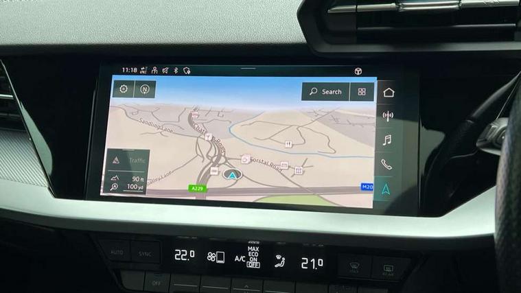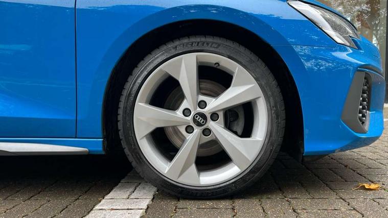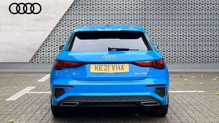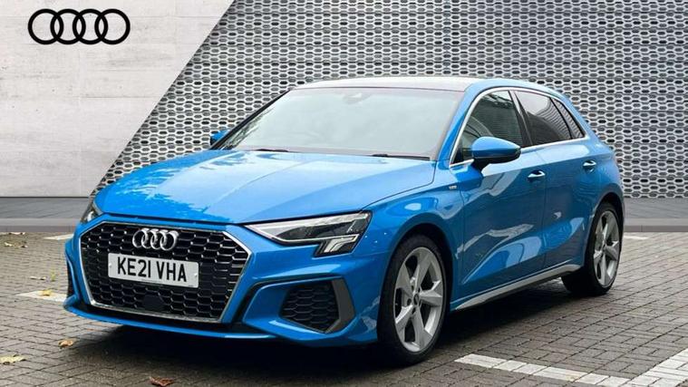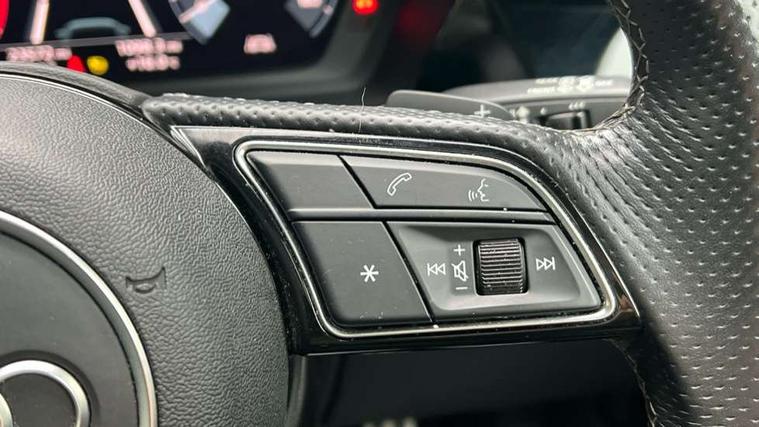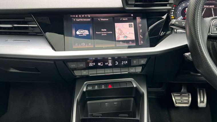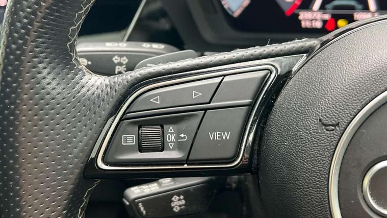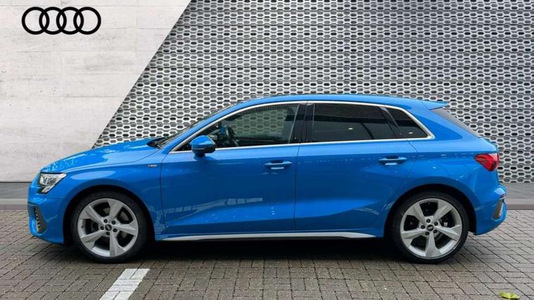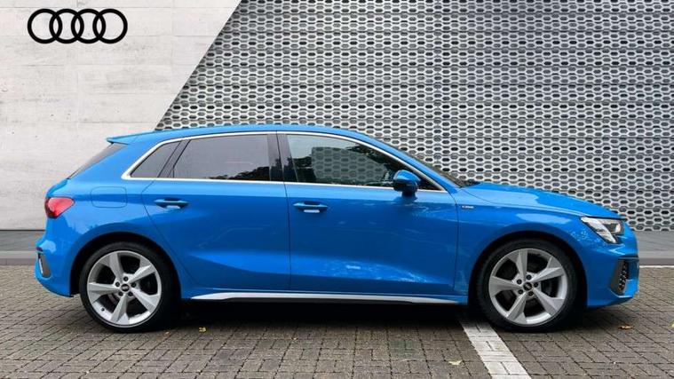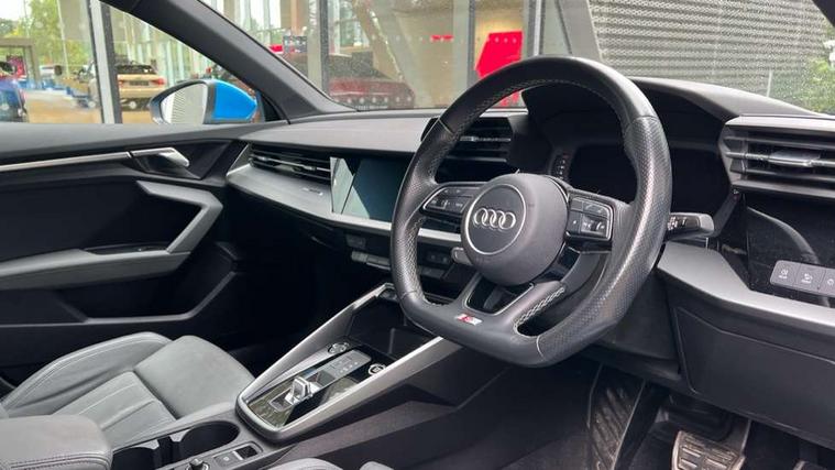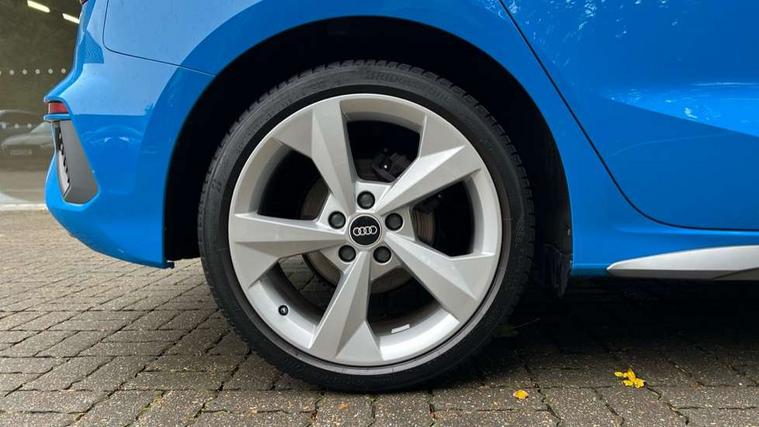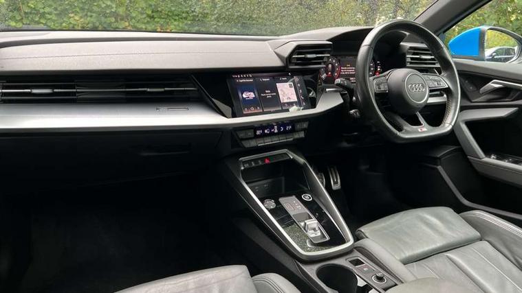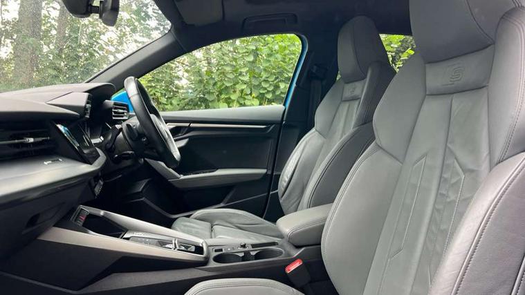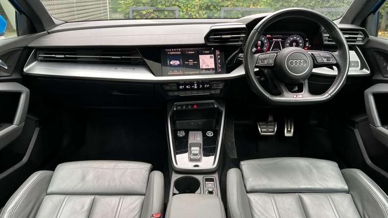 Audi connect emergency call and service, Audi drive select (Auto, Comfort, Dynamic and Individual), Audi smartphone interface, Audi Virtual Cockpit - 10.25" digital and colour instrument cluster, Automatic start/stop system with recuperation, Bluetooth interface, Collision avoidance assistant, Electromechanical power speed sensitive steering, Lane departure warning system, MMI Navigation Plus with high resolution 10.1" colour touch screen display, Service indicator, Trip computer, Voice control system with natural language interaction, 2xUSB-C connection with data and charging functions, 6 passive loudspeakers, DAB Digital radio, Acoustic glass windscreen, Aluminium window trim, Auto dimming frameless rear view mirror, Electrically adjustable/heated/folding/auto dimming door mirrors with integrated LED indications + kerb view function for passenger side, Front electric windows, Illuminated aluminium inserts front door sills with S logo, LED daytime running lights, LED headlights with LED rear lights and dynamic rear indicators, Light and rain sensors, Privacy glass - dark tinted rear window, rear door and side windows, Rear electric windows, Rear side air outlets in grained matt black, Rear wiper, S line bumpers, S roof spoiler, 12V socket and storage compartment in front centre console, 40/20/40 split folding rear seat bench with cupholder, Black cloth headlining, Dual zone electronic climate control, Front and rear centre armrest in leather, Front and rear headrests, Front/rear floor mats, Height and reach adjustable steering wheel, Interior lighting - glove compartment light and right hand side, Luggage compartment floor covering, Manual boot compartment lid, Manually adjustable front seats, Seat side bolsters, Stainless steel pedals and front footrest, Twin leather upholstery with front sports seats S embossed logo, Aluminium interior elements pack - A3 Sportback, S line styling pack - A3 Sportback, 3x3 point rear seat belts, Driver and front passenger airbag with passenger airbag deactivation, Electronic Stabilisation Control (ESC) including ABS, ASR and EDL, First aid kit with warning triangle and 2 safety vests, Front side airbags with head airbags and interaction airbag, Hill hold assist, Pre-sense front with pedestrian and cyclist detection, Seatbelt monitoring, Tyre pressure loss indicator, Anti theft alarm, Anti-theft wheel bolts, Electronically operated child lock, Immobiliser, Remote control central locking, Accent surfaces in the dashboard and centre console in platinum grey silk effect paint finish, Dark spectrum aluminium inlays,