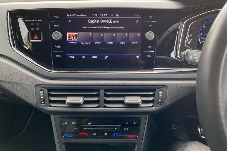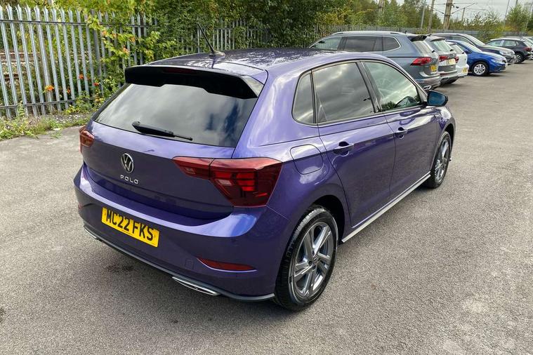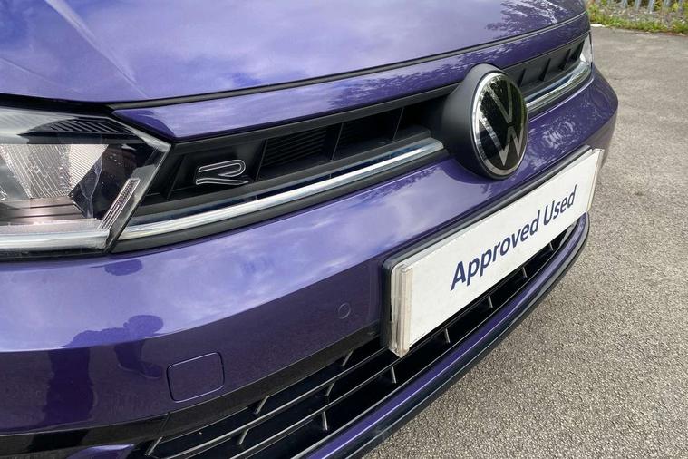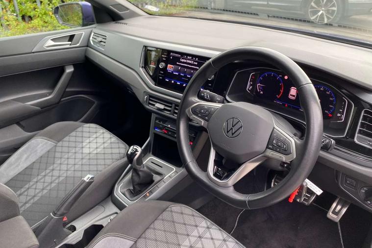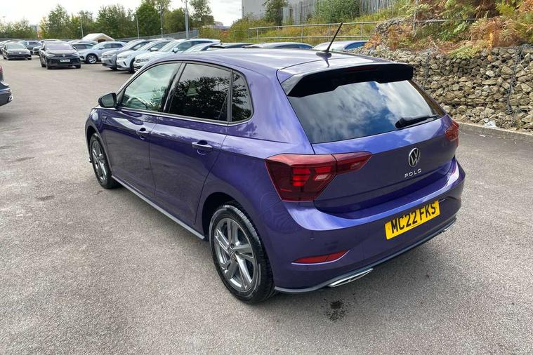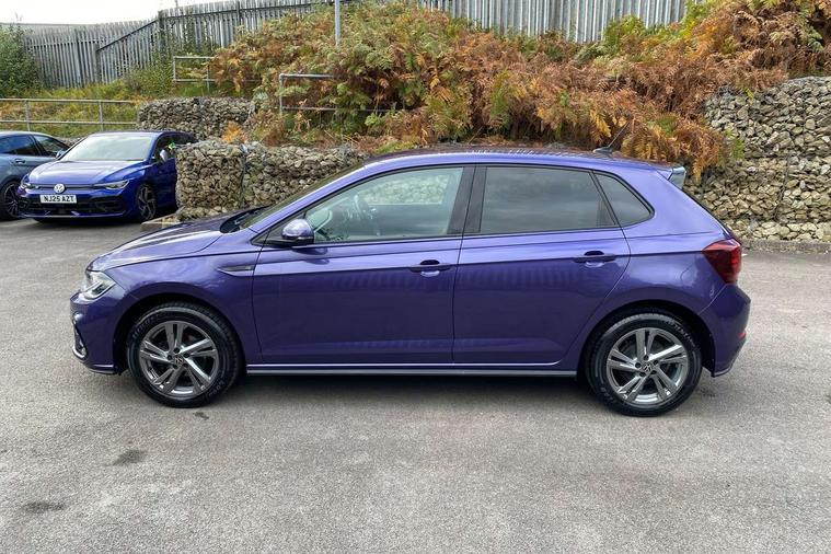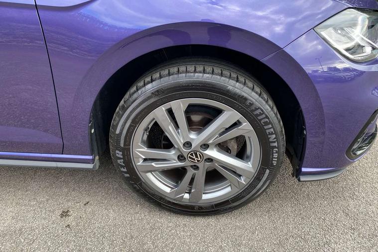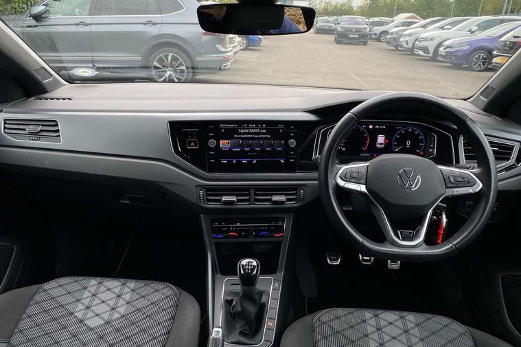 Adaptive cruise control without follow-to-stop and speed limiter, Bluetooth mobile phone interface, Digital Cockpit Pro with 10.25" Display, Driver alert system, Dynamic road sign display, Emergency call service, Power assisted speed sensitive steering, Preparation for We connect and We connect plus, Speedo and rev counter, electronic odometer, trip, service interval display and fuel gauge, Standard rear axle, Travel Assist - Lane keeping system and traffic jam assist, Travel assist including emergency assist, Trip computer, Warning signal and warning light for front and rear seatbelts not fastened, Washer fluid level indicator, Wireless app connect, Front wheel drive, Rear shock absorpion, Start-stop system with battery regeneration (recuperation - energy recovery during braking), DAB Digital radio, Diversity antenna for FM reception, Front and rear 6 speakers, Body colour bumpers, Body colour door handles, Body colour door mirrors, Electric front windows, Front scuff plates with R-Line logo, Heat insulating darkened glass in side and rear windows, Heat insulating glass windscreen, Power folding adjustable/heated exterior mirrors and front passenger exterior mirror lowering function, Rear electric windows, Rear fog light, Rear side wing doors, Rear tinted glass from B-pillar backwards approx 65% tinted, Rear windscreen washer and wiper with interval delay, Third brake light, 12V power socket in centre console, 2 USB-C ports in the front, 2 USB-C charging sockets on the center console in the rear, 3 rear head restraints, 60/40 split folding rear seat and rear seat bench not split, Air care climatronic air conditoning system with active combination filter and 2-zone temperature control, Black roof lining, Ceramique headliner, Chrome plated radiator grille inserts, air vent surrounds and light switch surrounds, Door and side trim panel, Driver and front passenger seat height adjustment, Driver/passenger sunvisors with illuminated vanity mirrors, Front + rear carpet mats, Front centre armrest, Front footwell illumination, Front seat backrest storage pockets, Front sports comfort seats, Handbrake lever handle in leather, Isofix child seat preparation easy-fit (for two outer rear seats, and front passenger seat) compatible with I-size, Karoso artvelours cloth upholstery, Leather trimmed gear knob, LED interior light with switch off delay and dimmer, 2 reading lights front and rear, Luggage compartment cover, Luggage compartment floor, Luggage compartment lighting, Lumbar adjustment for front seats, Multifunction steering wheel, Single front passenger seat, Stainless steel pedals, Standard pedal cluster, Light and sight pack - Polo R-Line/Black Edition, 3 point height adj front seatbelts + pretensioners, 3x3 point rear seatbelts, ABS, Driver and front passenger airbag with front passenger airbag deactivation, Drivers and front passengers safety optimised head restraints, ESC (Electronic stability control) + EDL (Electronic Differntial lock) and ASR (Traction control), Extended and predictive pedestrian/ cyclist protection, Front curtain and side airbags with center airbag, Hill hold control, Manual child lock in rear doors, Single tone horn, Tyre pressure loss indicator, Alarm with interior protection, Anti-theft alarm system with interior monitoring, backup horn, and towing protection, Anti-theft wheel bolts, Electronic engine immobiliser, Chrome applications on rotary light, mirror adjustment, window regulator switches, outlet with frame in black, Dark grey anodised matt decorative inserts in dash and front door panels, Low rolling resistance tyres,