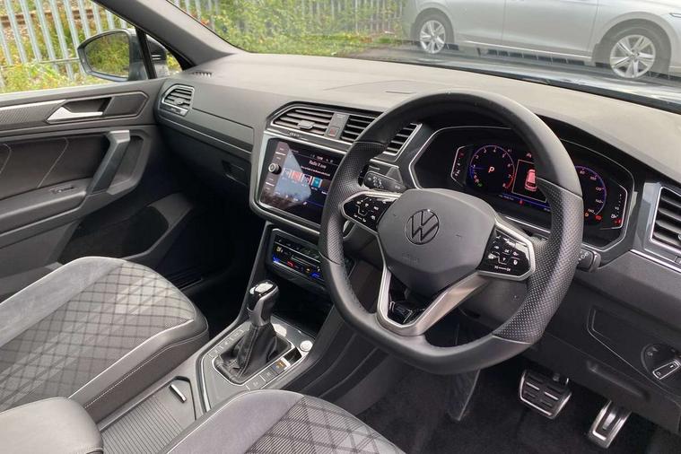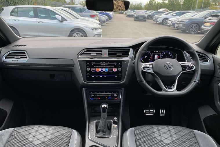 Adaptive cruise control ACC stop and go including speed limiter, App-Connect incl. App-Connect Wireless for Apple CarPlay and Android Auto, Bluetooth phone integration system, Distance control assist, Driver alert system, Driver profile selection, Dynamic road sign display, eCall emergency call system, Electromechanical speed sensitive power steering, Engine start/stop button, Lane keeping system Lane Assist, Lights on warning, Multifunction front facing camera, Outside temperature display, Premium multifunction display with multi colour display, Remote control boot opening, Rev counter, Revision / skills operating concept travel assistant, Service interval indicator, Speed limit display, Start/stop system with regenerative braking, Trip computer, Warning sound and light for doors and tailgate open, Battery regeneration during braking, XDS electronic differential lock for improved traction and handling, 4 X 20 watt output, 8 speakers, Diversity antenna for FM reception, SD card slot, Simultaneous pairing of 2 compatible mobile devices, SMS functionality - read, compose and send SMS messages using touch-screen display, Title and cover art display, USB C ports, Auto dimming interior rear view mirror, Automatic headlight control system, Body colour door handles, Chrome moldings on the side windows, Coming/leaving home lighting function, Dynamic headlight range control, Front and rear electric windows, Heated rear window, High level 3rd brake light, Laminated safety glass windshield, heat and sound insulating, LED headlamps with LED separate daytime running light and dynamic cornering light, LED rear combination lamps, LED rear number plate lights, License plate carrier in front and rear, Poor weather light and cornering light, R Line body kit, R Line side sills, Rain sensor windscreen wipers, Rear exhaust tailpipe, Rear fog lamp, Rear side wing doors, Rear spoiler in R style, Rear windscreen washer and wiper with interval delay, Side and rear windows in heat insulating glass, Trailer Stability Programme, Unique R Line badging, Windscreen wipers/ intermittent wipe + 4 position delay, 12V outlet in center console rear and in luggage compartment, 12V outlet in front and tray, 2 cup holders in front, 2 LED front reading lights, 2 LED rear reading lights, 3 bench rear seats in 2nd row, 3 rear headrests, 4 load lashing points, 40:20:40 split folding rear seats, Air Care Climatronic 3 zone automatic climate control with enhanced air filter and controls in the rear, Backrest release for left front seat, Black headlining, Brushed stainless steel pedals and footrest, Carpet mats in front and rear with decorative stitching in Gray, Climate control unit rear with touch function, Door and side trim panel in foam film, insert in leatherette, Front centre armrest, Front footwell illumination, Front seats head restraints (x-adjustment), Height adjustable front seats, Height/reach adjust steering wheel, Instrument lighting white adjustable panel illumination, Interior light with delay, Isofix Preparation 2 Rear child seats, Leather gear knob, Lockable cooled glovebox, Luggage compartment lighting, Luggage net, Rear bench seat asymetrically split folding, longitudinally movable and folding with load-through hatch and center armrest, Remote unlocking for rear seat backrest, Removable luggage cover, Removable rear headrests, Safety optimised front head restraints, Single front passenger seat, Sliding/reclining rear seats, Standard rear seat release, Storage compartment in driver's door, Storage compartment in passenger's door, Storage compartment in rear doors, Storage compartments in luggage area left and right, Storage tray on dashboard, Sun visors with illuminated vanity mirrors, Tool kit, Top front comfort seats, Variable boot floor, height adjustable and removable, Driver assistance pack plus - Tiguan DSG, 3 point seat belt for centre rear seats, 3 point seat belts with seat belt pretensioners for the outer rear seats, Active bonnet, Curtain airbags for front and rear passengers, Driver/Front Passenger airbags, Drivers knee airbag, Electronic parking brake with auto hold, Electronic Stability Control with driver steering recommendation, ABS, ASR, EDL, EDTC and trailer stabilization, Front assist with autonomous emergency braking (for Adaptive Cruise Control ACC up to 130 mph), Front disc brakes, Front passenger airbag deactivation, Front side airbags, Height adjustable front 3 point seatbelts + pretensioners, Hill hold control, Manual child proof rear door locks, Pedestrian monitoring system, Power assisted brakes, Proactive passenger protection system in combination with front assist, Rear disc brakes, Rigid safety cell with front and rear crumple zones, Two tone horn, Warning sound and light for front seat belts if unfastened, Anti theft alarm system with interior monitoring, backup horn and towing protection, Anti theft wheel bolts, Electronic engine immobiliser,