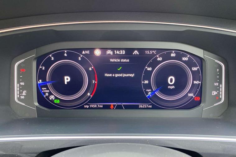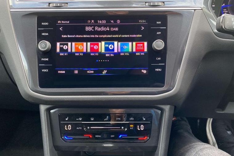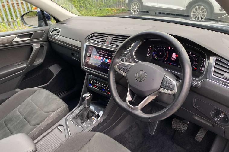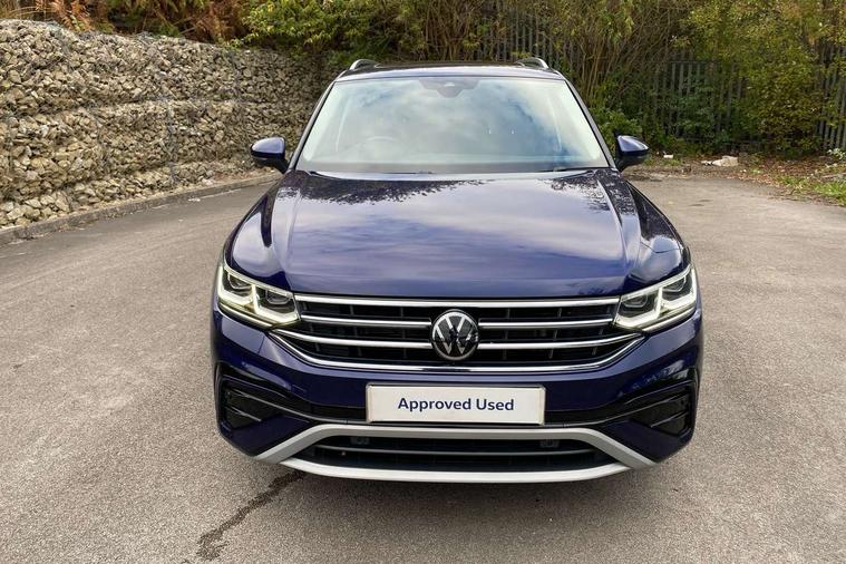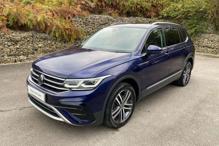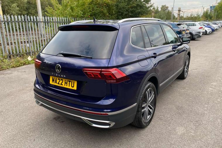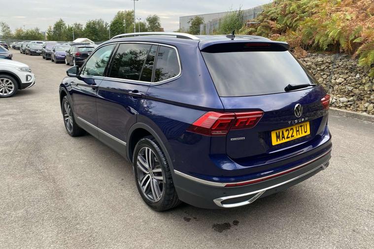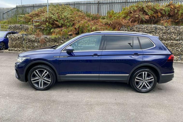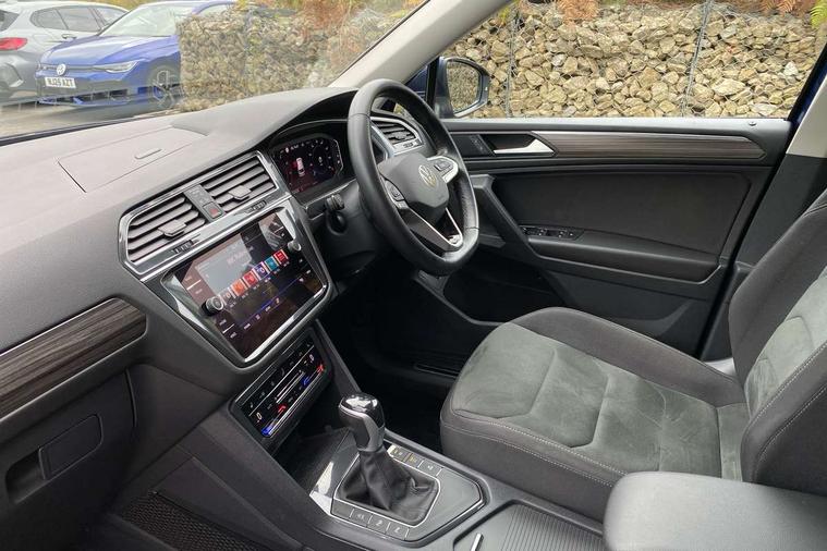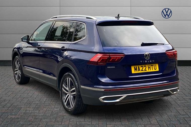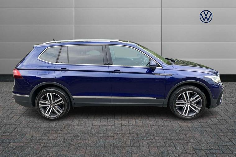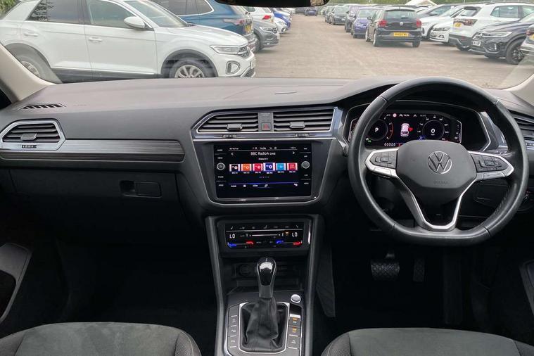 Adaptive cruise control, App-Connect, Digital cockpit pro, Driver alert system, Driver profile selection, Dynamic road sign display, eCall emergency call service, Electric boot lid, Lane change system side assist and rear traffic alert, Lane keeping system Lane Assist, Mobile phone interface comfort with inductive charging feature, Multifunction front facing camera, Power assisted speed sensitive steering, Speedo and rev counter, electronic odometer, trip, service interval display and exterior temperature gauge, Front wheel drive, Start-stop system with battery regeneration (recuperation - energy recovery during braking), 2 USB-C ports in the front, 1 USB-C charging socket on the center console in the rear, 8 Speakers, DAB Digital radio, Diversity antenna for FM reception, Radio, Auto dimming interior rear view mirror, Automatic headlight control system, Body coloured comfort bumpers, Chrome mouldings on side window, Coming/leaving home lighting function, Exterior badge deletion, Exterior mirror housings painted in silver, Heated windscreen washer jets, IQ light adv HBC, dyn light assist LED matrix headlamps, DH range, dark red LED rear combo light, poor weather, CL, LED headlamp with LED DRL and DCL - PXC, Privacy glass, Rain sensor, Rear fog light, Rear side wing doors, Rear wiper, Silver roof rails, Third brake light, Tilting and sliding panoramic sunroof, 12-volt outlet in centre console rear and luggage compartment, 12V socket in centre console, 3 head restraints in rear, 3 individual folding 2nd row seats, 3rd row 2 individual seats, Air Care Climatronic 3 zone automatic climate control with enhanced air filter and controls in the rear, Door and side trim panel, Drawers under front seats, Driver and front passenger seat height adjustment, Foldable front passenger seat backrest, Front + rear carpet mats, Front centre armrest, Front footwell illumination, Heated front seats, Illuminated scuff plates, ISOFIX anchorage points for mounting 2 child seats on rear seats and i-Size child seats, Leather gearshift handle, Leather-wrapped heated multi-function steering wheel with paddle shift, LED interior light with switch off delay/dimmer and 2 front/rear LED reading lights, Sun visors with illuminated vanity mirrors, Ambience pack - Tiguan Allspace, Driver assistance package - Tiguan Allspace, Easy open and close pack with safelock - Tiguan Allspace, Park assist pack - Tiguan Allspace, 3 point seat belt for centre rear seat, 3 rear three point seatbelts, ABS+EBD+Brake assist, Driver and front passenger safety-optimised head restraints, Driver's and front passenger's airbag with front passenger's airbag deactivation switch, Electronic parking brake, Electronic Stability Control (ESC) inc EDL (Electronic Differential Lock) and ASR (Traction Control), Height adjustable front 3 point seatbelts + pretensioners, Manual rear child locks, Pedestrian monitoring, PreCrash preventive occupant protection Front and rear, Rear disc brakes, Side airbag in front and rear with curtain airbag, Two tone horn, Warning buzzer for seatbelts if unfastened, Anti theft alarm system with interior monitoring, backup horn and towing protection, Anti-theft wheel bolts, Electronic steering lock, Remote central locking with 2 remote folding keys, Chequered flag tinanium decorative inserts,