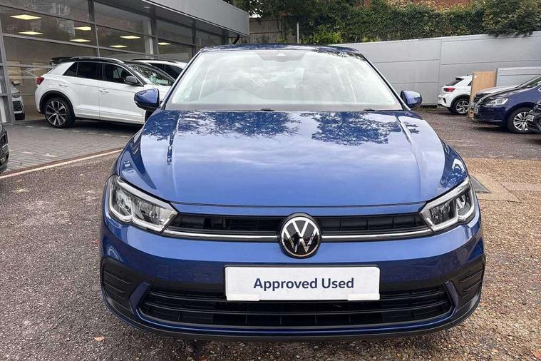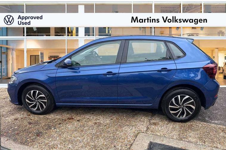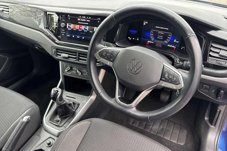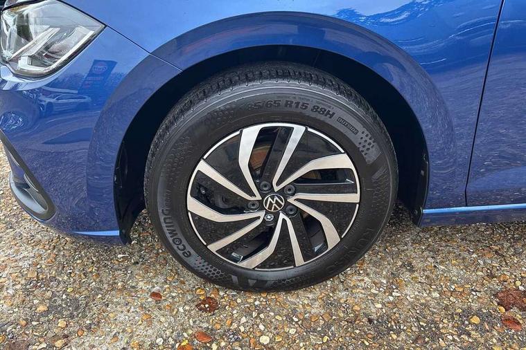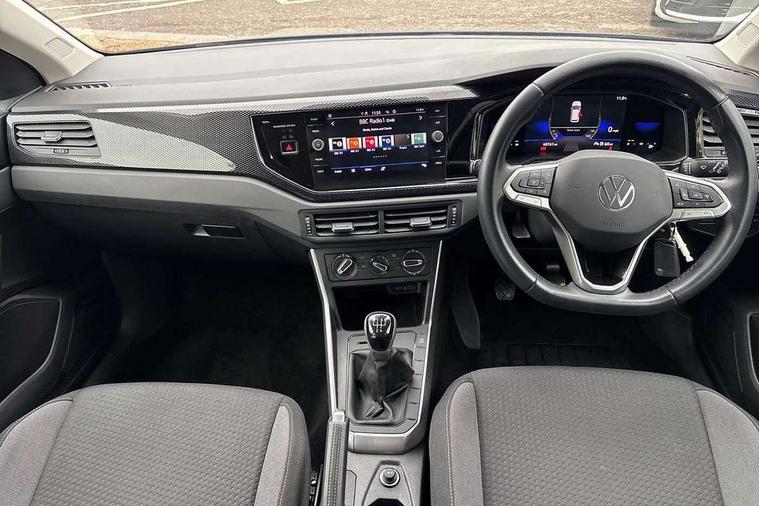 Adaptive cruise control without follow-to-stop and speed limiter, Bluetooth mobile phone interface, Driver alert system, Emergency call service, Front assist system, Power assisted speed sensitive steering, Preparation for We connect and We connect plus, Speedo and rev counter, electronic odometer, trip, service interval display and fuel gauge, Standard rear axle, Travel Assist - Lane keeping system and traffic jam assist, Travel assist including emergency assist, Trip computer, Warning signal and warning light for front and rear seatbelts not fastened, Washer fluid level indicator, Wireless app connect, Front wheel drive, Rear shock absorpion, Start-stop system with battery regeneration (recuperation - energy recovery during braking), DAB Digital radio, Diversity antenna for FM reception, Front and rear 6 speakers, Automatic dimming interior rear view mirror, Body colour bumpers, Body colour door handles, Body colour door mirrors, Electric front windows, Heat insulating darkened glass in side and rear windows, Heat insulating glass windscreen, Power folding adjustable/heated exterior mirrors and front passenger exterior mirror lowering function, Rain sensor, Rear electric windows, Rear fog light, Rear side wing doors, Rear windscreen washer and wiper with interval delay, Third brake light, 12V power socket in centre console, 2 front and 2 rear reading lights, 2 USB-C ports in the front, 2 USB-C charging sockets on the center console in the rear, 3 rear head restraints, 60/40 split folding rear seat and rear seat bench not split, Ceramique headliner, Chrome plated radiator grille inserts, air vent surrounds and light switch surrounds, Door and side trim panel, Driver and front passenger seat height adjustment, Driver/passenger sunvisors with illuminated vanity mirrors, Front centre armrest, Front seat backrest storage pockets, Front standard seats, Handbrake lever handle in leather, Hartley/Thomas cloth upholstery, Isofix child seat preparation easy-fit (for two outer rear seats, and front passenger seat) compatible with I-size, Leather trimmed gear knob, Luggage compartment cover, Luggage compartment floor, Luggage compartment lighting, Multifunction steering wheel, Single front passenger seat, Standard pedal cluster, Light and vision pack - Polo, 3 point height adj front seatbelts + pretensioners, 3x3 point rear seatbelts, ABS, Driver and front passenger airbag with front passenger airbag deactivation, Drivers and front passengers safety optimised head restraints, ESC (Electronic stability control) + EDL (Electronic Differntial lock) and ASR (Traction control), Extended and predictive pedestrian/ cyclist protection, Front curtain and side airbags with center airbag, Front disc brakes, Hill hold control, Manual child lock in rear doors, Rear drum brakes, Single tone horn, Tyre pressure loss indicator, Alarm with interior protection, Anti-theft alarm system with interior monitoring, backup horn, and towing protection, Anti-theft wheel bolts, Electronic engine immobiliser, Lava stone black gloss/matt decorative inserts in dash and front door panels, Low rolling resistance tyres,