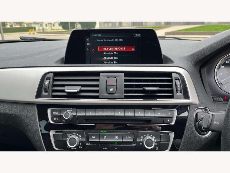 'Lights On' Reminder warning buzzer, BMW Online services, BMW remote services, BMW Teleservices, Brake force display, Engine start/stop button, Oil level indicator, On board computer, On board diagnostics, Outside temperature display, Service interval indicator, Servotronic PAS, Speed limiter, Diesel particulate filter, Drive Performance Control, BMW professional radio with CD player, DAB Digital radio, Body colour bumpers, Body colour door handles, Body coloured door mirrors, Chrome exhaust tailpipe, Chrome kidney grille with black vertical slats, Electric front windows + one touch + anti-pinch, Electric rear windows, Electrically adjustable door mirrors, Follow me home headlights, Green tinted heat insulating glass, Heated door mirrors, Heated windscreen washer jets, Rain sensor including auto headlights activation, Rear wash/wipe, Welcome lighting, 12V power socket in centre console, 12V power socket in passenger footwell, 4 grab handles, 60/40 split rear seats, Anthracite Velour floor mats, Black door sill finishers with BMW designation, Door armrests, Driver/passenger sunvisors with ticket holders, Folding rear seat head rests, Front folding/sliding centre armrest with storage, Front head restraints, Front/rear courtesy lights with soft on/off dimming, Glovebox, Isofix rear child seat preparation, Leather gear knob and handbrake grip, Load restraint lashing eyes, Multifunction steering wheel with audio controls, Reach + rake adjustable steering column, Storage compartments in doors, ABS/EBD, Automatic Stability Control (ASC), BMW emergency call, Child locks on rear doors, Cornering brake control (CBC), Crash sensor, Driver/Passenger airbags (Impact dependent), DSC+, Dynamic brake control, Dynamic Traction Control - DTC, Front passenger airbag deactivation, Front side airbags, Hill start assist, ITS head airbags for front/rear, Pyrotechnically pre-tensioned front seatbelts, Seat belt force limiter, Three 3 point rear seatbelts, Tyre pressure monitor, Warning triangle and first aid kit, Automatic drive away locking facility, Electronic immobiliser, Remote central locking, Thatcham Cat.1 alarm,