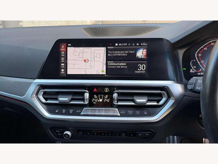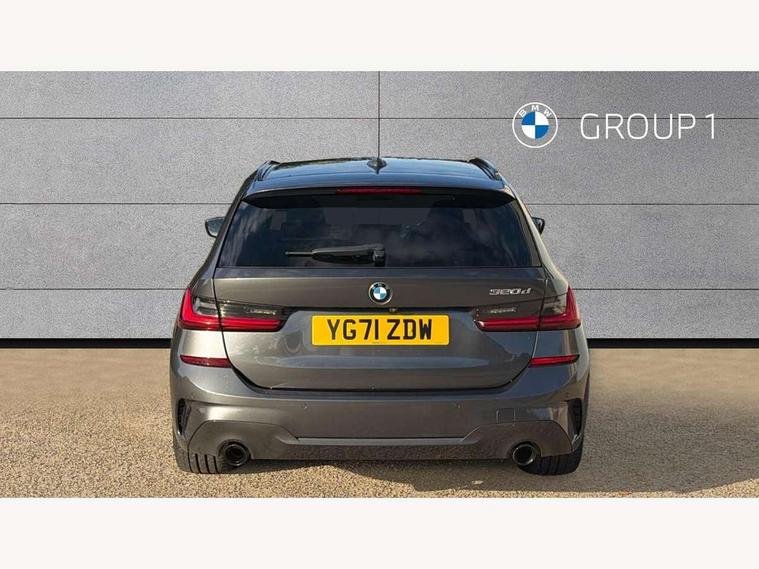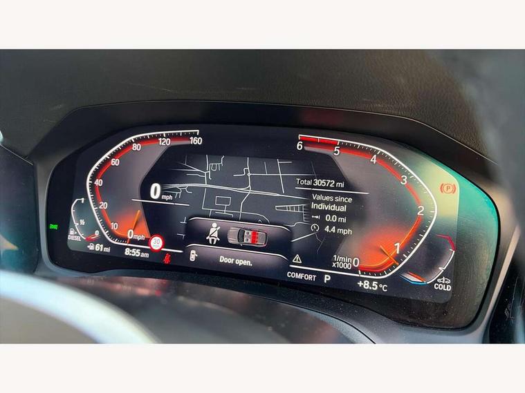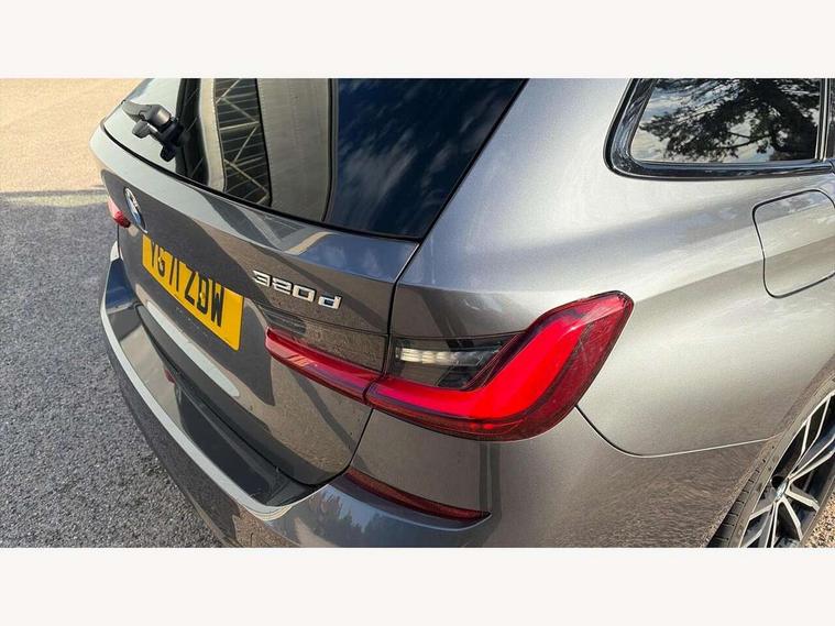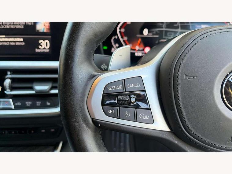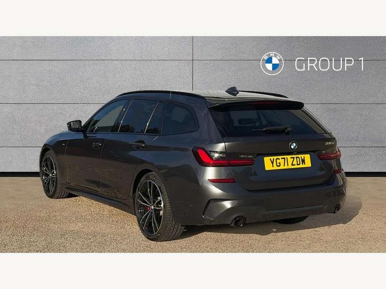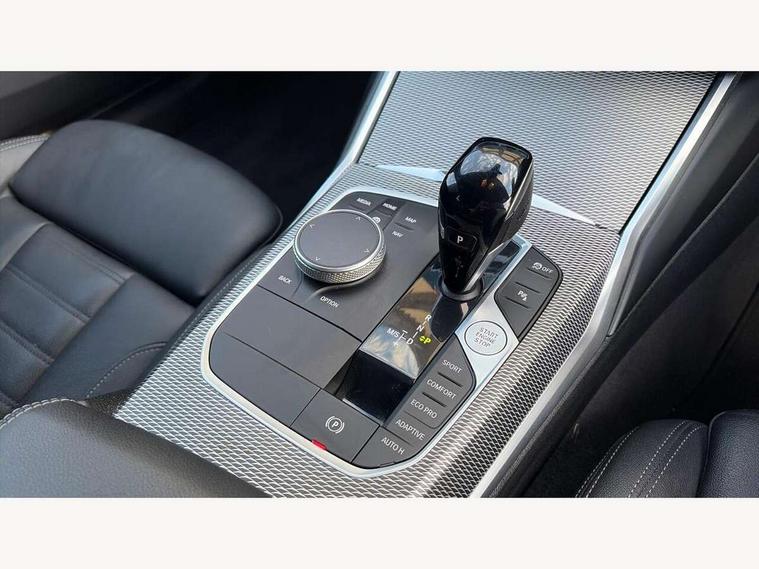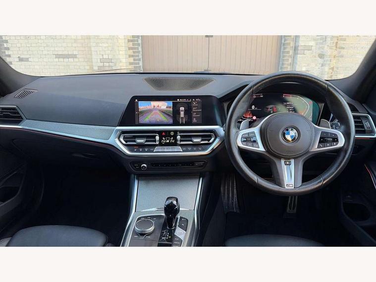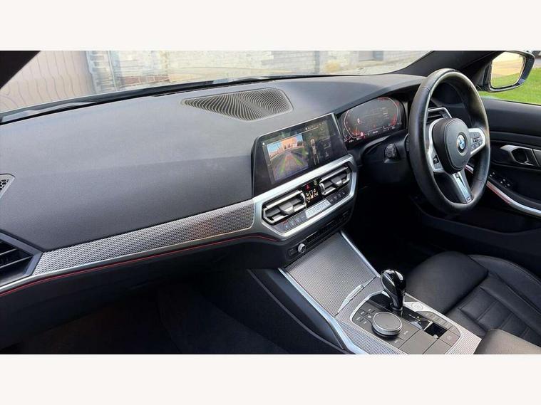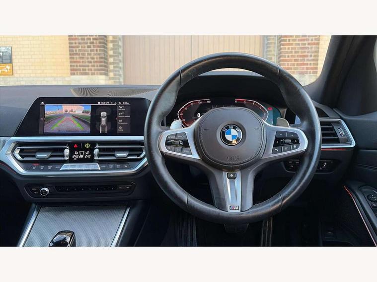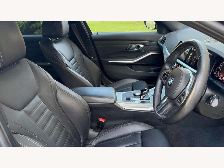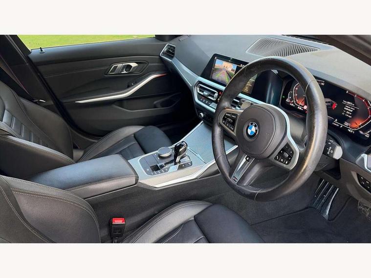 Active guard plus, Attentiveness assist, Bluetooth hands free facility with USB audio interface with audio streaming, BMW ConnectedDrive oline services with BMW apps, BMW iDrive controller on centre console, BMW service history, BMW Teleservices, Brake pad wear indicator in front and rear, Check Control warning system for monitoring of lights and door/luggage compartment open warning, Condition based service, Cruise control with brake function + speed limiter, Electric power steering with Servotronic steering optimised at all speed ranges, Gearshift time display in manual mode, Instrument cluster with speedometer with mph readout, tachometer, fuel gauge and oil temperature gauge, Integrated owners handbook, Oil sensor for level and grade, warning by check control system, On board computer - average speed+fuel consumption, service interval, clock/date, odometer/trip meter, outside temperature display and ice warning, Optimum shift indicator, Personal Profile - automatic lock when driving away selectable, Recovery braking system, Variable sport steering, 48V Mild hybrid technology, Balanced 50/50 weight distribution, Battery cut-out switch, Common rail technology, Diesel particulate filter, Drive performance control - ECO PRO, comfort and sport modes, EU6 emissions management, Incorrect fuelling protection, Larger capacity fuel tank, M sport suspension, Oxidation catalytic converter, Selective catalytic reduction (SCR) with AdBlue, Stroke dependent dampers, Twin scroll turbocharger, DAB tuner, Electronic service booklet, Stereo speaker system with 2 mid range speakers in the front door trims and rear parcel shelf + 2 central bass speakers underneath the front seats, Acoustic glazing, Active airstream chrome frame kidney grille with 8 high gloss black vertical slats, Automatic headlight activation/adjustment, Automatic headlight beam throw control with load dependent regulating reaction, dynamic compensation of braking dive and acceleration squat, Black roof mouldings, Body colour door handles, Body colour fuel filler flap, Body colour mirror caps with bottom segment in matt black, Dynamic brake lights, Electric windows - front and rear, with open/close fingertip control, anti-trap facility and comfort closing, Exhaust tailpipe - split left and right, Exterior mirrors - electrically folding with anti-dazzle, Fading support, Front and rear bumper system with replaceable deformation elements, Front black door sill finishers with BMW designation, Green tinted heat protection glazing, High gloss black exterior B pillar, Interior rear view electrochromatic mirror with automatic anti dazzle function, LED daytime running lights, LED front fog lights, Lightweight engineering, M designation on front side panels, left and right, Model designation on right side of tailgate, Rear wiper, Shark fin antenna, Two part LED tailights in L-shape with components in smoked glass, brake light, LED turn indicator and rear fog light, Visible VIN plate, Welcome lights in interior and door handle area, Windscreen wipers with integrated washing jets, 12V power socket in front storage compartment, 2 front cupholder in centre console with clamping elements and matt black inlay, 3 zone automatic air conditioning, 4 pieces lashing eyelets in luggage compartment, 40:20:40 split folding rear seat with loading system, Ambient lighting with welcome carpet light, Anthracite headlining, Armrest integrated in front and rear door trim + front centre console armrest, Backrest width adjustment, Centred top Luggage compartment lights, Four grab handles integrated in roof lining, Front and rear door exit lighting (left / right), Front and rear door pockets, Front and rear reading lights, Front and rear velour floor mats, Front head restraints, Front sport seats, Heated front seats, Height adjustable mechanically and infinitely variable steering column, Illuminated armrest storage compartment, Illuminated glove compartment with separate small compartment, Interior lighting - front centre over interior mirror with soft light, rear centre and front and rear footwell lighting, Make-up mirror lights, Rear centre armrest with 2 cupholders, Rear centre console with storage compartment and ventilation grille, Sunvisors with vanity mirrors and ticket pocket, Three spoke multifunction M sport leather steering wheel, Toolkit located in luggage compartment, Connected pack professional - 3 Series Saloon/Touring, Live cockpit professional pack - 3 series, M sport exterior styling pack - 3 Series Saloon/Touring, Parking assistant pack - 3 Series, 2 tone horn, 3 rear seats with non folding headrests, Airbags activation controlled with intensity and scope, BMW emergency call, Brake energy regeneration, Braking pre-tensioning, Child proof locking system in rear door, Child seat ISOFIX attachment rear outer seats, Coasting in idle in ECO PRO mode, Crash sensor activating of airbags, Unlocking doors, hazard warning lights, fuel cut off, interior lighting+activation of safety battery terminal clamp, Deactivation of fuel pump in the event of a crash, Driver and front passenger side airbags, integrated in the door side seat backrest bolsters for all seat variants, Driver/Front Passenger airbags, Dry braking, Dynamic brake control, Dynamic stability control + (DSC+) - Anti-lock Braking System (ABS) with brake assist and cornering brake control + Automatic Stability Control (ASC), Dynamic Traction Control - DTC, Electric parking brake including automatic hold function and automatic release of the parking brake when driving off, Electronic differential lock control (EDLC), Front passenger manual airbag deactivation, Head airbags for all 4 outer seats, Hill start assist, Seat belt security check for driver and front passenger, Side impact protection, Three 3 point seat belts on all seats including front belt stopper, pyrotechnic belt tensioners and belt force limiters, Tyre pressure monitoring with three level warning strategy, Ventilated front and rear disc 