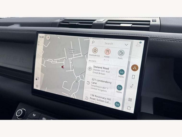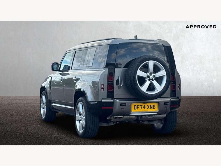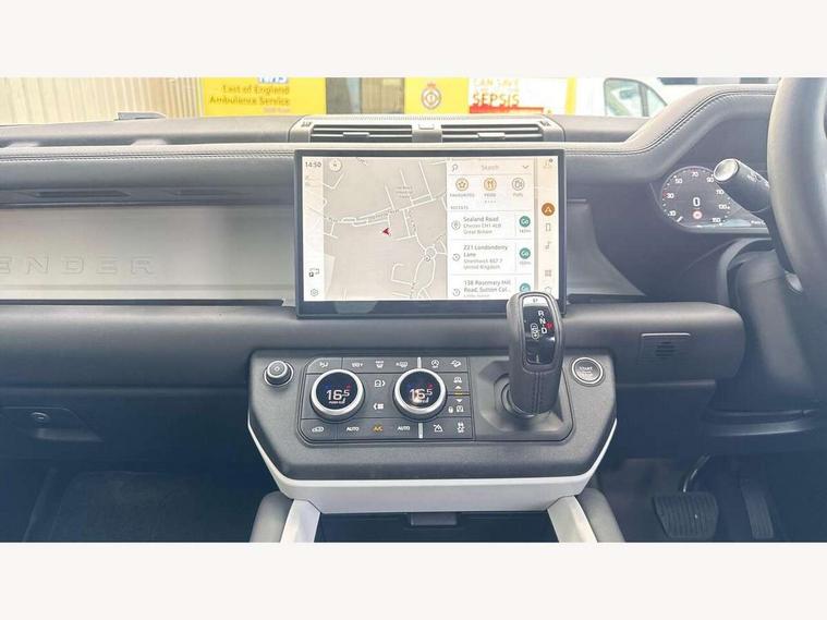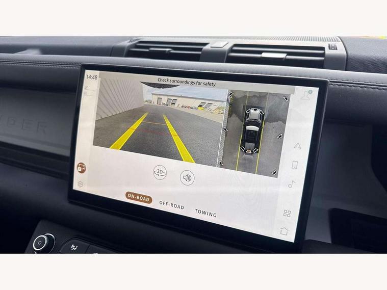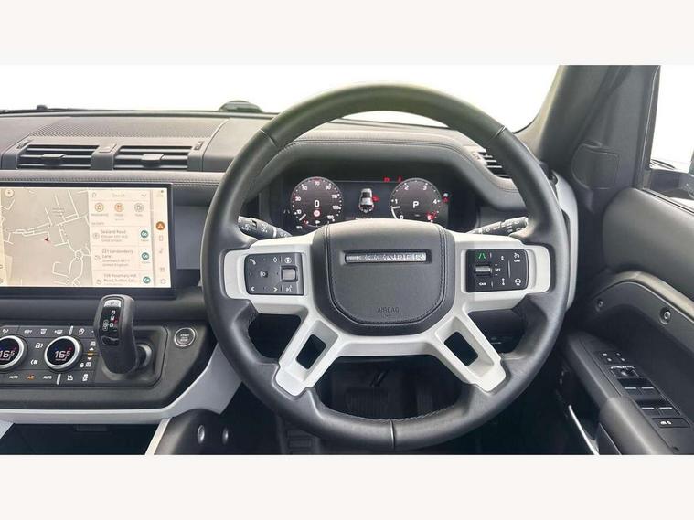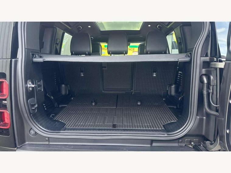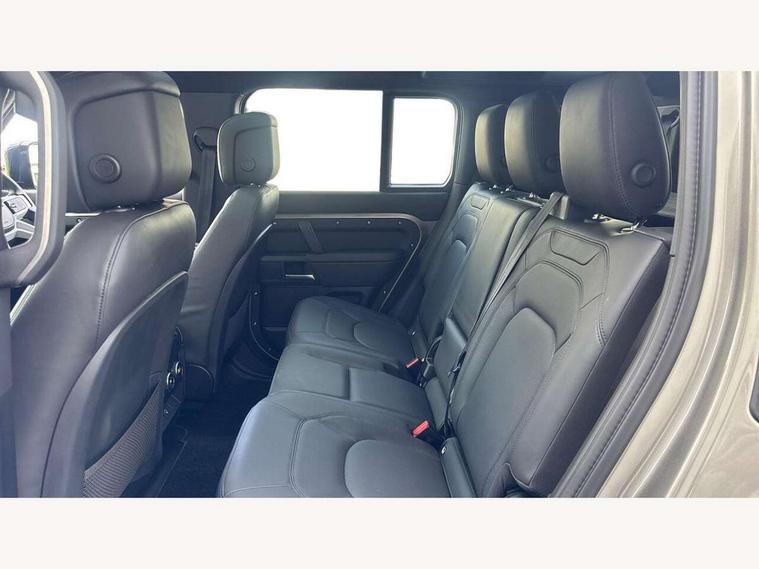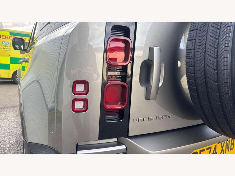 1 x USB-C (power only) & 1 x USB-C (power & data) in Row 1, 2 x USB-C in Row 2, 11.4" touchscreen, 2 x USB-C in Row 3, 360 degree parking aid, 3D Surround Camera with 360 View, 180 Rear View, Front Traffic Detection, Forward Vehicle Guidance, Tow Hitch Assist and clear sight Ground View, Adaptive cruise control, Android Auto, Apple CarPlay, Blind spot assist, Bluetooth system, Brake pad wear indicator, Clear exit monitor, Connected navigation pro, Driver condition monitor, Electric power assisted steering (EPAS), Interactive driver display, Lane keep assist, Push button start, Rear collision monitor, Rear traffic monitor, Traffic sign recognition with adaptive speed limiter, Trip computer, Wireless device charging, 8 speed automatic transmission, All wheel drive system, Twin speed transfer box, DAB Radio (Digital Audio Broadcasting), Meridian 700w surround sound audio system with 15 speakers, Pivi pro connected, Automatic headlight levelling, Automatic headlights, Black exposed rear recovery eyes, Body coloured bonnet, Centre high mounted stop light, Electric heated/power fold door mirrors with approach lights and auto dimming driver side, Electric windows with one touch open/close and anti-trap, Follow me home lighting, Front fog lights, Heated rear window with timer, Heated windscreen, Illuminated metal treadplates with brand name script, LED tail lights, Matrix LED headlights with signature DRL, Privacy glass, Puddle lights, Rain sensing windscreen wipers, Rear fog lights, Rear side wing doors, Rear wiper, Side hinged tailgate, Sliding panoramic roof, Standard tail door, Trailer stability assist, X-Dynamic badge, 12V power socket in loadspace, 2 seat bench in 3rd row, 3 seat bench in 2nd row, Alpine lights, Configurable cabin lighting, Durable rubber cabin flooring, Durable rubber loadspace flooring, Electric reach + rake adjustable steering column, Electrically adjustable steering column, Extended leather upgrade, Footwell lights, Front head restraints, Front passenger isofix child seat attachment, Heated steering wheel, Loadspace cover, Loadspace Hook, Multifunction steering wheel, No flat load floor storage, Overhead stowage for sunglasses, Rear headrests, Rear ISOFIX, Rear reading lights, Single front passenger seat, Soft close tail door, Storage glovebox, Sunvisors with illuminated vanity mirrors, Twin front cupholders, Air suspension pack - Defender SE/HSE/X-Dynamic SE/X-Dynamic HSE, Non-smoker package, Online pack with data plan - Defender, 7 three point seatbelts, ABS, Brake hold function, Cornering brake control (CBC), Customer configurable autolock, Driver and passenger airbags, DSC - Dynamic Stability Control, EBD - Electronic brakeforce distribution, Electric parking brake (EPB), Emergency brake assist, Emergency braking, ESP + traction control, Front airbags with passenger seat occupant detector, HDC - Hill descent control, Hill launch assist, Low traction launch, Power operated child locks, Remote for (e-Call, Optimised assistance call, InControl app, Climate, beep and flash and door), RSC - Roll stability control, Seat belt reminder, TPMS (Tyre pressure monitoring system), Alarm, Immobiliser, Intrusion sensor, Keyless entry, Locking wheel nuts, Secure tracker pro,