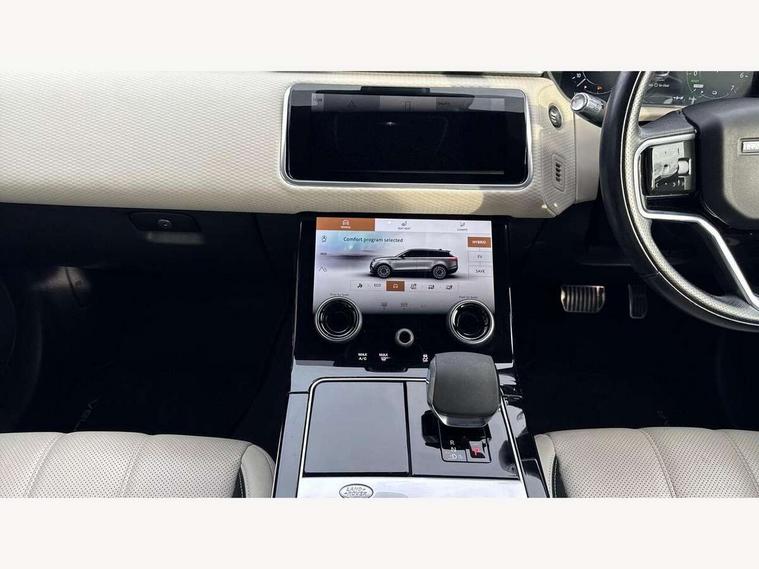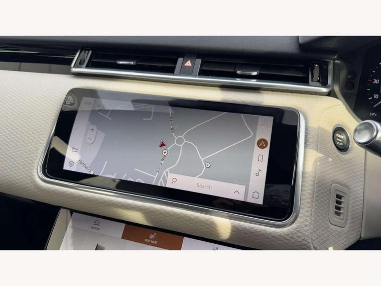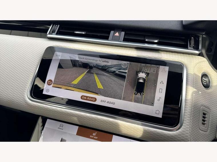 10" touch screen, 3D Surround camera includes, clear sight ground view, 360 parking aid and wade sensing, Android Auto, Apple car play, Bluetooth connectivity, Brake pad wear indicator warning light, Driver condition monitor, InControl remote, Land Rover InControl apps, Lane keep assist, Pivi pro connected includes upgraded infotainment, smart settings, connected navigation pro, Nuance speech licence, Push button start, Service indicator, Speed proportional electronic power assisted steering (EPAS), Traffic sign recognition with adaptive speed limiter, Trip computer, Voice control system, Wade Sensing, 8 speed automatic transmission, Adaptive dynamics, Coil suspension system, Open differential with torque vectoring by braking, Single speed transfer box, Digital Audio Broadcast radio-DAB, Steering wheel mounted controls, Acoustic laminated windscreen, Auto dimming interior rear view mirror, Automatic headlamp levelling, Automatic headlights, Body coloured bumpers, Boot protection plate, Electric heated/power fold door mirrors with approach lights and auto dimming driver side, Electric windows with one touch open/close and anti trap, Flush deployable exterior door handles, Follow me home headlights, Heated rear window with timer, Heated windscreen + heated windscreen washer jets, Metal load space scuff plates, Rain sensor windscreen wipers, Rear fog lights, Rear wash/wipe, S badge, Tailgate/boot lid spoiler, Trailer stability assist, Velar and R-dynamic badge, 40:20:40 split folding rear seats, Ambient lighting, Bright metal pedals, Driver/passenger sunvisors with illuminated vanity mirrors, Isofix system on outer rear seats, Loadspace cover, Overhead lighting console, Overhead stowage for sunglasses, Passive front headrests, Rear air vents, Rear centre headrest, Satin chrome gearshift paddles, Standard interior, Twin front cupholders, Twin sliding front centre armrest, Online pack with data plan - Velar, 380mm front brakes and 325mm rear brakes, 3x3 point rear seatbelts, Anti-lock braking system (ABS), Cornering brake control, Curtain airbags, Customer configurable autolock, Door side intrusion beams, Driver airbag, DSC - Dynamic Stability Control, Electronic brake force distribution, Electronic parking brake, Electronic traction control, Emergency brake assist, Emergency braking, Front and rear seatbelt reminder, Hill descent control, Hill launch assist, Low traction launch, Passenger airbag, Power operated child locks, Rear airbags, Roll stability control, Side airbags, Tyre pressure monitoring system, Unpainted brake calipers, Global lock and unlock switch on driver door, Immobiliser, Intrusion sensor, Keyless entry, Lock only switch on front passenger door, Locking wheel nuts, Perimetric alarm, Remote central locking, Tyre repair system,