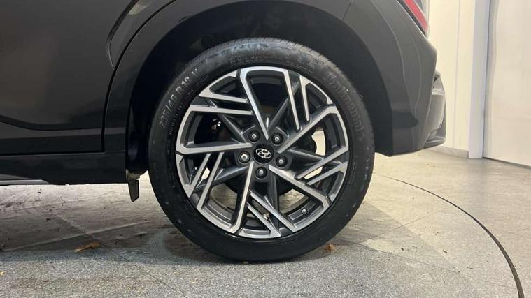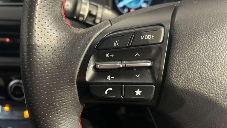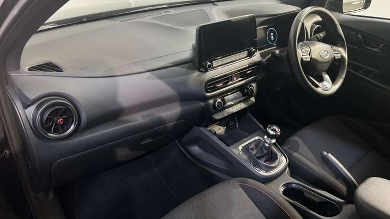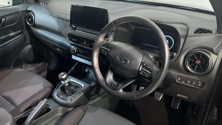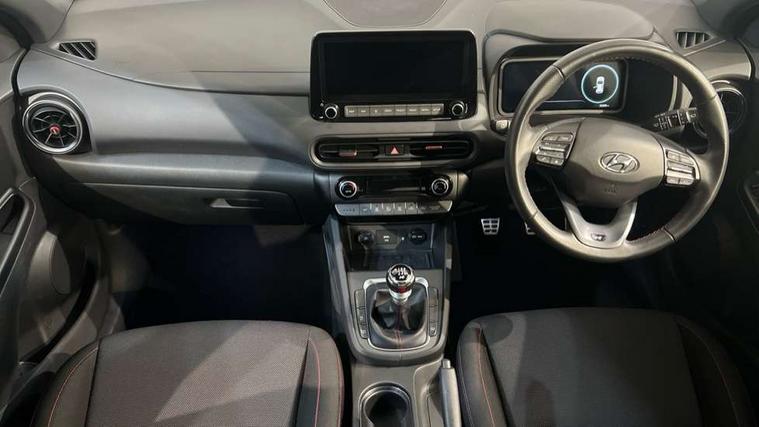 10.25" touchscreen centre console display satellite navigation with live services and mapcare, Bluetooth connectivity, Cruise control + speed limiter, Digital clock, Driver attention warning, Driver supervision instrument cluster with 10.25" LCD display, eCall emergency call system, Forward collision avoidance assist with pedestrian detection, Lane follow assist, Lane keep assist, Leading vehicle departure alert (LVDA), Parking system with rear camera and guidance system, PAS, Phone connection with apple carPlay and android auto, Rear parking sensor, Roadside assistance, Windscreen washer fluid sensor and warning indicator, Wireless phone charging pad, 6 speed intelligent manual transmission, Front and rear USB ports, Krell premium audio system with 8 speakers including external amplifier and subwoofer, RDS and Digital DAB, Steering wheel mounted audio/phone controls, Auto dimming rear view mirror, Automatic headlights with dusk sensor, Automatic windscreen wipers with rain sensor, Black radiator grille, Body colour bumpers, Body colour door mirrors and handles, Body colour side cladding, Body coloured garnish, Door mirror integrated indicators, Electric front/rear windows with drivers one touch/anti-trap, Electrically adjustable and heated door mirrors, Halogen headlights, LED daytime running lights, LED rear lights, Positioning Lights - LED, Power folding door mirrors, Privacy glass - Rear windows and tailgate, Rear roof spoiler with integrated LED brake light, Rear skid plate - silver, Rear wiper, Roof rails, Solar glass with front door glass and windscreen shade band, Windscreen auto defog function, 12V power outlet in front console, 60/40 split folding rear seat, Adjustable head restraints, Air conditioning climate control, Ambient lighting, Centre interior light, Cloth upholstery, Door scuff plate, Driver and passenger front seat pockets, Driver's seat electric lumbar support, Driver's seat height adjustment, Driver/passenger sunvisors and illuminated vanity mirrors, Front interior light, Front passenger seat manual adjustments, Height/reach adjustable steering column, Isofix rear child seat fastenings, Leather wrapped steering wheel and gear knob, Luggage compartment lighting, Luggage hooks, Luggage net, Metal paint effect interior door handles, Metal pedals, N logo on the gear shift, Parcel shelf, Rear centre console with air vents, Sunglasses holder, Vertical adjustment rear head restraints, Trailer wiring package - Kona, Airbags - front, front side and curtain airbags, Anti-lock brake system (ABS), Childproof rear door locks, Downhill brake control, EBD + Brake Assist, Electronic stability control, Fasten seatbelt reminder, Fixed 3 point for second row centre passenger seatbelt, Front seatbelt pretensioners, Height adjustable front seatbelts, Hill start assist control (HAC), Manual parking brake, Passenger airbag deactivate switch, Rear seat alert, Traction control, Tyre pressure monitoring system, Alarm/immobiliser, Deadlocks, Folding key, Locking wheel nuts, Remote central locking, 18" Alloy wheels,