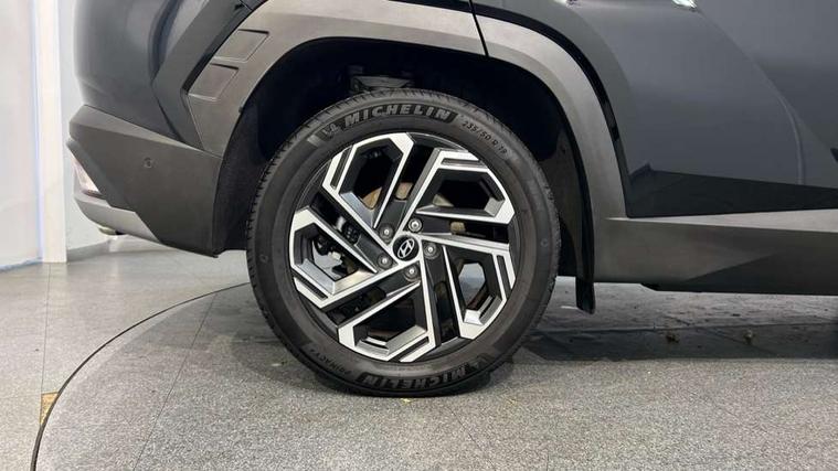 12.3" LCD display with driver's supervision instrument cluster, 12.3" widescreen navigation with bluelink and mapcare, Blind spot view monitor, Bluetooth system, Cruise control - smart adaptive speed control with stop and go function, Digital clock, Drive mode selector, Driver attention warning, E-call, Emergency stop signalling system, Forward Collision Avoidance Assist (FCA) - Car, Pedestrian and Cycle, Forward Collision Avoidance Assist Junction Turning (FCAJX), Front and rear parking sensors, Front, rear and side parking distance warning, Highway Driving Assist (HDA), Hyundai road side assistance, Intelligent speed limit assist, Lane follow assist, Lane keep assist, Over the air updates(OTA), Parking collision avoidance assist (PCA), PAS, Rear camera and guidance parking system, Rev counter, Smart power tailgate, Surround view monitor, Tailgate open warning light, Trip computer, Trip odometer, Voice recognition, Water temperature gauge, Windscreen washer fluid sensor and warning indicator, Wireless Apple CarPlay/Android Auto, Wireless phone charging pad, 2 front and 2 rear USB-C ports, DAB Digital radio, Krell premium audio system with 8 speakers and subwoofer, Steering wheel mounted audio/phone controls, Adjustable intermittent front windscreen wipers with aero wiper blade, Auto dimming rear view mirror, Automatic defog system, Automatic headlights with dusk sensor, Automatic windscreen wipers with rain sensor, Black wheel arches, Body colour bumpers, Body colour door mirrors with integrated indicators, Body colour exterior door handles, Electric tilt/slide panoramic sunroof, Electrically adjustable, heated and power folding door mirrors, Follow me home headlights, Front and rear electric windows with anti-trap mechanism and one touch control, Front fog lights, LED 3rd brake light, LED daytime running lights, LED rear lights, Matrix LED headlights, Positioning Lights - LED, Privacy glass - Rear windows and tailgate, Rear side wing doors, Rear wash/wipe with intermittent wipe setting, Roof rails, Tinted glass with windscreen shade band, Trailer stability assist, 12V power outlets in front console and luggage compartment, 3 seat bench in 2nd row, 40/20/40 split folding rear seat, 64 colours interior ambient lighting, Adjustable head restraints (Up and down), Cupholders in rear armrest, Door courtesy lights, Driver and passenger sunvisors with illuminated LED vanity mirrors, Driver's seat electric adjustments, Driver's seat memory, Front and rear door pockets, Front armrest with storage box, Front centre console and door bottle holders, Front passenger's seat electric adjustments, Heated front seats, Heated rear seats, Heated steering wheel, Height/reach adjustable steering column, Illuminated/air conditioned glove compartment, ISOFIX child seat anchorage points attached on outer rear seats, Leather upholstery, Leather wrapped steering wheel and gear knob, Luggage compartment lighting, Luggage cover, Luggage hooks, Luggage net, Map and reading lights, Rear seat remote folding function, Rear side window sunblind, Reclining rear seats, Retractable load cover, Single front passenger seat, Sunglasses holder, Three zone climate control, Touch sensitive climate controls with temperature dials, TUCSON branded metal door scuff plate, Underfloor boot compartment, Ventilated front seats, Trailer wiring package - Tucson, 3x3 point rear seatbelts, Active bonnet, Airbag - Front, front side, curtain and centre front airbags, Anti-lock brake system (ABS), Brake assist function, Childproof rear door locks, Curtain airbag roll over sensor, Downhill brake control, Electric parking brake, Electronic stability control, Front and rear seatbelt reminder, Front passenger airbag deactivation switch, Front seatbelt pretensioners, Hill start assist control (HAC), Multi-Collision braking, Outer rear seatbelt height adjustment, Seatbelt height adjustment for front seats, Traction control, Tyre pressure monitoring system with individual tyre pressure display - TPMS, Vehicle stability management, Deadlocks, Immobiliser, Locking wheel nuts, Remote control central locking, Smart key with keyless entry and engine start/stop button, Speed sensitive auto door locking, Thatcham category 1 alarm, 19" Alloy wheels, Tyre repair kit,