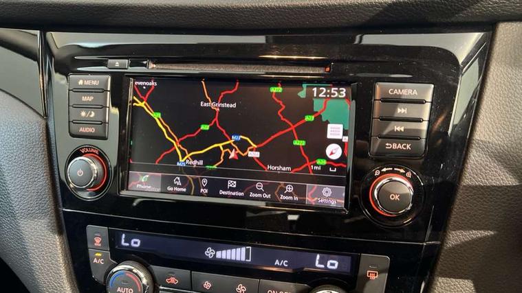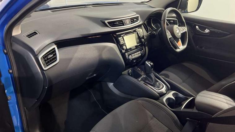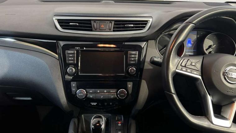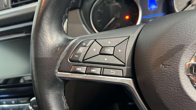 Advanced drive assist display 5'' TFT coloured screen, Apple car play/Android Auto, Bluetooth connectivity, Cruise control + speed limiter, Electric speed sensitive power steering, Front parking sensors, Idle stop/start system, Lane departure warning system, Nissan connect evo 7" touchscreen navigation and entertainment system, Normal or sport selectable steering, Outside temperature sensor, Premium Tomtom connected services, Rear parking sensors, Rear view camera, Service interval indicator, Smartphone integration, Traffic sign recognition, Trip computer, Voice control system, Nissan chassis control (intelligent ride control, intelligent trace control, intelligent engine brake), 6 speakers, AM/FM radio, CD audio system, Aux-in socket, DAB Digital radio, USB port, Anti dazzle rear view mirror, Auto wipers, Body colour bumpers, Body coloured door handles, Body coloured door mirrors, Chrome window surround, Daytime running lights dip function when turn signal applied, Electric folding door mirrors, Electric front and rear windows with one touch illuminated window controls, Electrically adjustable door mirrors, Front fog lights, Halogen headlights, Heated door mirrors, High beam assist, Intelligent auto headlights, LED indicators in door mirrors, Rear roof spoiler, Rear wiper with reverse link, Shark fin antenna, Signature LED daytime running lights, Underbody vortex generators, 2 X front 12v power sockets, 3 height adjustable rear headrests, 60/40 split folding rear seat, Ambient interior lighting, Ambient lighting around centre console, Bi-colour cloth upholstery, Boot lighting, Centre console storage box/armrest, Chrome interior door handles, Driver's seat manual height adjust, Dual zone climate control, Front and rear door pockets with bottle holders, Front and rear seat belt pre-tensioners with load limiters, Height adjustable front headrests, ISOFIX restraints on outer rear seats x2, Leather D shaped steering wheel, Leather gear lever, Leather knee pad, Manual height adjustable passenger seat, Manual lumbar support on driver seat, Pollen filter, Rear armrest with 2 cupholders, Tilt/telescopic adjustable steering wheel, Velour floor mats, 6 airbags - Driver, front passenger, curtain and side airbags, ABS, ESP, EBD and brake assist, Auto hold function, Child locks on rear doors, Electronic parking brake, Front and rear seat belt warning, Height adjustable front seatbelts, Hill start assist, Intelligent emergency braking with pedestrian recognition, Passenger airbag deactivation system, Three 3 point rear seatbelts, Tyre pressure monitoring system, Anti-theft immobiliser, Remote central locking, Thatcham Cat.1 alarm, Piano black dash trim, 17" alloy wheels, Tyre puncture repair kit,