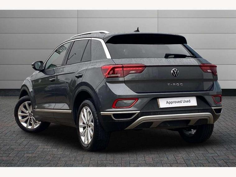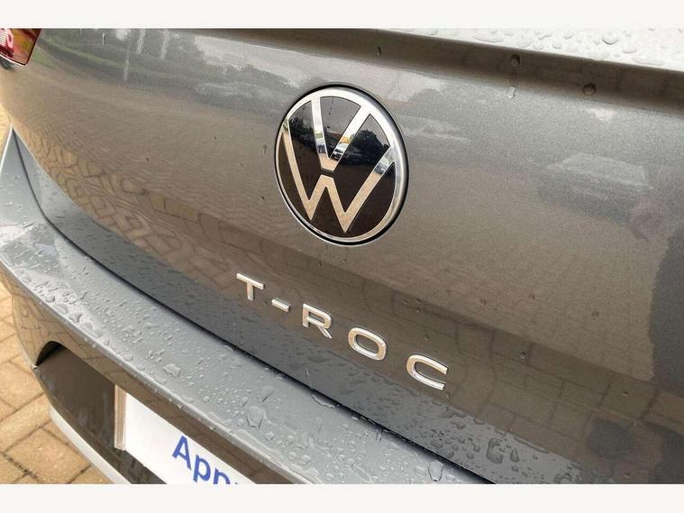10.25" Digital cockpit pro, Bluetooth mobile phone interface, Driver alert system with fatigue detection, Driver tips and journey analysis, Dynamic road sign display, Emergency call service, Lane keeping system Lane Assist, Modified key software - reduce switch off time for key status change to Long no motion, Online services, Park assist including front and rear parking sensors, Power assisted speed sensitive steering, Service interval indicator, Tailgate/trunk lid release from outside, Think blue trainer driver tips and journey analysis, Warning sound and light for front seatbelts unfastened, Wireless app connect, Battery regeneration during braking, Front shock absorption, Rear shock absorption chassis with increased ride height, Start/stop function with battery regeneration, Diversity antenna for FM reception, Front and rear 6 speakers, Music playback - MP3, WMA and AAC files, Premium USB cable in choice of either Apple or Android smartphone compatibility, SD card slot, Simultaneous pairing of 2 compatible mobile devices, Title and cover art display, We Connect and We Connect Plus functionality, 3rd brake light, Auto dimming interior rear view mirror, Automatic hazard lights activation under emergency braking, Automatic headlight control with LED separate daytime running lights with coming/leaving home function, Body colour sports bumpers with silver metallic underbody fascia, Dynamic headlight range control with self adjusting whilst driving, Extended roof spoiler, Exterior mirrors aspherical on driver side, convex on front passenger side, External USB type C socket and charging sockets, Front windscreen wiper with intermittent wipe and 4 position delay, Heated rear window, LED Plus headlamps, LED rear combination lamps, LED rear number plate lights, LED tail lamp rear comination lamps, Light mode for poor weather, rain, fog or snow, Power windows with comfort operation and circuit breaker, Rain sensor, Rear exhaust tailpipe, Rear fog light on one side and reversing lights on both sides, Rear side wing doors, Rear wash/wipe with intermittent wipe setting, Remote electrically foldable door mirrors, puddle lights and reverse activated passenger's door mirror, 12V power socket in centre console, 3 rear head restraints, 3 seat bench in 2nd row, 4 load lashing points in luggage compartment, Air care climatronic air conditoning system with active combination filter and 2-zone temperature control, Chrome plated radiator grille inserts, air vent surrounds and light switch surrounds, Door and side trim panel with leatherette insert, Drawer under drivers seat, Front + rear carpet mats, Front centre armrest, Front comfort sports seats, Front cupholders x 2, Front footwell illumination, Instrument lighting, white adjustable panel illumination, Interior ambient lighting and surround lighting, Interior light delay, Isofix child seat preparation, Leather gearshift handle, LED interior light with switch off delay/dimmer and 2 front/rear LED reading lights, Load-through provision with cup holder when folded down ('Unsplit rear seat bench, split folding backrest, with centre armrest), Luggage compartment lighting, Non-folding front passenger seat backrest, Single front passenger seat, Storage compartment in left and right luggage area, Storage compartment in rear doors, Storage compartments in driver and front passenger doors, Sunvisors with illuminated vanity mirrors, Variable boot floor, height adjustable and removable, Driver assistance pack without proactive passenger protection - T-Roc, 3 point height adj front seatbelts + pretensioners, 3 point seatbelts in outer rear with ECE label, ABS, Child locks on rear doors, Driver and front passenger airbag with front passenger airbag deactivation, Driver and front passenger safety-optimised head restraints, Drivers seatbelt reminder, Electronic parking brake, Electronic Stability Control (ESC) inc EDL (Electronic Differential Lock) and ASR (Traction Control), Front and rear passengers curtain airbag system including front side airbags, Front assist with city emergency braking and pedestrian monitoring, Front disc brakes, Front seat side impact airbags, Predictive pedestrian protection, Rear disc brakes, Single tone horn, Tyre pressure loss indicator, Volkswagen roadside assistance, Alarm with interior protection, Anti-theft alarm system with interior monitoring, backup horn, and towing protection, Remote central locking with SAFELOCK, radio remote control with 2 remote control folding keys, Trims for alloy wheels,