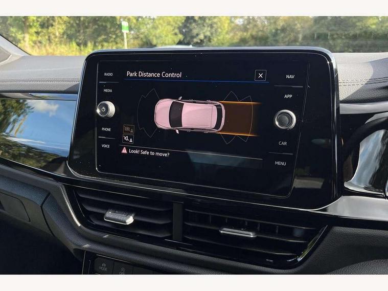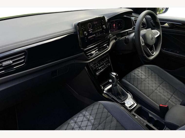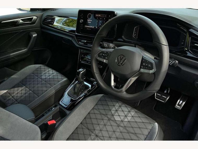 10.25" Digital cockpit pro, Advanced driver attention and drowsiness monitor, Emergency call service, Lane keeping system Lane Assist, Mobile phone interface, Modified key software - reduce switch off time for key status change to Long no motion, Online services, Park assist including front and rear parking sensors, Power assisted speed sensitive steering, Service interval indicator, Tailgate/trunk lid release from outside, Think blue trainer driver tips and journey analysis, Warning sound and light for front seatbelts unfastened, Wireless app connect, Battery regeneration during braking, Rear shock absorption chassis with increased ride height, Start/stop function with battery regeneration, DAB Digital radio, Diversity antenna for FM reception, Front and rear 6 speakers, Music playback - MP3, WMA and AAC files, Premium USB cable in choice of either Apple or Android smartphone compatibility, SD card slot, Simultaneous pairing of 2 compatible mobile devices, Title and cover art display, We Connect and We Connect Plus functionality, Auto dimming interior rear view mirror, Automatic hazard lights activation under emergency braking, Automatic headlight control with LED separate daytime running lights with coming/leaving home function, Dynamic cornering light, Electrically adjustable and heated door mirrors, Extended roof spoiler, Exterior mirrors aspherical on driver side, convex on front passenger side, External USB type C socket and charging sockets, Front windscreen wiper with intermittent wipe and 4 position delay, Heated rear window, Illuminated front grille, IQ LED matrix headlights, LED 3rd brake light, LED rear number plate lights, LED rear tail lights with dynamic turn signal, Light mode for poor weather, rain, fog or snow, Power windows with comfort operation and circuit breaker, R-Line design body coloured bumpers, Rain sensor, Rear exhaust tailpipe, Rear fog light on one side and reversing lights on both sides, Rear side wing doors, Rear wash/wipe with intermittent wipe setting, Remote electrically foldable door mirrors, puddle lights and reverse activated passenger's door mirror, 12V power socket in centre console, 3 rear head restraints, 3 seat bench in 2nd row, 4 load lashing points in luggage compartment, Air care climatronic air conditoning system with active combination filter and 2-zone temperature control, Artvelours cloth upholstery, Black roof lining, Chrome plated radiator grille inserts, air vent surrounds and light switch surrounds, Door and side trim panel with leatherette insert, Drawer under drivers seat, Driver seat height adjust, Driver's seat lumbar support, Front + rear carpet mats, Front centre armrest, Front comfort sports seats, Front cupholders x 2, Front footwell illumination, Front reading light, Front scuff plates with R Line logo, Front seat back storage pockets, Glove compartment door with light, Instrument lighting, white adjustable panel illumination, Interior ambient lighting and surround lighting, Interior light delay, Isofix child seat preparation, Leather gearshift handle, Leather wrapped multifunction steering wheel with paddle shift, Load-through provision with cup holder when folded down ('Unsplit rear seat bench, split folding backrest, with centre armrest), Luggage compartment lighting, Non-folding front passenger seat backrest, Passenger seat height adjuster, Passenger seat lumbar support, Single front passenger seat, Stainless steel pedals, Storage compartment in left and right luggage area, Storage compartment in rear doors, Storage compartments in driver and front passenger doors, Sunvisors with illuminated vanity mirrors, Variable boot floor, height adjustable and removable, Winter pack without heated windscreen washer jets - T-Roc, 3 point height adj front seatbelts + pretensioners, 3 point seatbelts in outer rear with ECE label, ABS, Child locks on rear doors, City emergency braking and pedestrian monitoring, Driver and front passenger airbag with front passenger airbag deactivation, Driver and front passenger safety-optimised head restraints, Drivers seatbelt reminder, Electronic parking brake, Electronic Stability Control (ESC) inc EDL (Electronic Differential Lock) and ASR (Traction Control), Front and rear passengers curtain airbag system including front side airbags, Front disc brakes, Hill start assist, Predictive pedestrian protection, Rear disc brakes, Two tone horn, Tyre pressure loss indicator, Volkswagen roadside assistance, Tool kit, Trims for alloy wheels, Tyre mobility kit including compressor and sealing foam,