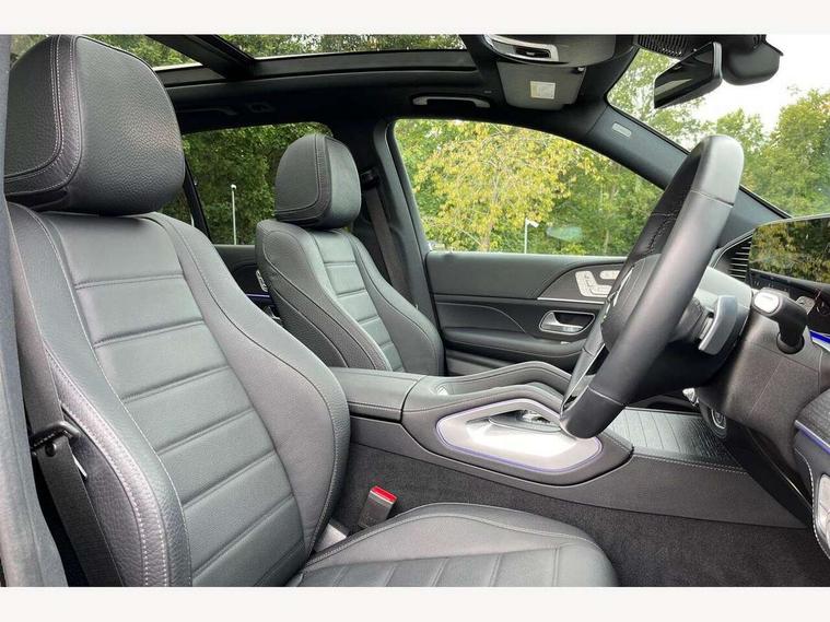 12.3 High resolution wide screen cockpit display with choice of three display styles Classic, Progressive or Sport and unique ambient lighting setting, 360 degree camera, Active parking assist with PARKTRONIC, Attention assist, Brake wear warning display, Direct steer speed sensitive steering, DYNAMIC SELECT with a choice of driving modes (ECO, Comfort, Sport and Individual), Easy-pack tailgate - Powered opening/closing automatically, ECO start/stop function, Hard-disk navigation, Head up Display, MBUX voice control activated by keywords "Hey Mercedes", Mercedes Benz emergency call system, Mercedes me connect - vehicle set up and monitoring, Outside temperature display, Pre-installation for digital key transfer, Remote boot release, Service indicator (ASSYST), Status display for rear seat belts in instrument cluster, Traffic sign assist, Trip computer in multifunction display showing current fuel consumption, Wireless charging, Wireless smartphone integration including Apple CarPlay and Android auto, 85 litre fuel tank, 9G TRONIC 9 speed automatic transmission, Airmatic air suspension with adaptive damping system, Diesel particulate filter (DPF), Mild Hybrid starter alternator, Additional USB connection, Bluetooth interface for hands free and audio streaming, Burmester surround sound system, DAB digital radio tuner, Front and rear USB ports, Sound personalisation, Adaptive brake lights, Aluminium look, illuminated running boards with rubber studs, AMG bodystyling front and rear aprons, Auto headlights, Automatically dimming rear view mirror, Body colour door mirrors, Body coloured bumpers, Electric windows with one touch opening/closing and obstruction sensors, Electrically adjustable, heated, folding exterior mirrors, Exterior styling - front bumper, radiator grille and front air intakes, Heat insulating dark tinted glass, LED 3rd brake light, LED daytime running light signet, LED rear lights, Magic vision control, Multibeam LED headlights with adaptive highbeam assist plus, Panoramic sliding sunroof, Radio aerial integrated into rear window, Rain sensing windscreen wipers, Rear side wing doors, Rear wiper, Roof rail system, Top surround of side windows in polished aluminium, Transparent Bonnet, Visible twin pipe exhaust system integrated into bumper, Waistline in polished aluminium, 3 spoke round bottomed multifunction steering wheel in nappa leather, 3rd row of seats for 2 people, 4 way adjustable front head restraints and 2 way rear head restraints, 4 way lumbar support for driver and front passenger, 40:20:40 split folding rear seats, Automatic child seat recognition sensor, Electric height/reach adjustable steering column, Electrically adjustable front seats with memory function, Front centre armrest with stowage compartment and illuminated grab handles, Gearshift paddles on steering wheel, Glove compartment - lockable, air conditioned and illuminated, Heated front seats, Illuminated door sill with Mercedes Benz lettering, Interior lighting - 64 colour Ambient lighting, Leather upholstery, Luggage compartment cover, Luxury AVANTGARDE Interior, Seat occupancy sensor for front passenger seat, Second row three seats, Single front passenger seat, Sunvisors with illuminated vanity mirrors, Thermotronic automatic 4 zone climate control, Touchpad, Velour floor mats, Exclusive Trim package - GLE, Keyless go comfort package - GLE, Active bonnet, Airbags - driver and front passenger, front sidebag, pelvis bag and window airbags, Anti-lock braking system (ABS), Black seat belts, Childproof locks manually operated for rear doors and electrically operated for rear power windows, Drivers knee airbag, Electronic parking brake, Electronic Stability Programme (ESP), ISOFIX child seat points with automatic child seat recognition, Perforated front brake discs and brake calipers with Mercedes-Benz lettering, Pre safe impulse side, Three point rear seat belts, Tyre pressure monitoring system, Warning triangle and first aid kit, Alarm system/interior protection/immobiliser, Central locking with interior switch, automatic locking and crash sensor with emergency opening function, Chrome surround electric key, Guard 360 degree vehicle protection plus, Dashboard and door beltlines in ARTICO man made leather, Trim - Centre console, anthracite open pore oak wood trim, 21" AMG multi spoke light alloy wheels, TIREFIT with tyre inflation compressor,