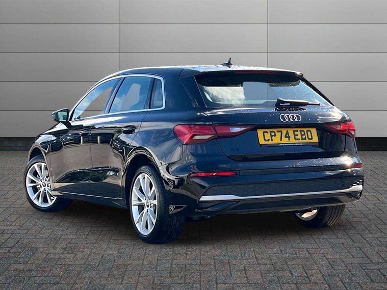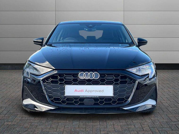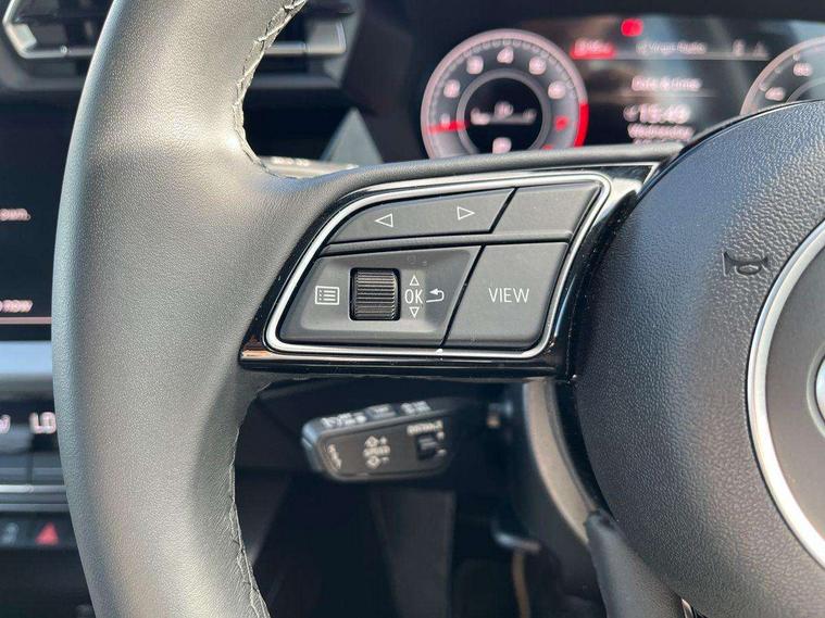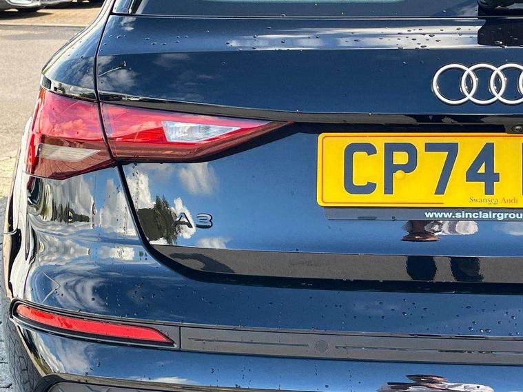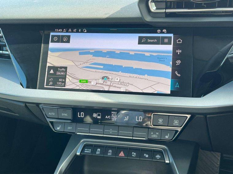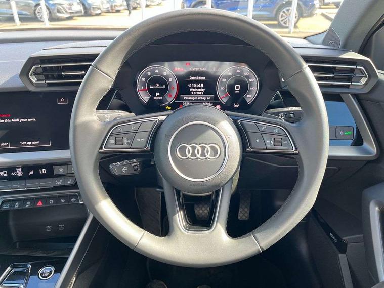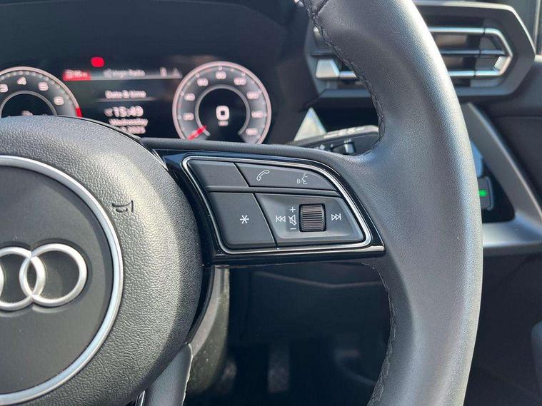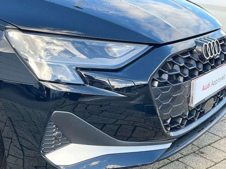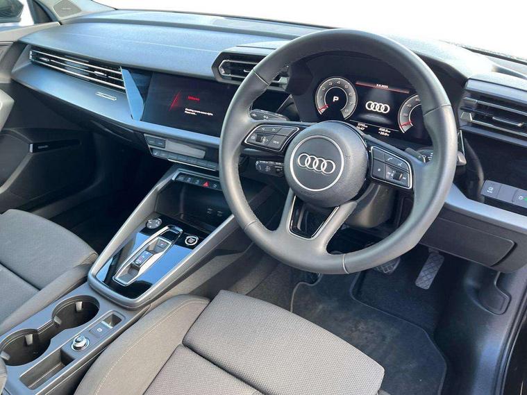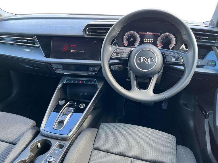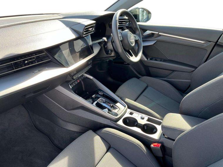 Adjustable speed limiter, Audi drive select, Audi smartphone interface with app store includes wireless Apple carplay, Android auto and Amazon alexa integration, Audi virtual cockpit plus - 12.3" full HD resolution dynamic digital instrument cluster, Automatic start/stop system with recuperation, Bluetooth interface, Camera based traffic sign recognition, Collision avoidance assistant, Cruise control, Distraction and Fatigue warning, e-Call (emergency call), Electromechanical power speed sensitive steering, Lane departure warning system, MMI Navigation Plus with high resolution 10.1" colour touch screen display, Park Assist with parking system Plus, Service indicator, Tailgate, Trip computer, Voice control system with natural language interaction, Standard suspension, Audi Phonebox light with wireless charging, Audi sound system - 10 loudspeakers including centre loudspeaker and subwoofer, DAB Digital radio, USB ports with charging function in the rear, 3rd brake light, Acoustic glass windscreen, Aluminium window trim, Auto dimming frameless rear view mirror, Body colour exterior mirrors, Body colour roof spoiler, Electrically adjustable/heated/folding/auto dimming door mirrors with integrated LED indications + kerb view function for passenger side, Exterior model badging, Front electric windows, Front radiator grill in high gloss dark chrome, Front side air inlets in grained matt black with silver frame, Heat insulating glass windscreen, LED daytime running lights, LED headlights and halogen rear lights, Light and rain sensors, Rear diffuser and grill in grained matt black with silver frame, Rear electric windows, Rear side wing doors, Rear window, rear door windows and rear side windows in clear glass, Rear wiper, 12V socket and storage compartment in front centre console, 3 seat bench in 2nd row, 3 spoke leather multifunction steering wheel with gear shift paddles, 3-zone deluxe automatic air conditioning, 4 way electrically adjustable lumbar support for driver and front passenger, 60/40 split folding rear seat bench, Front and rear headrests, Front centre armrest, Front door sill trims with aluminium inlay, Front/rear floor mats, Heated front seats, Height and reach adjustable steering wheel, Manual boot compartment lid, Manually adjustable front seats, Routine cloth upholstery with front sports seats, Seat side bolsters, Single front passenger seat, Steel grey cloth headlining, Aluminium interior elements pack - A3 Sportback, LED interior lighting pack -A3, 3x3 point rear seat belts, Driver and front passenger airbag with passenger airbag deactivation, Electronic Stabilisation Control (ESC) including ABS, ASR and EDL, First aid kit with warning triangle and 2 safety vests, Front side airbags with head airbags and interaction airbag, Hill hold assist, Pre-sense front with pedestrian and cyclist detection, Seatbelt monitoring, Tyre pressure loss indicator, Anti theft alarm, Anti-theft wheel bolts, Electronically operated child locks, Immobiliser, Remote central locking with safelock, Inlays in volcano grey fine paint finish,