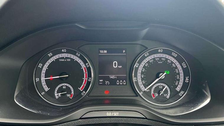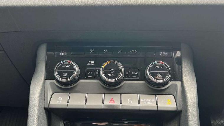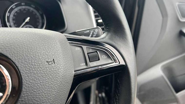 Driver alert system, Driver fatigue sensor, Driver profile selection, Electro-mechanical PAS, Outside temperature gauge, Service interval indicator, Start/stop system with regenerative braking, DAB radio with Bluetooth, SD card slot, USB connection, Acoustic glass, Aero front windscreen wipers with intermittent function, Automatic headlight control system, Body colour door mirrors and handles, Body coloured bumpers, Electrically adjustable heated folding and auto dimming door mirrors with boarding spots, Heated rear windscreen, LED rear lights with high functionality, Light assistant (coming/leaving home/tunnel light), Privacy glass, Safety reflectors on front doors, Third brake light, 1.5 litre bottle holders in driver and front passenger door panels, 12V socket in boot, 12v socket in front centre armrest with storage compartment and rear air vents, 2 Folding hooks and nets in boot, 2 Front readings lights for driver and passenger, 3 rear height adjustable headrests, 4 foldable roof handles with rear coat hooks, 4 lashing points on luggage floor, Backrest release, Cargo elements in boot, Chrome inner door handles, Driver and passenger seats height adjust, Dual zone climate control, Folding tables on the front seat backrests, Front seat and rear pockets, Height adjustable front three point seats belts with tensioners, Height/reach adjust steering wheel, Ice scraper, Illuminated and cooled glovebox, Illuminated luggage compartment, Isofix child seat preparation outer rear, Manual lumbar support for front seats, Net programme in boot, Pen holder, Pollen filter, Rear boot cover, Rear reading lights, Rear seats fixed folding and divided 60:40, Removable LED torch in the boot, Safety vest holder, Storage box in upper central dashboard closed, Storage net on centre console passenger side, Sunglasses storage compartment, Sunvisors with illuminated vanity mirrors, Umbrella under passenger seat, Airbags - Front side, head, knee and curtain, Automatic door unlocking in case of crash, Automatic fuel cut off in case of crash, Driver airbag, Electronic parking brake with auto hold function, Emergency rear braking signal, ESC including ABS, MSR, ASR, EDS, HBA, DSR, RBS, MKB and traction control, Front assist radar scanning of the space in front of the car with automatic braking, Hill hold control, Passenger airbag with switch-off function, Pedestrian monitor, Seatbelt reminder signalisation and pretensioner for all seats, Three point seatbelts rear, Two tone horn, Tyre pressure display, Tyre pressure monitor, Alarm with interior monitoring, back up horn and tilt sensor with safe function, Electronic engine immobiliser, Remote central locking with 2 remote folding keys, Chrome framed air vents, Storage on wheel cover,