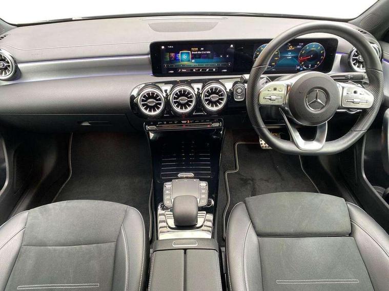 10.25" Digital instrument cluster display screen, 10.25" media display, 180 degree rear view camera with parking guidelines, Active parking assist with visual and audible warning of detected obstacles, Attention assist, Brake pad wear indicator warning light, Car wash mode, Cruise control + speed limiter, Direct steering, Dual bluetooth interfaces, DYNAMIC SELECT with a choice of driving modes (ECO, Comfort, Sport and Individual), ECO start/stop function, Fluid level warning indicator for fuel, oil, coolant and washer fluid, Hard-disk navigation, Hey Mercedes Voice activation, Lamp failure indicator, Lane keeping system, Mercedes me connect including emergency call system, accident recovery, breakdown and maintenance management, Mercedes me remote services, Outside temperature gauge, Owners manual in English, Pre-installation for private car sharing, Preinstallation for Mercedes Benz link, Service indicator (ASSYST), Smartphone integration with Apple CarPlay and Android auto, Speed sensitive power steering, Trip computer, Ultrasonic sensors positioned in the front and rear bumpers, Lowered comfort suspension, Rear axle torsion beam, 10 speakers, 2 USB ports (type C) in rear stowage compartment and one in front of center console, DAB Digital radio, MBUX multimedia system with DAB digital radio and touchpad including satellite navigation, Mercedes-Benz sound system - 100W, 4 Electric Front and Rear windows, Adaptive brake lights, AMG bodystyling - Front apron with splitter in chrome, rear apron with chrome trim and chrome visible trim elements in tailpipe, Black weather strip, Body colour bumpers, Body colour door handles, Body colour side skirt, Body coloured door mirrors, Electric adjustable and heated door mirrors with integrated LED side indicators, Exclusive diamond radiator grille, Exhaust system - Twin visible tailpipes in polished stainless steel, Headlamp assist automatic headlamp activation, Heated glass rear windscreen + timer control, High gloss black beltline, LED High level third brake light, LED high performance headlamps with integrated LED daytime running lights, LED tail lamp, Privacy glass, Radio aerial, Rain sensing windscreen wipers with two sensitivity settings, Rear fog lights, Rear wiper, Window line trim strip in high gloss black, 3 Spoke flat bottom leather multi function steering wheel with perforated leather in grip area, 40:20:40 split folding rear seats, Artico man-made leather/Microfibre Dinamica upholstery with contrast stitching in light grey, Auto Mercedes-Benz child seat recognition sensor, Black air vents with surround in silver chrome, Black roof lining, Brushed stainless steel sports pedals with rubber studs, Controller on centre console with chrome surround, Floor mats with black top stitching and embroidered edition logo and piping in light grey, Front centre armrest with storage compartment, Front seat backs luggage nets, Front seat cushion length adjustment, Galvanished gear shift paddles on steering wheel, Heated front seats, Height/reach adjustable steering column, Illuminated front door sills with changeable cover, Interior lighting - 64 colour Ambient lighting, Interior mirror with reading lamps in black and frameless, Manual height adjustable front seats, Rear armrest with 2 cupholders, Rear head restraints, Seat occupancy sensor for front passenger seat, Sports seats with integrated headrests, Stowage compartment in centre console with retractable cover, Sunvisors with illuminated vanity mirrors, Touchpad on center console, Twin front cupholders, Two zone thermotronic luxury automatic climate control, Light and sight pack - A Class, Mirror package - A Class, Night pack - A Class Saloon/Hatchback, Seat comfort pack - A Class, 3 rear 3 point seatbelts, ABS with Brake Assist, Active bonnet, Active brake assist includes forward collision warning system with autonomous braking, Adaptive brake assist with hold function and hill start assist, Black seatbelts, Childproof locks manually operated for rear doors and electrically operated for rear power windows, Crash responsive emergency lighting, Driver and passenger head and side airbags, Drivers knee airbag, Dual stage driver/passenger airbags, Electronic parking brake, ESP curve dynamic assist, ESP with ASR, Front and rear seatbelt reminder, Front brake callipers with Mercedes Benz lettering, ISOFIX and top tether child seat fixing points in two outer rear seats, Tyre pressure monitoring system, Warning triangle and first aid kit, Window airbags, Alarm system/interior protection/immobiliser, Keyless entry lock/unlock, Keyless Go, Remote central locking and crash sensor with emergency opening function, Urban guard vehicle protection system with immobiliser and interior protection, Matrix look light longitudinal grain aluminium trim element, 18" AMG 5 twin spoke light alloy wheels aerodynamically optimised painted in black with highsheen finish, Summer tyres, Tirefit sealant kit,