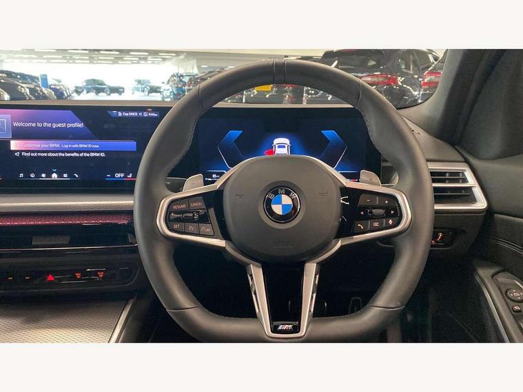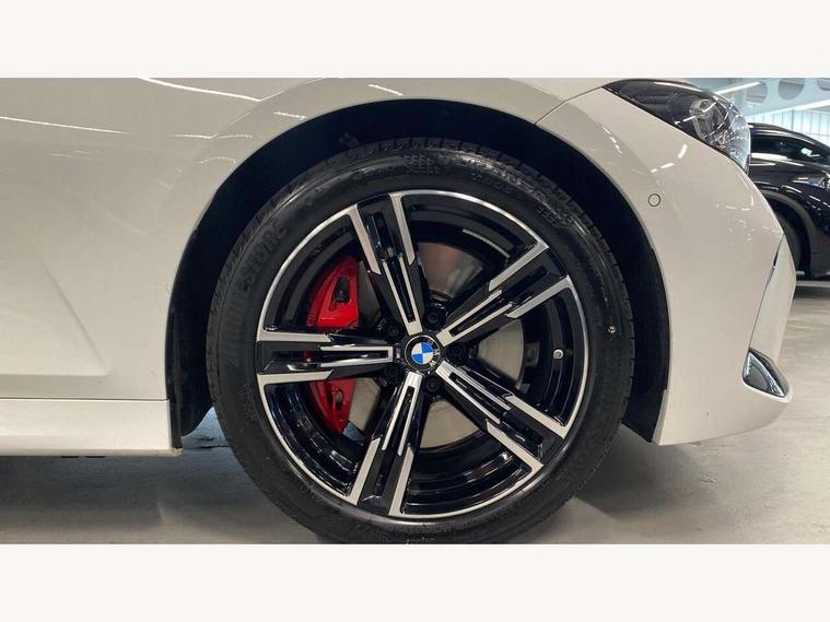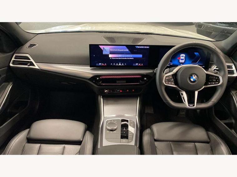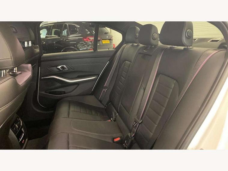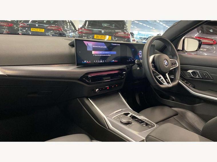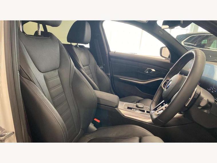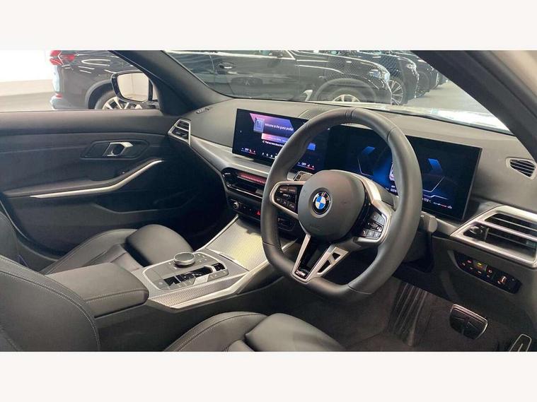Active guard plus, Attentiveness assist, Automatic Start/stop button, Bluetooth Wi-Fi interface, BMW iDrive, BMW Teleservices, ConnectedDrive Services - last state call, Live cockpit plus with Navigation + 12.3" instrument display + 14.9" display, Intelligent voice assist, 2 USB, 4G LTE connect, Oil sensor for level and grade, Personal e-SIM, Shifting point display, Variable sport steering, Double joint spring strut front axle, Fuel tank breather system, Steptronic Sport automatic transmission with steering wheel mounted gearshift paddles launch control and xtreme drive lever control, DAB tuner, 3rd brake light, Auto dimming rear view mirror, Automatic headlight beam throw control with load dependent regulating reaction, dynamic compensation of braking dive and acceleration squat, Bi-LED Low and high beam headlights, BMW emblem, engine compartment lid and tailgate, Body colour roof fin, Door sill strips, Electric windows - front and rear, with open/close fingertip control, anti-trap facility and comfort closing, Fading support, Folding wing mirror with auto dimming, Follow me home headlight function, Front and rear bumper system with replaceable deformation elements, Front apron plastic in body colour, Fuel filler flap - right rear in body colour, Heat protection glazing on front windows and windscreen, Heated washer jets, High gloss chrome kidney frame with high gloss black kidney struts, LED daytime running lights, LED rear lights, LED turn indicator, Licence plate panel integrated into front bumper and tailgate, M high gloss shadow line exterior trim, Matt black B-pillar finsher, Matt black window recess cover, Model designation on right side of tailgate, One piece front bumper cover including towing eye cover in body colour, Rain sensor with automatic headlight activation, Rear boot, Rear side wing doors, Reversing lights, Side frame decorative moulding black matt, Trailer stabilisation logic, Visible exhaust tailpipe finisher, Welcome lights in interior and door handle area, 12V power socket in front storage compartment, 2 front cupholder in centre console with clamping elements and matt black inlay, 3 seat bench in 2nd row, 3 spoke M Sport multifunction flat bottom leather steering wheel, 3 zone automatic air conditioning, 40:20:40 split folding rear seat with loading system, Anthracite headlining, Armrest integrated in front and rear door trim + front centre console armrest, BMW ID, Cruise control operation in steering wheel, Driving experience mode switch, Folding rear centre armrest with 2 cupholders, Front and rear headrests, Front and rear velour floor mats, Front reading light, Heated front seats, Height adjustable mechanically and infinitely variable steering column, Illuminated armrest storage compartment, Illuminated glove compartment, Illuminated luggage compartment, Lashing eyelets in luggage compartment, Single front passenger seat, Sunvisors with illuminated vanity mirrors and ticket pocket, Toolkit located in luggage compartment, Connected pack professional - 3 Series Saloon/Touring, Interior and exterior mirror pack - 3 Series Touring/Saloon, M sport exterior styling pack - 3 Series Saloon/Touring, Parking assistant pack - 3 Series, 3x3 point rear seatbelts, BMW emergency call, Child locks on rear doors, Crash sensor activating of airbags, Unlocking doors, hazard warning lights, interior light, safety battery terminal, Drive-off assistant, Driver and front passenger with seat occupancy detection for driver's and passenger side, Driver and passenger side airbags, body protection at side and airbags deploy from seat backrests, Dry braking, Dynamic brake control, Dynamic stability control + (DSC+) - Anti-lock Braking System (ABS) with brake assist and cornering brake control + Automatic Stability Control (ASC), Dynamic Traction Control - DTC, Electric parking brake including automatic hold function and automatic release of the parking brake when driving off, Electronic differential lock control (EDLC), Front airbag deactivation, Front airbags for driver and front passenger, Head airbags in 1st and 2nd row, head protection at side, curtain airbags open from headliner above 1st and 2nd row, Plastic fuel tank, Side impact protection, Tyre pressure sensors, Ventilated front and rear disc brakes, Warning triangle and first aid kit, Alarm system, Centre lock switch, Closing system with central locking, Electronic vehicle immobiliser, Locking wheel bolts, Tyre repair kit,