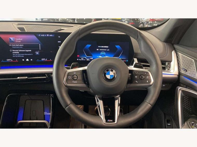 Attentiveness assist, Automatic start/stop function, BMW Live Cockpit Plus with 10.25" instrument cluster and 10.7" display, BMW Operating system 9 with BMW Maps, real-time traffic information, in-car experiences, remote services and smartphone integration, BMW Teleservices, Brake pad wear indicator, Condition based service, Connected eDrive Services, Drive off assistant, Electrically opening/closing tailgate with opening/closing with remote control and contactless opening and closing, iDrive controller, Language version English, My Modes, Parking Assistant with Reversing Assistant, active PDC, Lateral Parking Aid, Rear View Camera and Park Distance Control, Personal Profile - automatic lock when driving away selectable, Servotronic PAS, Tyre puncture warning system, Widescreen display, EU6 emissions management, Larger Fuel Tank, M Adaptive suspension, Performance Control, Petrol Particulate Filter, Steptronic transmission with double clutch and gear shift paddles, xDrive intelligent four wheel drive system, BMW Personal eSim, DAB Digital radio, Badge on engine compartment lid and tailgate, Body colour door mirrors, Dynamic brake lights, Electric adjustable heated door mirrors, Electric windows - front and rear, with open/close fingertip control, anti-trap facility and comfort closing, Folding door handles integrated flush with surface, Follow me home headlights, Front and rear bumper panel with M specific design, in body colour with inserts in black high gloss, Front door exit lights, Heated rear window, High gloss shadowline, Invisible exhaust tailpipe, Key with M identification, LED 3rd brake light integrated in rear spoiler, LED daytime running lights, LED number plate light, M identification on the sides, M roof rails high gloss shadow line, M specific radiator grille in satinated aluminium, Matt black roof strips, Model inscription on right tailgate, Rain sensor including auto headlights activation, Rear side wing doors, Rear wiper, Sill cover in body colour, Trailer stabilisation logic, Windscreen washer nozzle for rear view camera, Windscreen wipers front with heated washer nozzles, 12V - Power sockets with front centre console and luggage compartment, 2 bag hooks in luggage compartment, 2 cup holders in front, 2 x USB Type C ports for charging in front centre console + 1 x USB Type C ports for charging in rear centre console, 3 rear headrests, 3 seat bench in 2nd row, 3 upper retaining strap clips integrated into rear panels of seat backrests, 4 grab handles, 40:20:40 split folding rear seats, Ambient interior lighting, Anthracite headlining, Anthracite Velour front and rear floormats, Bottle trays in all doors, Child seat ISOFIX attachment for two outer rear seats and front passenger seat with anchorage points, Clothes hook rear, Driver and front passenger heated seats, Dual zone automatic air conditioning, Front and rear door pockets, Front and rear footwell lighting, Front centre console storage compartment, Front/rear adjustable head restraints, Glove compartment, Interior door handle recess light on all doors, Light on right in luggage compartment, M sport leather steering wheel, Manual steering column height and depth adjustment, Middle centre console storage compartment, One piece parcel shelf opens together with tailgate and removable, Rear armrest in door trim panel, Single front passenger seat, Sport leather multifunction steering wheel with thumbrests and operation of instrument display, audio, telephone and driver assistance, Storage compartment net in left side trim panel, Storage compartment with folding cover under centre console armrest cushion, Storage tray in right side trim panel, Tilt adjustment incl. cargo function of 2nd row of seats, Vanity mirror lights, ABS/EBD, Automatic hold function, Automatic Stability Control (ASC), BMW emergency call, Braking readiness, Cornering brake control (CBC), Crash Sensor - activates hazard/interior lighting + unlocks doors, Driver/Front Passenger airbags, Driver/front passenger side airbags, Dry braking, Dynamic brake control, Dynamic stability control + (DSC+), Electromechanical parking brake, Energy recovery system, First aid kit, Front and rear brake discs, Front and rear head airbags, Front passenger airbag deactivation, Integrated brake system, PC iBrake PostCrash approach control warning with light braking function, Rear door child safety locks, Three point seat belts in all seats, Tyre pressure monitor, Warning triangle, Alarm system with tilt sensor, monitoring doors, bonnet interior and tailgate, Closing system with central locking, Locking wheel bolts, Luxury instrument panel, Tyre repair kit plus,