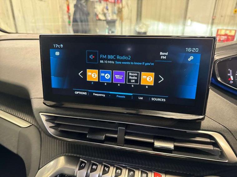 180 degree colour reversing camera, 3D connected navigation with 10" HD touchscreen, Bluetooth telephone facility, Drive modes select (Eco, normal and sport), Driving Time Warning (DAA1), Emergency services call system, Extended traffic sign recognition, Exterior temperature indicator with ice warning, Front parking sensors, Mirror screen with mirror link, apple carplay and android auto, Multi function trip computer, PEUGEOT i-Cockpit with 10" high definition capacitive touchscreen, Peugeot i-cockpit with compact multi-function sports steering wheel, PEUGEOT i-Cockpit with configurable 12.3" Head-up digital instrument panel, Programmable cruise control and speed limiter, Rear parking aid, Speed limit recognition and recommendation, Voice recognition, Dynamic stability control and electronic anti-skid system, Stop/start function, 6 speakers radio with mp3 compatible, DAB Digital radio, USB socket, Automatic hazard light activation upon heavy brake application, Automatic triggered rear windscreen wiper in reverse gear, Black rubber side window trim, Black with chrome detailed front wing trim, Body colour door handles, Body colour rear roof spoiler with stainless steel edging trim, Body colour roof, Body protectors (bottom of front and rear bumpers + wheel arches + protection at bottom of doors) in black, Chrome frameless 'Classic' grille, Chrome rear bumper facia, Dark tinted rear side windows + tailgate window, Diamond Black door mirror shells, Door mirror mounted LED courtesy floor lighting, Eco LED headlights, Electric folding door mirrors with exterior courtesy LED lighting, Electric operated/heated door mirrors, Front and rear door and sill protectors with polished stainless steel insert, Front bumper lower trim in Silver, Front windscreen wiper with magic wash cleaning system, Gloss black B and C pillar and aerodynamic deflector trim, Gloss black front bumper air scoops, Gloss black rear cluster connecting strip, Gloss black windscreen trim, Headlights left on audible warning, Heated rear windscreen with integrated antenna, LED daytime running lights, LED front indicator, LED rear number plate lighting, LED side indicator lights integrated into door mirrors, LED third brake light, One touch electric front/rear windows with pinch protection, Rear LED Peugeot signature 'Claw Effect' lights, Rear side wing doors, Stainless steel roof arches, 1/3 to 2/3 split folding rear seats, 12V Sockets in dashboard, rear cabin and load area, 2 cupholders in front centre console, 2 cupholders in rear armrest, 2 x Rear reading spotlights, 2x Rear coat hooks, 3x Isofix child seat fittings in the front passenger and outer rear seats, 4 Grab handles retractable and damped, Blue ambient lighting for connecting zone, Blue ambient lighting to headup instrument panel, Brumeo fabric trimmed door armrests, Centre front armrest with butterfly wing opening and illuminated storage compartment, Driver seat lumbar adjustment, Driver seat manual adjustment (longitudinal and back rest angle), Dual zone automatic climate control, Electric power steering with reach and rake adjustable steering column, Flocked glovebox interior, Front ambient lighting, Front interior light with 2 reading spotlights and rear interior light with timer, Front passenger seat manual adjustment (longitudinal and back rest angle), Front seat back map pockets, Gear shift indicator, Height adjustable front seats, Illuminated glovebox, Individual left and right controls in boot for seat folding, Leather steering wheel with detail stitch, LED interior lighting in storage spaces and load area, LED roof interior lighting, Rear bench seat with central armrest and ski hatch, Rear centre console ventilation system, Roof lining - Salin light grey, Satin chrome dashboard trim, Satin chrome digital instrument panel and touchscreen trim, Satin chrome interior door handles, Satin chrome scorpion's tail and toggle switch trim, Seatbelt not fastened audible and visual alert for front seats, Seatbelt unfastened on the move audible and visual alert for front and rear seats, Single front passenger seat, Two position boot floor, Safety plus pack with high beam assist - 3008, Visibility pack - 3008, 3x Rear three-point retractable seatbelts with force limiters in the outer rear seats, ABS (Anti-lock Braking System) with EBD (Electronic Brakeforce Distribution) and EBA (Emergency Braking Assistance), Adaptive driver and front passenger airbags with passenger airbag deactivation function, Driver and front passenger side airbags, Electric child locking functionality on rear windows and doors, Electric parking brake, Front and rear curtain airbags, Front optimised safety headrests and 3 x rear retractable headrests with height adjustable, Front three point retractable seatbelts with pre tensioners and force limiters, Front ventilated disc brakes and rear disc brakes, Hill start assist, Two tone horn, Automatic door locking when moving off, Electronic immobiliser, key operated exterior door lock from the left hand door, Keyless Start, Perimetric and volumetric alarm with lift and tilt sensor, Remote control central locking with two plip keys, Carbon effect Dashboard, front and rear door panel finish, Puncture repair kit including compressor, sealant cartridge and towing eye,