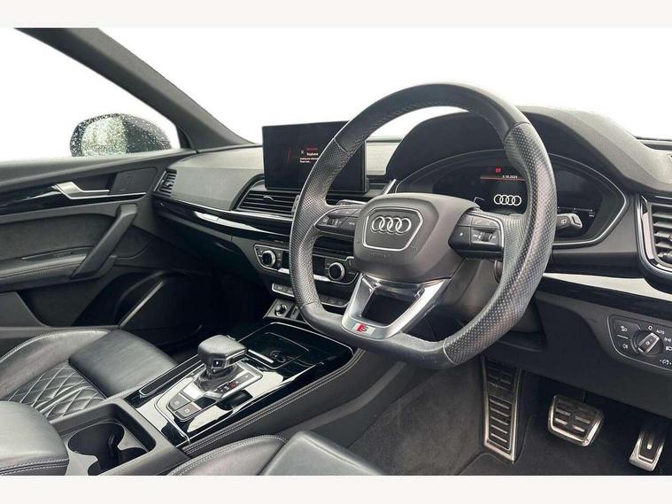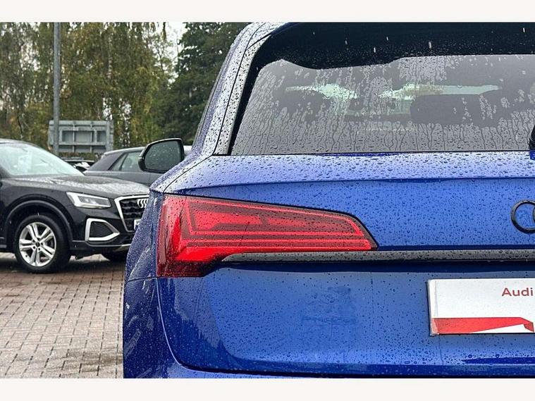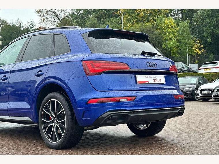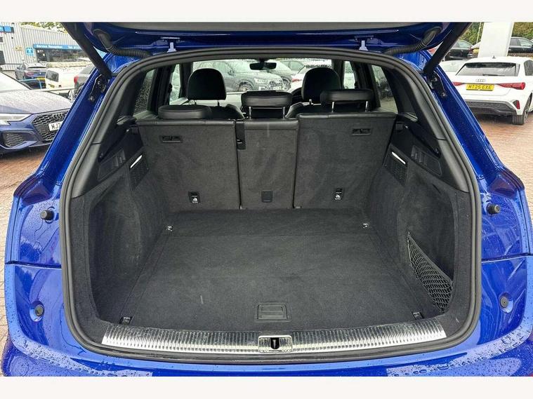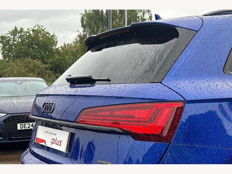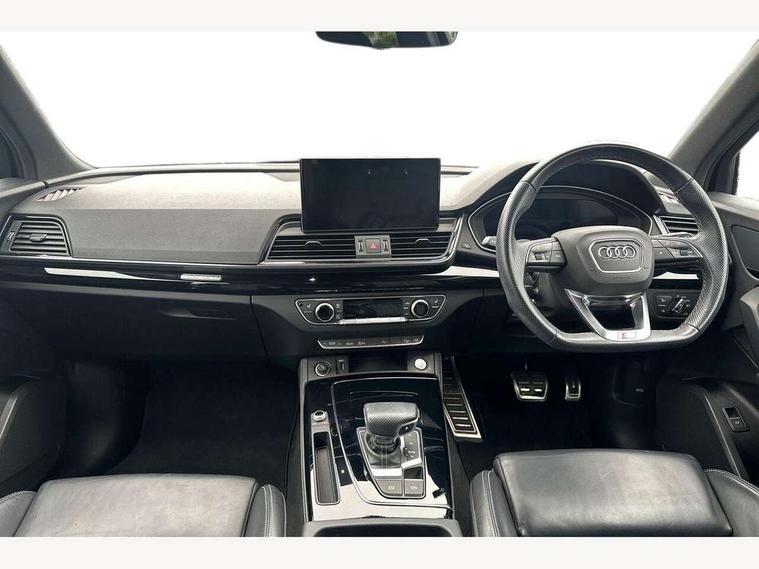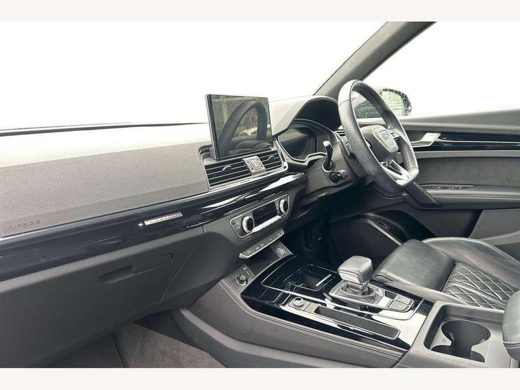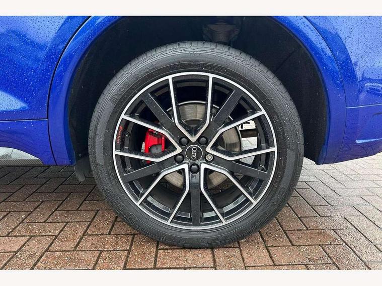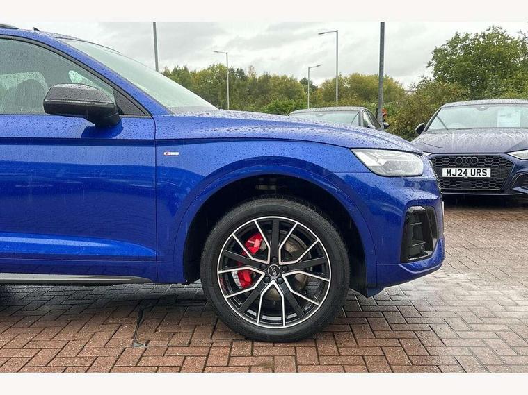 Acoustic front and rear parking sensor, Amazon alexa Integration, Audi connect safety and service (e-call), Audi drive select, Audi virtual cockpit plus with 12.3" screen and three different layout designs, Audi wireless smartphone interface, Automatic start-stop system with coasting functionality and efficiency programme, Electro - mechanical power assisted steering, MMI navigation plus with 10.1" touch screen, Mobile telephone preparation - bluetooth interface, Power tailgate, Reversing camera, Service interval indicator, Voice control system with Audi hotword activation "Hey Audi", Diesel particulate filter, Quattro on demand, S line sports suspension, 2 USB charging ports, DAB Digital radio, Acoustic windscreen, Audi beam with Audi rings logo, Audi matrix LED headlights with LED rear lights + dynamic front and rear indicators, Audi rings at front and rear in black, Audi rings decal on rear doors, Auto dimming rear view mirror, Automatic headlight adjustment, Automatic headlights and windscreen wipers, Black door mirrors, Black roof rails, Body colour bumpers, Body colour underbody protection, Chrome plated exhaust trims, Door side sills in carbon, Electric adjustable/heated/folding door mirrors, Front and rear electric windows, Headlight washers, Metallic paint, Rear privacy glass and rear side windows, Rear spoiler, Rear wiper, Roof bars, S Line badges on the front wings, S Line front and rear bumpers, S Line side skirts, Without model and engine badging at rear, 3 rear headrests, 4 way electric lumbar support for driver and front passenger, 40:20:40 split folding rear seat with rear centre armrest, Black cloth headlining, Contrast stitching on seats, steering wheel and gear lever gaiter, Deluxe 3 zone electronic climate control, Electrically adjustable front seats, Fine Nappa leather upholstery with diamond pattern contrast stitching + front sport seats with S embossed logo, Front centre armrest, Front/rear floor mats, Gear lever in black leather, Heated front seats, Height adjustable front head restraints, Height/reach adjustable steering column, Illuminated door sill trims with S logo, ISOFIX child seat mounting and top tether, Rear seat bench plus, Removable luggage compartment floor, Stainless steel pedals, Sunvisors with vanity mirrors, Trunk roller cover, Black styling package - Q5 Edition 1, Extended interior upholstery pack - Q5, Extended LED Interior multi coloured Lighting Pack - Q5, LED interior light pack - Q5, 3 point seatbelts on all seats, 6 airbags - Driver, front passenger, curtain and side airbags, Electrically operated child locks on rear doors, Electromechanical parking brake, Electronic stabilisation control including ABS, ASR and EDL, Front and rear brake calipers painted in red, Front passenger airbag deactivation, Hill descent control, Hill hold assist, Multi collision brake assist, Pop-up bonnet for pedestrian protection, Pre sense city, Seat belt force limiter, Seatbelt monitoring, Tyre pressure warning, Warning triangle and first aid kit, Anti theft alarm, Anti-theft wheel bolts, Keyless Go access/ignition system, Black piano finish inlays, 20" 5 V spoke star design Audi sport alloy wheels in gloss anthracite black with diamond cut finish, Tool kit,