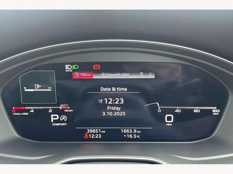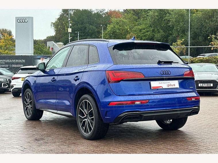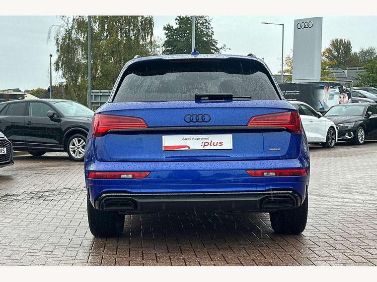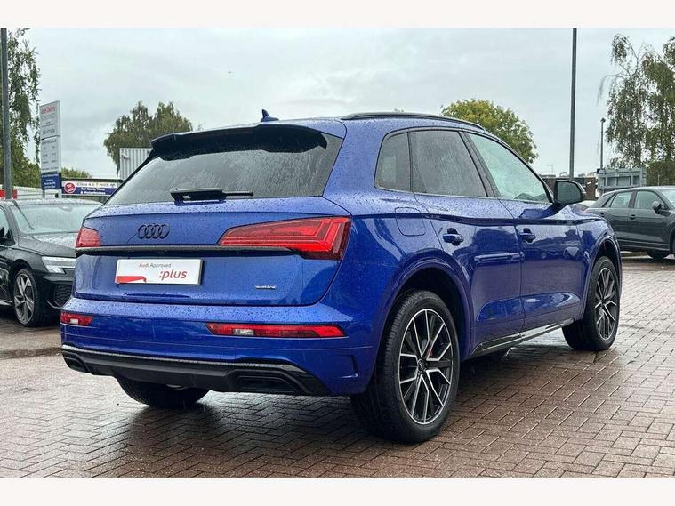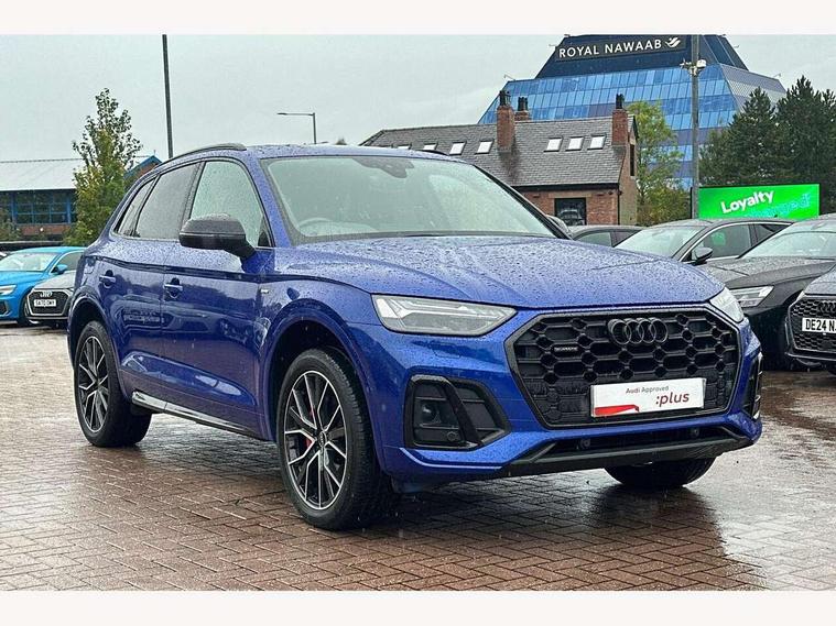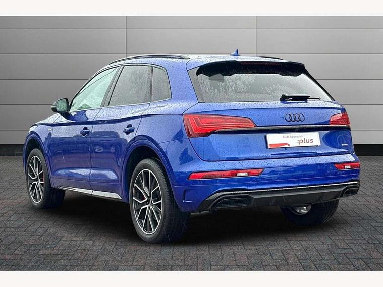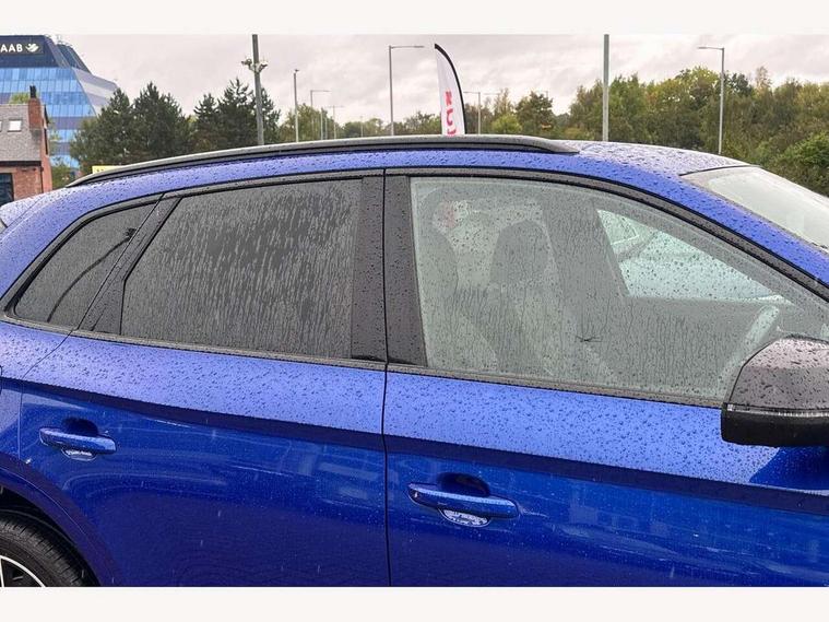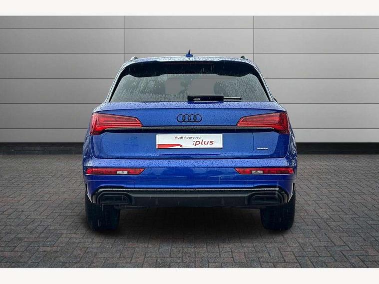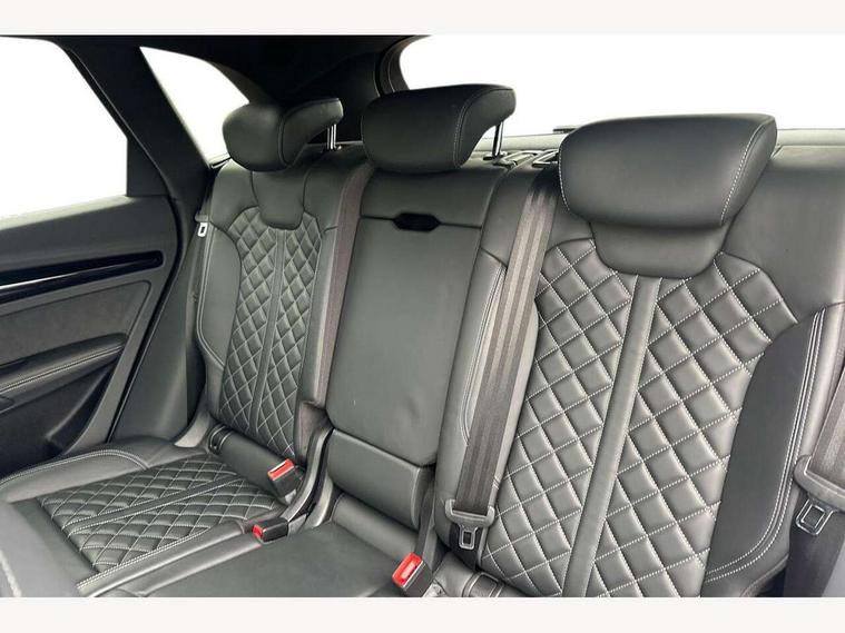 Acoustic front and rear parking sensor, Amazon alexa Integration, Audi connect safety and service (e-call), Audi drive select, Audi virtual cockpit plus with 12.3" screen and three different layout designs, Audi wireless smartphone interface, Automatic start-stop system with coasting functionality and efficiency programme, Electro - mechanical power assisted steering, MMI navigation plus with 10.1" touch screen, Mobile telephone preparation - bluetooth interface, Power tailgate, Reversing camera, Service interval indicator, Voice control system with Audi hotword activation "Hey Audi", Diesel particulate filter, Quattro on demand, S line sports suspension, 2 USB charging ports, DAB Digital radio, Acoustic windscreen, Audi beam with Audi rings logo, Audi matrix LED headlights with LED rear lights + dynamic front and rear indicators, Audi rings at front and rear in black, Audi rings decal on rear doors, Auto dimming rear view mirror, Automatic headlight adjustment, Automatic headlights and windscreen wipers, Black door mirrors, Black roof rails, Body colour bumpers, Body colour underbody protection, Chrome plated exhaust trims, Door side sills in carbon, Electric adjustable/heated/folding door mirrors, Front and rear electric windows, Headlight washers, Metallic paint, Rear privacy glass and rear side windows, Rear spoiler, Rear wiper, Roof bars, S Line badges on the front wings, S Line front and rear bumpers, S Line side skirts, Without model and engine badging at rear, 3 rear headrests, 4 way electric lumbar support for driver and front passenger, 40:20:40 split folding rear seat with rear centre armrest, Black cloth headlining, Contrast stitching on seats, steering wheel and gear lever gaiter, Deluxe 3 zone electronic climate control, Electrically adjustable front seats, Fine Nappa leather upholstery with diamond pattern contrast stitching + front sport seats with S embossed logo, Front centre armrest, Front/rear floor mats, Gear lever in black leather, Heated front seats, Height adjustable front head restraints, Height/reach adjustable steering column, Illuminated door sill trims with S logo, ISOFIX child seat mounting and top tether, Rear seat bench plus, Removable luggage compartment floor, Stainless steel pedals, Sunvisors with vanity mirrors, Trunk roller cover, Black styling package - Q5 Edition 1, Extended interior upholstery pack - Q5, Extended LED Interior multi coloured Lighting Pack - Q5, LED interior light pack - Q5, 3 point seatbelts on all seats, 6 airbags - Driver, front passenger, curtain and side airbags, Electrically operated child locks on rear doors, Electromechanical parking brake, Electronic stabilisation control including ABS, ASR and EDL, Front and rear brake calipers painted in red, Front passenger airbag deactivation, Hill descent control, Hill hold assist, Multi collision brake assist, Pop-up bonnet for pedestrian protection, Pre sense city, Seat belt force limiter, Seatbelt monitoring, Tyre pressure warning, Warning triangle and first aid kit, Anti theft alarm, Anti-theft wheel bolts, Keyless Go access/ignition system, Black piano finish inlays, 20" 5 V spoke star design Audi sport alloy wheels in gloss anthracite black with diamond cut finish, Tool kit,