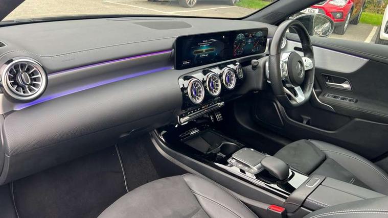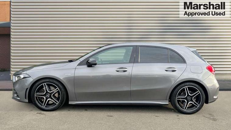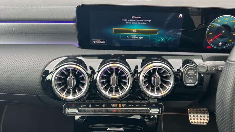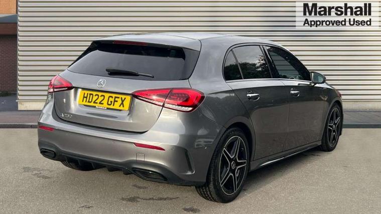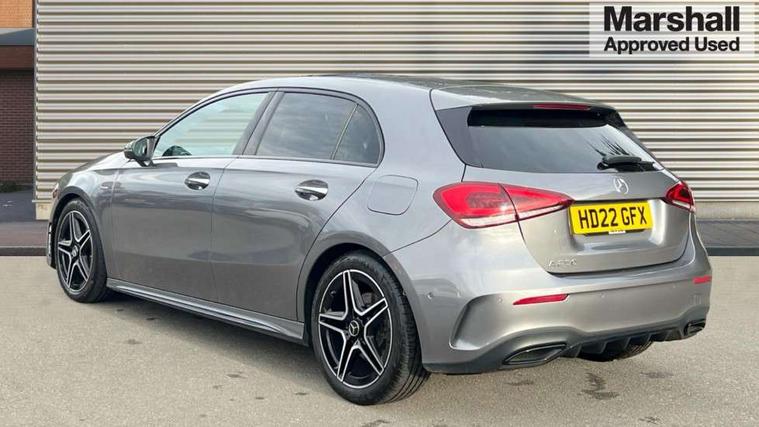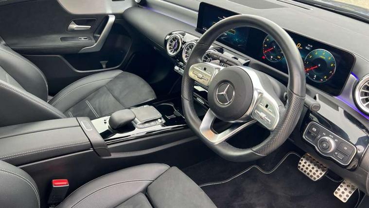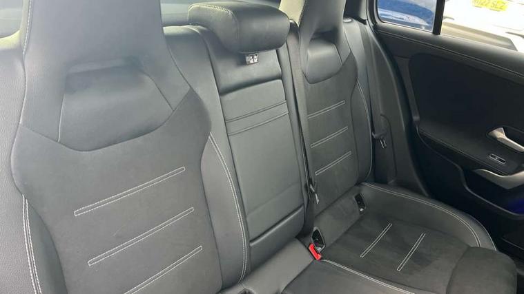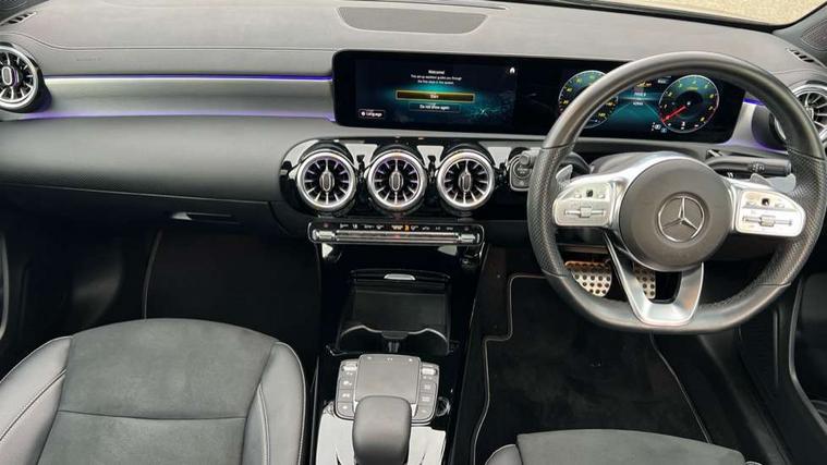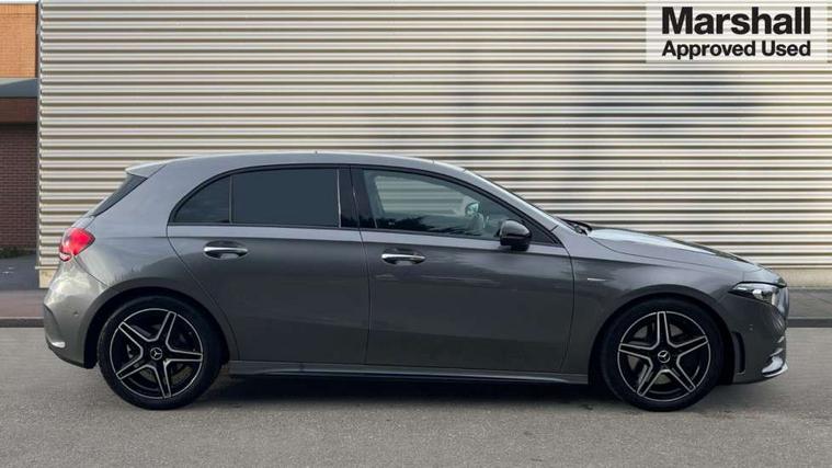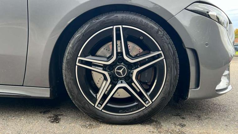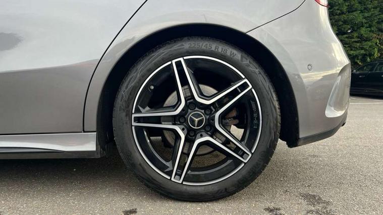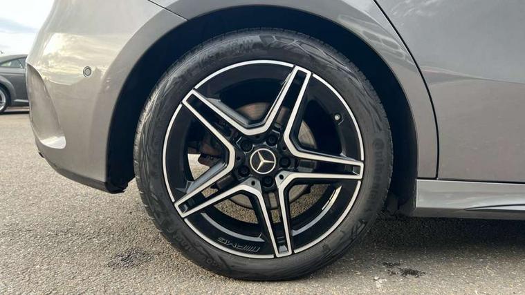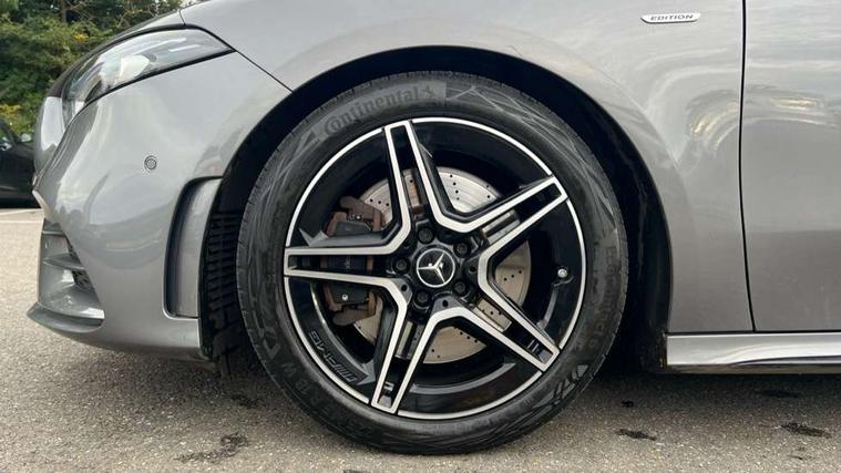 10.25" Digital instrument cluster display screen, 10.25" media display, 180 degree rear view camera with parking guidelines, Active parking assist with visual and audible warning of detected obstacles, Attention assist, Brake pad wear indicator warning light, Car wash mode, Direct steering, Dual bluetooth interfaces, DYNAMIC SELECT with a choice of driving modes (ECO, Comfort, Sport and Individual), ECO start/stop function, Fluid level warning indicator for fuel, oil, coolant and washer fluid, Hard-disk navigation, Hey Mercedes Voice activation, Lamp failure indicator, Lane keeping system, Mercedes me connect including emergency call system, accident recovery, breakdown and maintenance management, Mercedes me remote services, Outside temperature gauge, Owners manual in English, Pre-installation for private car sharing, Preinstallation for Mercedes Benz link, Service indicator (ASSYST), Smartphone integration with Apple CarPlay and Android auto, Traffic sign assist, Trip computer, Ultrasonic sensors positioned in the front and rear bumpers, Lowered comfort suspension, Rear axle multi-link, 10 speakers, 2 USB ports (type C) in rear stowage compartment and one in front of center console, DAB Digital radio, MBUX multimedia system with DAB digital radio and touchpad including satellite navigation, Mercedes-Benz sound system - 100W, 4 Electric Front and Rear windows, Adaptive brake lights, AMG bodystyling - Front apron with splitter in chrome, rear apron with chrome trim and chrome visible trim elements in tailpipe, Automatic headlights, Black weather strip, Body colour bumpers, Body colour door handles, Body colour side skirt, Body coloured door mirrors, Electric adjustable and heated door mirrors with integrated LED side indicators, Exclusive diamond radiator grille, Exhaust system - Twin visible tailpipes in polished stainless steel, Headlamp assist automatic headlamp activation, Heated glass rear windscreen + timer control, High gloss black beltline, LED daytime running lights, LED High level third brake light, LED tail lamp, Multibeam LED headlights with adaptive highbeam assist plus, Panoramic sliding sunroof, Privacy glass, Radio aerial, Rain sensing windscreen wipers with two sensitivity settings, Rear fog lights, Rear side wing doors, Rear wiper, Window line trim strip in high gloss black, 3 seat bench in 2nd row, 3 Spoke flat bottom leather multi function steering wheel with perforated leather in grip area, 40:20:40 split folding rear seats, Artico man-made leather/Microfibre Dinamica upholstery with contrast stitching in light grey, Auto Mercedes-Benz child seat recognition sensor, Black air vents with surround in silver chrome, Black roof lining, Brushed stainless steel sports pedals with rubber studs, Controller on centre console with chrome surround, Floor mats with black top stitching and embroidered edition logo and piping in light grey, Front centre armrest with storage compartment, Front seat backs luggage nets, Front seat cushion length adjustment, Galvanished gear shift paddles on steering wheel, Heated front seats, Height/reach adjustable steering column, Illuminated front door sills with changeable cover, Interior lighting - 64 colour Ambient lighting, Interior mirror with reading lamps in black and frameless, Rear armrest with 2 cupholders, Rear head restraints, Seat occupancy sensor for front passenger seat, Single front passenger seat, Sports seats with integrated headrests, Stowage compartment in centre console with retractable cover, Sunvisors with illuminated vanity mirrors, Touchpad on center console, Twin front cupholders, Two zone thermotronic luxury automatic climate control, Light and sight pack - A Class, Mirror package - A Class, Night pack - A Class Saloon/Hatchback, Seat comfort pack - A Class, 3 rear 3 point seatbelts, ABS with Brake Assist, Active bonnet, Adaptive brake assist with hold function and hill start assist, Black seatbelts, Childproof locks manually operated for rear doors and electrically operated for rear power windows, Crash responsive emergency lighting, Driver and passenger head and side airbags, Drivers knee airbag, Dual stage driver/passenger airbags, Electronic parking brake, ESP curve dynamic assist, ESP with ASR, Front and rear seatbelt reminder, Front brake callipers with Mercedes Benz lettering, ISOFIX and top tether child seat fixing points in two outer rear seats, Perforated front brake discs, Tyre pressure monitoring system, Warning triangle and first aid kit, Window airbags, Alarm system/interior protection/immobiliser, Keyless entry lock/unlock, Keyless Go, Remote central locking and crash sensor with emergency opening function, Urban guard vehicle protection system with immobiliser and interior protection, Matrix look light longitudinal grain aluminium trim element, 18" AMG 5 twin spoke light alloy wheels aerodynamically optimised painted in black with highsheen finish, Summer tyres, Tirefit sealant kit,