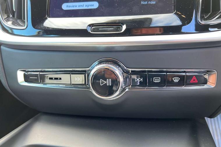 12.3" Progressive Driver Display, 9" centre console touch screen, Adjustable steering wheel force, Bluetooth handsfree system, Cruise control, Driver alert control with lane keeping aid, Driver awareness - Blind spot information system with steer assist, cross traffic alert with autobrake and rear collision warning and mitigation, E-call, Emergency and breakdown call function, Front and rear park assist, Google automotive services - Enabled entertainment apps, navigation with google maps, voice recognition with google assistant, Handsfree tailgate opening/closing, Information centre, Oncoming Lane Mitigation, Service interval indicator, Speed limiter, Speed sensitive steering, Trip computer, Volvo cars services with app, Volvo on call app, Wireless/Inductive Mobile Phone Charging, Automatic transmission with start/stop and manual change functions, DAB Digital radio, High performance sound, 2 x front and rear Type C USB, 10 speakers/220W output, Steering wheel remote infotainment controls, Adaptive brake lights with high level LED brake lights, Auto dimming interior + exterior mirrors, Automatic headlight levelling system, Automatic LED Headlights + Active high beam incorporating daytime running lights, Body colour bumpers, Bootlid/tailgate illumination, Colour coordinated auto folding and heated power door mirrors, Front aluminium tread plates, Front and rear power windows, Heated front windscreen, High gloss black door mirrors and window surround, High gloss black mesh front grille with high gloss black surround, Home safe and approach lighting, Integrated roof rails in high gloss black, LED front fog lights, Puddle lights, Rain sensor with automatic windscreen wiper activation, Rear side wing doors, Rear wiper, Roof antenna, Roof spoiler, Visible VIN plate, 12V socket in front tunnel console and luggage compartment, 4 zone electronic climate control with Clean zone air quality system + pollen filter, 60/40 versatile split folding 3 bench rear seats in 2nd row, A-pillar parking ticket holder, Advanced interior air cleaner PM2.5, B Pillar ventilation, Bright metal luggage compartment threshold, Centre console storage, Charcoal carpets and floor mats, Extended front seat cushions, Flexible load floor and grocery bag holder, Front and rear courtesy and front reading lights, Front cupholders, Front footwell illumination, Front head restraints, Front passenger seat electric height adjust, Front/rear door pockets and front cupholder illumination, Glovebox compartment with illumination, Heated front seats, Heated rear seats outer positions, Heated steering wheel, Height/reach adjustable steering column, Illuminated vanity mirrors + ticket holder, ISOFIX attachment on outer rear seats, Load cover, Load protection net, Luggage compartment illumination, Luggage compartment load hooks, Multi directional lumbar support, Power driver seat with memory + exterior mirrors memory, Rear armrest with cupholder, Rear footwell and front and rear side step illumination, Rear head restraints, Rear reading lights, Single front passenger seat, Underfloor cargo storage, 5 x 3 point seatbelts, City safety with steering support with Pedestrian + cyclist + front collision warning with full auto brake and rear auto brake, Dual stage driver/passenger airbags, First aid kit, Front seats SIPS airbags, Hill start assist, IC (Inflatable Curtains) - Full Length, Passenger airbag cut-off switch, Power child locks on rear doors, Power parking brake with auto hold function, Road sign information display, Run off Road Mitigation, Run off Road Protection, Seatbelt reminder and pretensioners for all seats, SIPS (Side Impact Protection System), Slippery road and hazard light alert, Stability and Traction Control with Spin control, Engine Drag Control and Corner Traction Control, Tyre pressure monitoring system, Vehicle deceleration control with Anti-lock Brake System, Electronic Brake Distribution and Emergency Brake Assist, Warning triangle, WHIPS whiplash protection system - front, Anti-theft alarm including immobiliser/volume sensor + level sensor, Care key with user defined top speed, Key integrated remote control central locking + fuel flap with deadlocking system and auto open/close power windows, Keyless drive includes keyless entry and keyless start, Locking wheel nuts, Private locking luggage compartment,