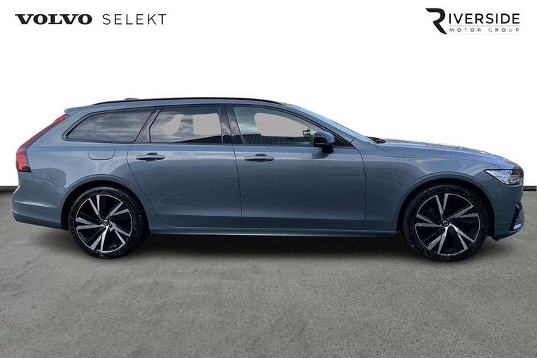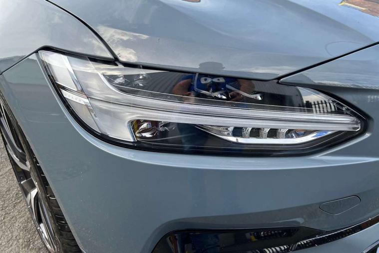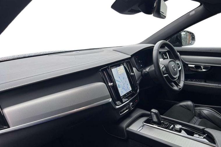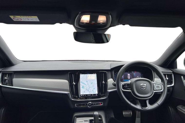 12.3" Progressive Driver Display, 9" centre console touch screen, Adjustable steering wheel force, Bluetooth Handsfree Phone Connection, Drive mode settings, Google automotive services - Enabled entertainment apps, navigation with google maps, voice recognition with google assistant, Lane keep assist with driver alert control, Oncoming Lane Mitigation, Power operated tailgate, Speed limiter, Speed sensitive steering, Volvo on call, Wireless/Inductive Mobile Phone Charging, 8 speed automatic transmission with start/stop + manual change functions, DAB Radio (Digital Audio Broadcasting), Steering wheel remote infotainment controls, Adaptive brake lights with high level LED brake lights, Auto dimming interior + exterior mirrors, Automatic headlamp levelling, Automatic LED Headlights + Active high beam incorporating daytime running lights, Colour coordinated auto folding and heated power door mirrors, Dark tinted windows for rear side windows and cargo area, Front and rear power windows, High gloss black door mirrors and window surround, High gloss black lower front bumper, High gloss black mesh front grille with silk metal surround, High gloss black rear bumper deco, Home safe and approach lighting, Integrated roof rails in high gloss black, Puddle lights in exterior door handles, Rain sensor with automatic windscreen wiper activation, Rear LED lights with sequential indicators, Roof antenna, Roof spoiler, Visible VIN plate, 3 spoke leather steering wheel with chrome trim, A-pillar parking ticket holder, Ambient door and instrument panel lighting, B Pillar ventilation, Bright metal luggage threshold, Cargo divider with grocery bag holder, Center Console Cupholders and Storage, Charcoal headlining, Driver's side lower dashboard storage compartment, Extended front seat cushions, Front 12V socket tunnel console and cargo area, Front centre armrest storage illumination, Front footwell and side step illumination, Front head restraints, Front/rear door pockets and front cupholder illumination, Front/rear reading lights, Heated front seats, Height/reach adjustable steering column, Illuminated front and rear tread plates, Illuminated glovebox, Illuminated luggage compartment, Illuminated tailgate, Illuminated vanity mirrors + ticket holder, Integrated sun curtains in rear doors, Isofix system on outer rear seats, Load cover, Load protection net, Off-black finish in steering wheel, Power driver seat with memory for seat and exterior mirrors, Power Folding Rear Seat Backrests and Headrests, Rear armrest with storage + cupholders, Rear footwell and side step illumination, Ski hatch, Sport pedals, Sports floor mats, Sports leather gear knob, Sports tailored steering wheel, Underfloor cargo storage, Versatile split folding rear seat - 60/40, Driver assist pack - V90, 3x3 point rear seatbelts, Active bonnet, City safety with steering support with Pedestrian + cyclist + front collision warning with full auto brake and rear auto brake, Drivers knee airbag, Dual stage driver/passenger airbags, Front seats SIPS airbags, Hill start assist, IC (Inflatable Curtains) - Full Length, Passenger airbag cut-off device, Power parking brake with auto hold function, Road sign information display, Run off Road Mitigation, Run off Road Protection, Seatbelt reminder and pretensioners for all seats, SIPS (Side Impact Protection System), Slippery road and hazard light alert, Stability and Traction Control with Spin control, Engine Drag Control and Corner Traction Control, Tyre pressure monitoring system, Vehicle deceleration control with Anti-lock Brake System, Electronic Brake Distribution and Emergency Brake Assist, Warning triangle and first aid kit, WHIPS whiplash protection system - front, Anti-theft alarm including immobiliser/volume sensor + level sensor, Care key with user defined top speed, Key integrated remote control central locking + fuel flap with deadlocking system and auto open/close power windows, Keyless drive with Keyless entry and start, Locking wheel nuts, Private locking for tailgate, Metal mesh inlays, Tailored Instrument Panel and Door Tops with Contrast Stitching,
