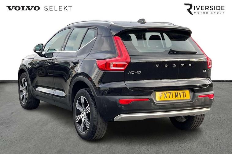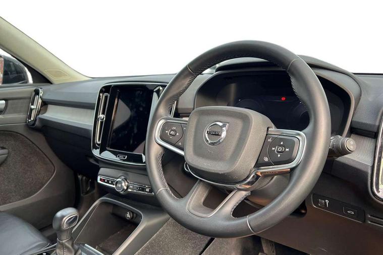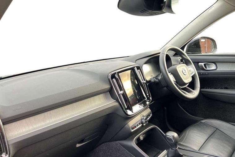 12.3" Active TFT crystal driver's instrument display, 9" centre console portrait touch screen, Adjustable steering wheel force, Bluetooth hands free telephone kit, Drive mode selector, E-call, Lane keep assist with driver alert control, Oncoming Lane Mitigation, Power operated tailgate, Sensus navigation with European mapping and traffic information, Speed limiter, Speed sensitive steering, Voice activated control for key functions, Volvo on call, Dynamic chassis, DAB Digital radio, Steering wheel mounted remote controls, Adaptive brake lights with high level LED brake lights, Auto dimming interior mirror, Automatic headlamp levelling, Chrome window surround, Colour coordinated auto folding and heated power door mirrors, Front aluminium tread plates, Front and rear electric windows, High gloss black front grille with chrome inserts, High gloss black sensus surround deco, High Gloss silver front and rear skid plate, Home safe and approach lighting, Integrated roof rails in silver, LED Headlights + Active high beam incorporating daytime running lights, Rain sensor with automatic windscreen wiper activation, Rear side wing doors, Rear wiper, Roof antenna, Roof spoiler, Visible VIN plate, 12V socket in front tunnel console and luggage compartment, 2 zone electronic climate control and rear air vent, 3 seat bench in 2nd row, 3 Spoke tailored steering wheel with chrome trim, 60/40 versatile split folding rear seat, A-pillar parking ticket holder, Bright metal luggage threshold, Centre console cupholders and storage, Floor mats, Front footwell illumination, Front headrests, Front reading light and theatre lighting, Glovebox bag hook, Height/reach adjustable steering column, Height/tilt adjustable driver's seat, Illuminated glovebox, Illuminated luggage compartment, Illuminated vanity mirrors, Isofix attachments on outer rear seats, Leather faced upholstery, Leather gearknob, Load protection net, Multi directional lumbar support, Power driver seat with memory + exterior mirrors memory, Rear armrest / integral cup holders / storage tray, Rear coat hook, Single front passenger seat, Underfloor cargo storage, Vanity mirror with ticket holder, Park assist pack - XC40, 3x3 point rear seatbelts, City safety includes pedestrian, cyclist and large animal detection and front collision warning with full auto brake, Drivers knee airbag, Dual stage driver/passenger airbags, Electronic parking brake with auto hold, First aid kit, Front and outer rear seatbelt reminder and pretensioners, Front seats SIPS airbags, Hill descent control, Hill start assist, Inflatable curtain, Passenger airbag cut-off device, Road sign information display, Run off Road Mitigation, Run off Road Protection, SIPS (Side Impact Protection System), Slippery road and hazard light alert, Stability and Traction Control with Spin control, Engine Drag Control and Corner Traction Control, Tyre pressure monitoring system, Vehicle deceleration control with Anti-lock Brake System, Electronic Brake Distribution and Emergency Brake Assist, Warning triangle, WHIPS whiplash protection system - front, Anti-theft alarm including immobiliser/volume sensor + level sensor, Care key with user defined top speed, Key integrated remote control central locking + fuel flap with deadlocking system and auto open/close power windows, Locking wheel nuts, Private locking for tailgate, Driftwood inlays,