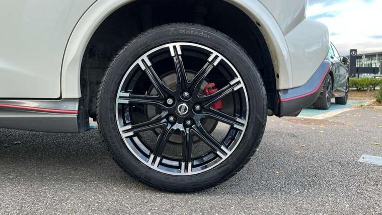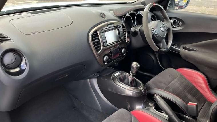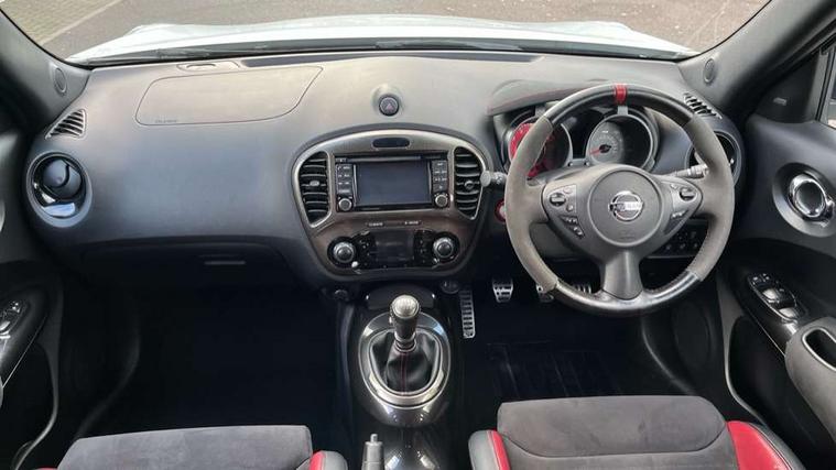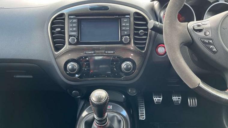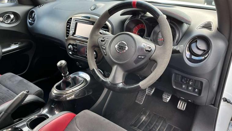 Bluetooth system, Colour rear view camera, Cruise control + speed limiter, Electric speed sensitive power steering, Nissan connect sat nav system, Push button starter, Service interval indicator, Trip computer, 6 speakers, Aux input, DAB Digital radio, Steering wheel mounted audio controls, Stereo radio/CD player and MP3 facility, USB port, 2 speed wipers+variable intermittent wipe, Automatic headlights, Body colour bumpers, Body colour door handles, Dusk sensor, Electric door mirrors, Electric folding door mirrors, Electric front/rear windows, Front fog lights, Heated door mirrors, LED daytime running lights, Privacy glass, Rain sensor, Rear diffuser, Rear wiper, Sports exhaust system, 12V socket, 60/40 split folding rear seat, Alcantara upholstery, Alcantara/leather steering wheel, Climate control, Front armrest, Front cupholders x 2, Front door pockets with bottle holders, Front head restraints, Front seat belt pre-tensioners with load limiters, Gear shift indicator, Glovebox, Heated front seats, Height adjustable driver's seat, Isofix child seat preparation, Luggage area under floor storage box, Map reading lamp, Nismo front sports seats, Passenger seat back pocket, Pollen filter, Rear headrests, Rear tonneau cover integrated into tailgate, Steering wheel rake adjustment, ABS + EBD + EBA, Child locks on rear doors, Driver and passenger airbags, Driver and passenger side airbags, ESP + traction control, Front and rear curtain airbags, Height adjustable front seatbelts, Passenger airbag deactivate switch, Red brake calipers, Three 3 point rear seatbelts, Tyre pressure monitoring system, VDC Dynamic Vehicle Control, Warning triangle and first aid kit, Alarm, Immobiliser, Intelligent Key, Remote central locking, 18" Alloy wheels, Tyre repair kit,