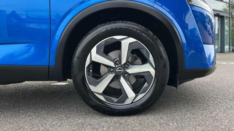 Android auto/Apple CarPlay (Wired), Blind spot warning, Drive modes (sport, normal, eco), Electric speed sensitive power steering, Emergency and breakdown call, Full Digital 12.3" TFT Digital Combimeter, Google maps services - search, weather, 3D maps and Google street view, Idle stop/start system, Intelligent around view monitor, Intelligent Cruise control (ICC), Intelligent driver alert system, Intelligent forward collision warning, Intelligent lane intervention, Lane departure prevention, Lane departure warning system, Maximum speed limiter, Moving object detection, Nissan connect 12.3 inch touchscreen infotainment system, Nissan connect navigation, Push button starter, Rear cross traffic alert, Rear parking sensors, Rear view camera, Remote control services - door locks, lights, horn and car locator, Telematics - notifications and connectivity services, TomTom live traffic services, Traffic sign recognition with legal speed adjustment, Trip computer, Virtual personal assistant and firmware over the air capability, Wireless apple carplay, 6 speakers, AM/FM audio system with DAB, Bluetooth audio streaming, Front USB connections (Type-A and Type-C), Rear USB charging only ports (Type-A and Type-C), Auto dimming rear view mirror, Auto rear wiper when reversing, Automatic hazard signal with emergency stop signal, Body colour mirror caps, Body coloured door handles, Bodyside mouldings, Chrome side window finisher, Door handle with button, Electric auto folding door mirrors, Electrically adjustable and heated door mirrors with LED turn indicator, Follow me home headlights, High beam assist, Intelligent auto headlights, LED daytime running lights, LED Headlights, LED rear lights, One touch front and rear electric windows with remote opening and closing, Partially body coloured bumpers, Privacy glass, Rear bumper with graphite insert, Rear reversing light (bulb lighting), Rear roof spoiler, Rear side wing doors, Rear styling plate, Shark fin antenna, Splash free rain sensing wipers, Super UV and infrared cut glass, Three blink turn signal, 12v power socket in dashboard and luggage, 2x Rear coat hooks, 3 bench rear seats in 2nd row, 3 rear headrests, 4 folding assist grip, 6 Luggage hooks - 4 on floor, 2 on side, 6-way manually adjustable driver's seat, 60/40 split folding rear seat bench, Ambient lighting around centre console, Centre console storage tray, Chrome interior door handles, Cloth monoform upholstery, Driver and front passenger sunvisors with illuminated vanity mirrors, Driver seat back pocket, Dual zone automatic climate control with pollen filter, Electrically adjustable lumbar support for driver, Front and rear door storage, Front centre console and armrest, Front cupholders x 2, Front door with bottle holders, Glovebox with light, Hard trunk cover, Height adjustable driver's seat, Height adjustable front headrests, Height adjustable passenger seat, Leather steering wheel, Luggage board system, Luggage space lighting, Manually adjustable passenger (slide recline + lifter), Multifunction steering wheel, Passenger seat back pocket, Rear armrest with 2 cupholders, Rear door bottle holders, Single front passenger seat, Soft PVC kneepad, Steering wheel gearshift paddles, Steering wheel switches, Sunglasses holder, Tilt/telescopic adjustable steering wheel, Two rear isofix child seat anchorage points with top tether, Welcome light and console tray ambient lighting, 3x3 point rear seatbelt pretensioners + load limiters, ABS with EBD and brake assist, Active brake limited slip, Auto hold function, Child locks on rear doors, Curtain and front side, far side airbags, Driver and passenger airbags, Driver, passenger and 2nd row rear seat belt reminder, Electronic parking brake, Front seatbelt pretensioners + load limiters, Height adjustable front seatbelts, Hill start assist, Intelligent blind spot intervention, Intelligent front emergency braking with pedestrian, cyclist recognition and junction assist, Intelligent rear automatic braking, Tyre pressure monitoring system, Vehicle dynamic control, Capless fuel filler, Engine immobiliser, Intelligent Key, Remote central door locking with deadlocking, Thatcham Cat.1 alarm, Interior instrumental panel B finisher, 18" Diamond cut alloy wheels, Tyre puncture repair kit,