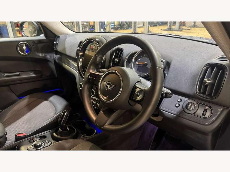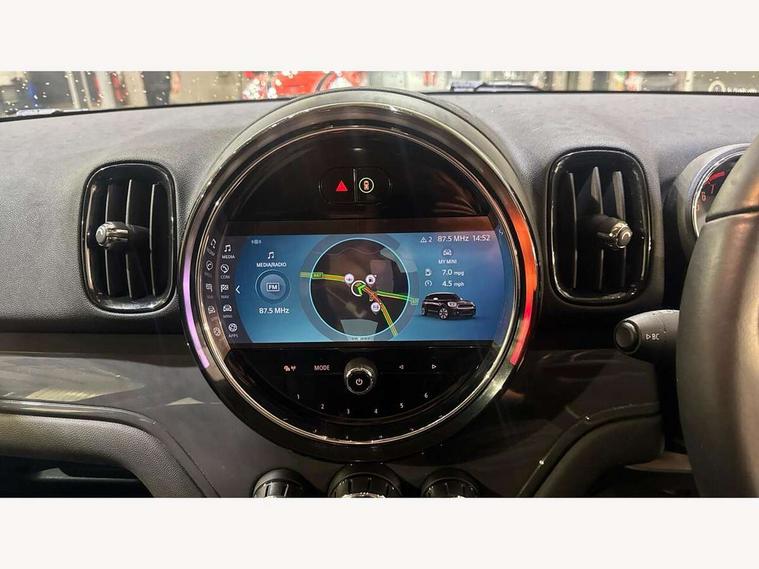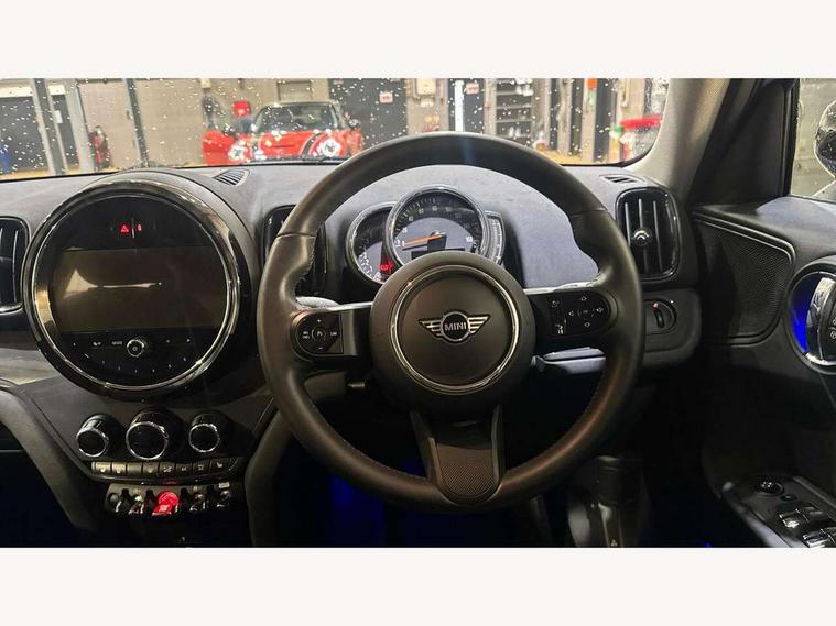 Active Guard incl speed limiting and lane departure functions with auto steering, and front collision warning with brake intervention, Automatic start/stop function with brake energy recuperation, Compatible mobile phone bluetooth with audio streaming, Cruise control with brake assist, Electro-mechanical speed dependant steering assistance, Instrument cluster, Mini E-call, On board computer, Rear parking distance control, 51 Litre fuel tank, Double Vanos system, Fully variable valve control, High precision injection, Performance Control, Steptronic transmission with double clutch, FM tuner and DAB digital radio, 3rd brake light, Body colour fuel filler cap, Day time driving lights, Door sill strips, Dynamic brake lights, Electric windows, Heated rear window, Heated windscreen washer jets, LED fog lights, LED Headlights, Left exhaust tailpipe with chrome finisher, Model logo, Model logo on Tailgate, Radiator grille, Rain sensor with auto headlights, Rear fog lights, Rear side wing doors, Rear window wiper, Side scuttle panel with integrated indicator, Split rear doors, Sun/heat protection glass, White indicator lenses, 12V socket in centre console, 3 seat bench in 2nd row, 3 spoke sport leather steering wheel + limiter function and audio controls, 360L luggage compartment capacity, 4 lashing eyes in luggage compartment, 40:20:40 split folding rear seats, Chrome interior highlights, Colour line - Carbon black, Cupholders, English handbook, Floor mats, Front headrests, Glove compartment, Headliner with grab handles and clothes hooks, Height and length steering column adjustment, Interior lighting with 12 basic colours selectable via toggle switch in roof, Isofix rear child seat preparation, Leather gearshift lever and handbrake gaiters, LED reading lights, vanity mirror lights, front foot well light and spotlight on front seats, Manual air conditioning, Mechanical seat adjustment, driver seat height adjust, forward/back and front seats backrest, Multifunction steering wheel, Passenger seat height adjuster, Rear headrests, Single front passenger seat, Storage compartments in doors, Sunvisors with vanity mirrors, Excitement pack - Countryman, Navigation pack - Countryman, 2 tone horn, 3 point seatbelts on all seats, 6 Airbags - front, side, head and seat belt tensioners, Anti-lock braking system (ABS), DSC - Dynamic Stability Control, Electronic handbrake, Front and rear disc brakes, Hill start assist, Manual rear child locks, Tyre pressure monitoring system, Alarm system with tilt sensor, monitoring doors, bonnet interior and tailgate, Auto drive away locking, Deadlocking function, Electronic vehicle immobiliser, Locking wheel bolts, Start/stop toggle with keyless go, Tool kit,