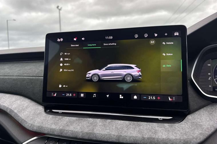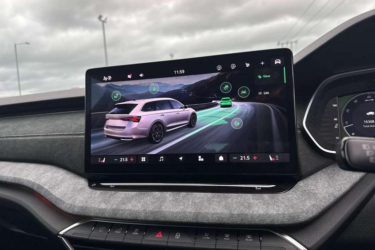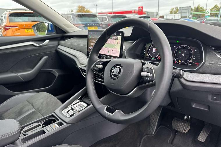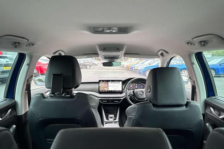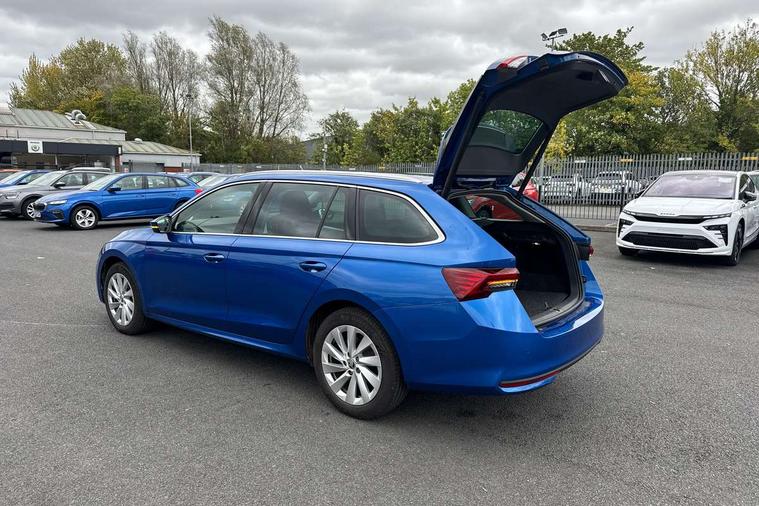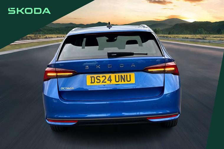 1x USB Typc C port in rear view mirror, 4x USB Type C ports - 2x in front centre console and 2x in rear (45W), Drive mode selection, Driver fatigue sensor, eCall emergency system, Electro-mechanical power steering, Front and rear parking sensors with manoeuvre assist, Front assist system, Traffic jam assist, Traffic sign recognition, Turn Assist, Virtual Cockpit - 10.25" digital display, Voice control system, Wireless charging (15W) with cooling function, Wireless SmartLink for Apple CarPlay and Android Auto, 13" touchscreen display with navigation, 8 speakers, DAB Digital radio, Aero front windscreen wipers with intermittent function, Auto dimming rear view mirror, Body colour bumpers, Body colour door mirrors and handles, Chrome grille surround, Chrome roof rails, Chrome strip in lower front bumper, Chrome window surrounds, Driver side auto-dimming door mirrors, Electric front and rear windows, Heated rear windscreen, High level third brake light, Ice scraper in fuel cap, LED daytime running lights, Logo projection in front doors, Preparation for tow bar, Rain and light sensors, Rear fog light on one side, Rear privacy glass, Rear side wing doors, Rear spoiler, Rear window wiper, Sunblinds for rear side windows, 12 volt socket in boot, 3 rear headrests, 3 seat bench in 2nd row, 4 foldable roof handles, Dual zone air conditioning, Front head restraints, Heated front seats, Illuminated glovebox, Interior door handles in dark chrome, Jumbo Box storage, Luggage compartment lighting x2 lights, Mechanical rear seat release from boot, Single front passenger seat, Steering wheel in black leather with black stitching, Storage compartments in left and right of boot, Sun visors with mirrors, Sunglasses storage, Ticket holder, Umbrella in door panel, Unsplit rear bench seat, split folding backrest with centre armrest with cupholder, Waste bin in door panel, Assisted drive package - Octavia DSG, Comfort package - Octavia Estate, Family package - Octavia, Light and view package plus - Octavia, Lounge Design Selection pack - Octavia, Simply clever package premium - Octavia, Winter package plus - Octavia DSG, 3x3 point rear seat belts, Alarm with interior monitoring, tilt sensor and back up horn, Curtain airbags and front side airbags, Driver and front passenger airbags, Drivers knee airbag, Electronic parking brake, ESC including ABS, EBV, MSR, ASR, EDS, HBA, DSR, Front central airbag, Hill hold assist, ISOFIX on front passenger seat and outer rear seats, Passenger airbag deactivate switch, Three point seat belts in front and rear, Two tone horn, Tyre pressure monitor, Visual and acoustic seat belt reminder, Warning reflectors in front door, Anti-theft wheel bolts, Keyless start/stop, Remote central locking, Chrome air vent surrounds, 17" Mensa aero alloy wheels, Tyre repair kit,