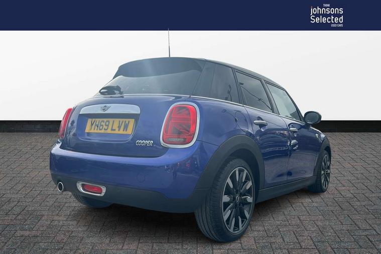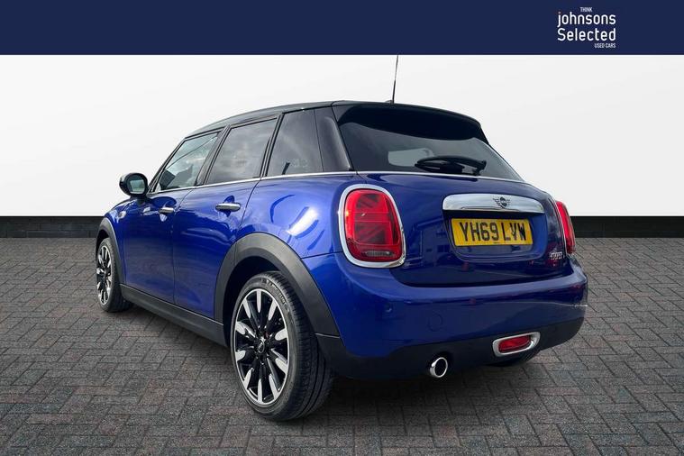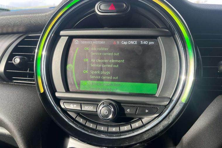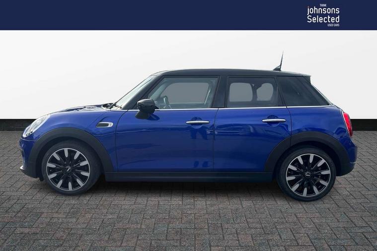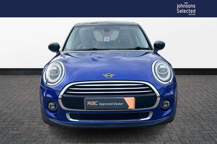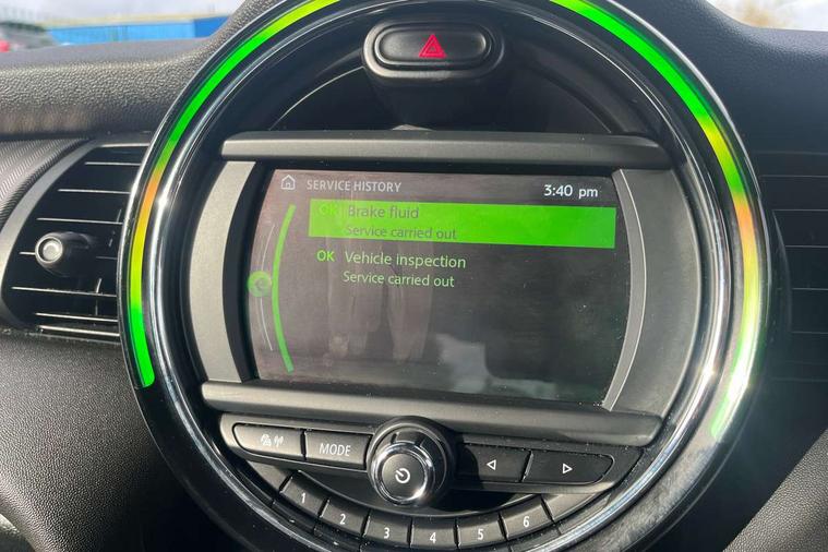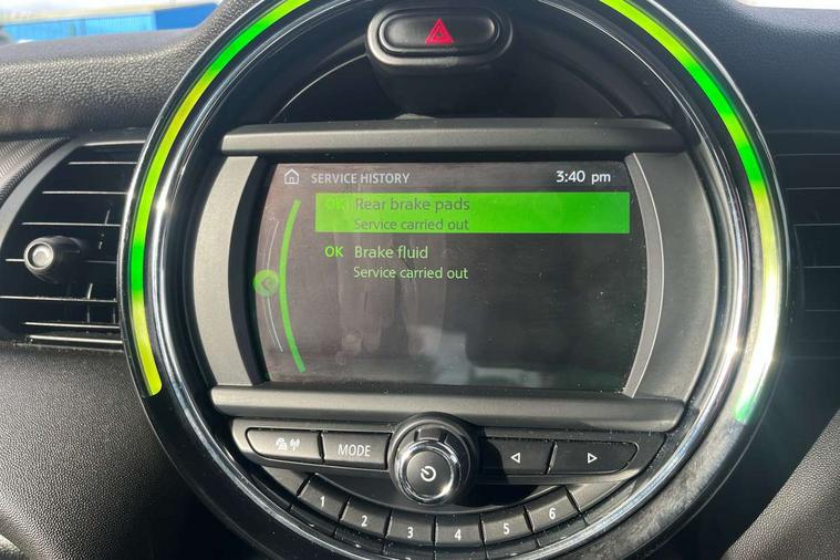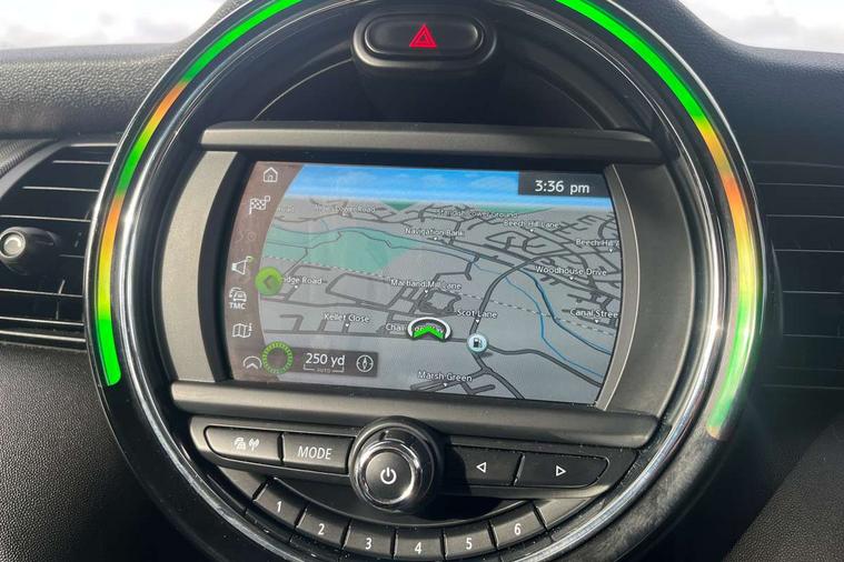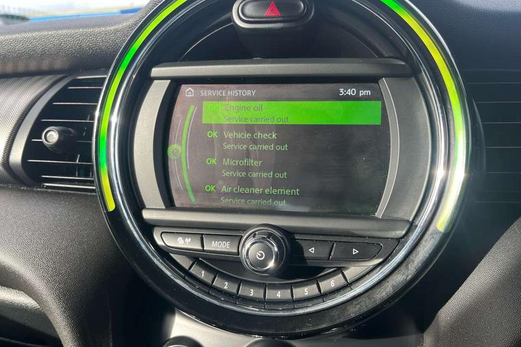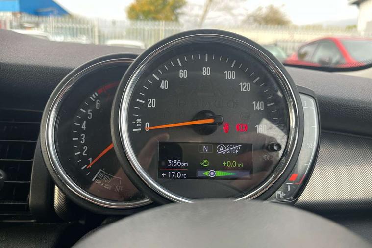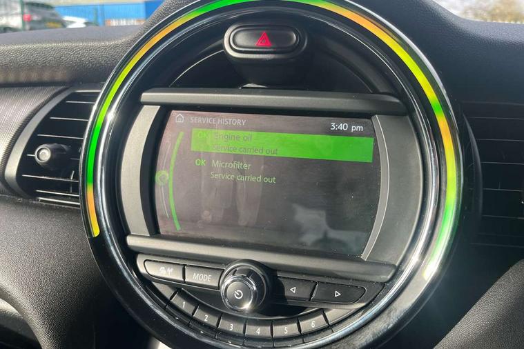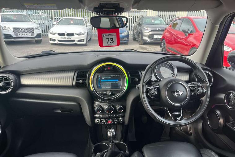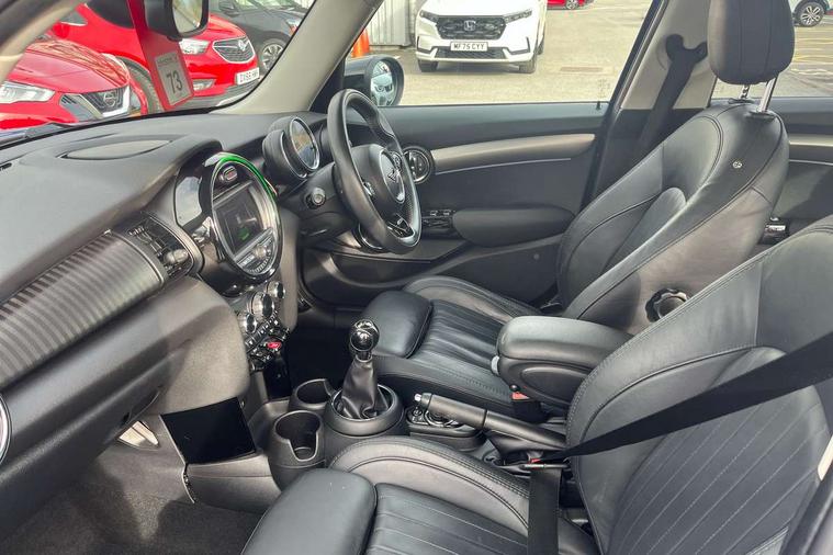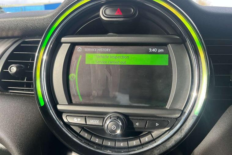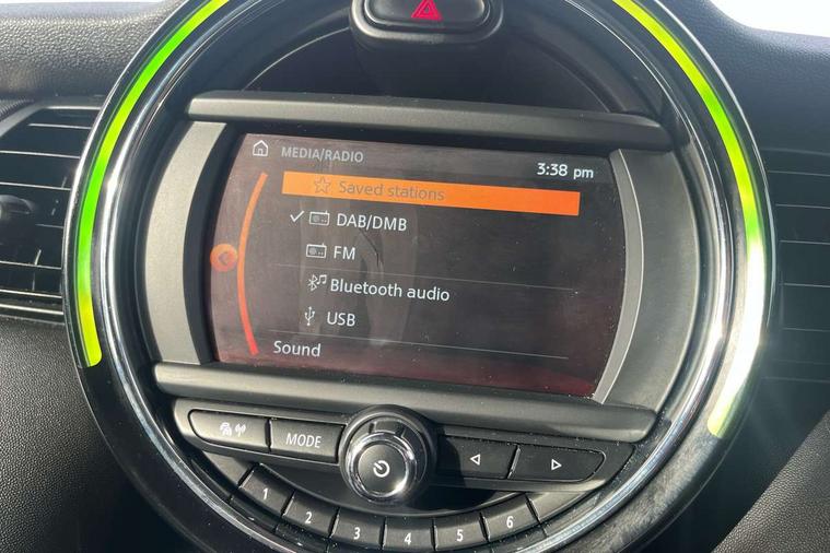Automatic start/stop function with brake energy recuperation, Compatible mobile phone bluetooth with audio streaming, Electro-mechanical speed dependant steering assistance, Instrument cluster, Mini E-call, MINI TeleServices, On board computer, Service interval indicator, Double Vanos system, Fully variable valve control, High precision injection, 6.5" touchscreen with LED ring, FM tuner and DAB digital radio, Automatic headlight activation switch, Body colour fuel filler cap, Chrome border high gloss black slats radiator grille, Chrome line exterior, Dynamic brake lights, Electric front+rear windows, Heated rear window, Heated windscreen washer jets, LED headlight with closed ring and daytime driving lights, Left exhaust tailpipe with chrome finisher, Metal door sill strips with MINI imprint, Model logo Cooper on right of tailgate, Radiator grille bars, tailgate handle, lower front grille grating, rear central fog light in chrome, Rain sensor window wipers, Rear fog lights, Rear LED lights with union jack design, Rear window wiper, Side scuttle panel with integrated indicator, Sun/heat protection glass, White indicator lenses, 12V Accessory socket in centre console, 4 lashing eyes in luggage compartment, 60/40 split folding rear seat, Air vents, gear lever base, speakers in doors, door handles in chrome, Chrome interior highlights, Cupholders, Front and rear head restraints, Front and rear isofix with front passenger airbag deactivation, Glove compartment, Height and length steering column adjustment, Interior lighting with 12 basic colours selectable via toggle switch in roof, Leather gearshift lever and handbrake gaiters, LED reading lights, vanity mirror lights, front foot well light and spotlight on front seats, Manual air conditioning, Mechanical seat adjustment, driver seat height adjust, forward/back and front seats backrest, Mini logo projection on floor from drivers exterior mirror, MINI Yours leather steering wheel with silver contrasting stitching with MINI Yours badge, Multifunction steering wheel, Storage compartments in doors, Sunvisors with vanity mirrors, 3 point seatbelts on all five seats, 6 Airbags - front, side, head and seat belt tensioners, Anti-lock braking system (ABS), DSC - Dynamic Stability Control, Front and rear disc brakes, Hill start assist, Single tone fanfare horn, Tyre pressure monitoring system, Alarm system with tilt sensor, monitoring doors, bonnet interior and tailgate, Electronic vehicle immobiliser, Start/stop toggle with keyless go, Chrome line interior, Tool kit,
