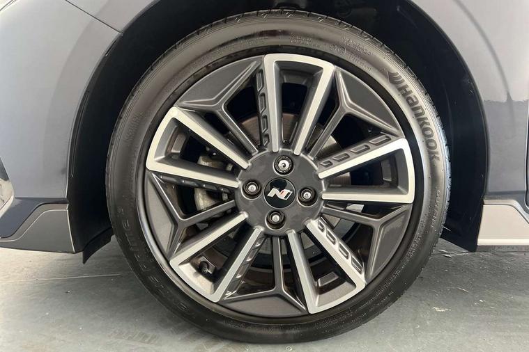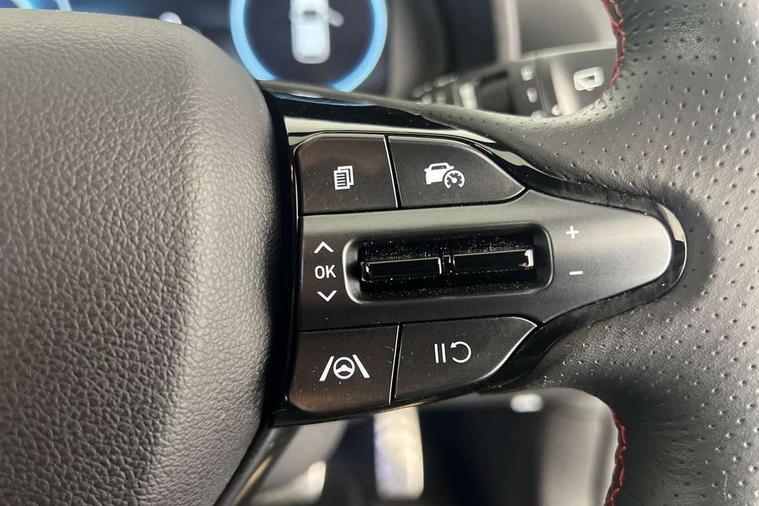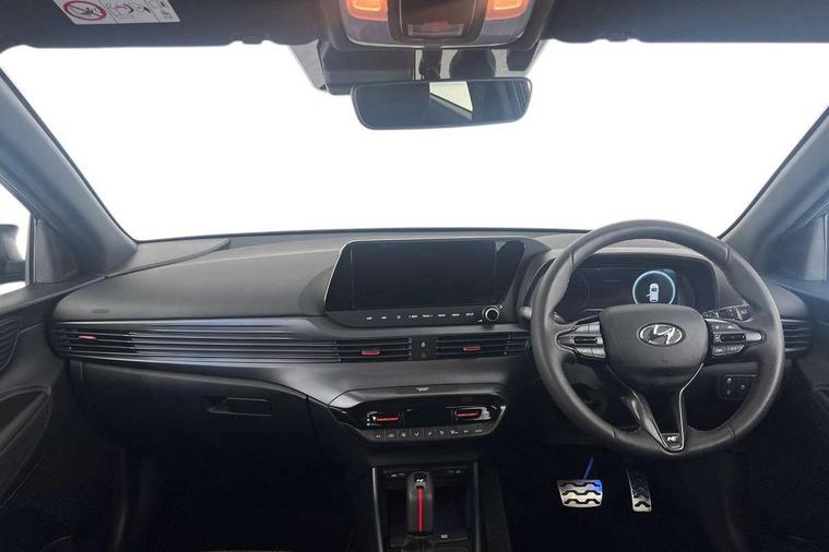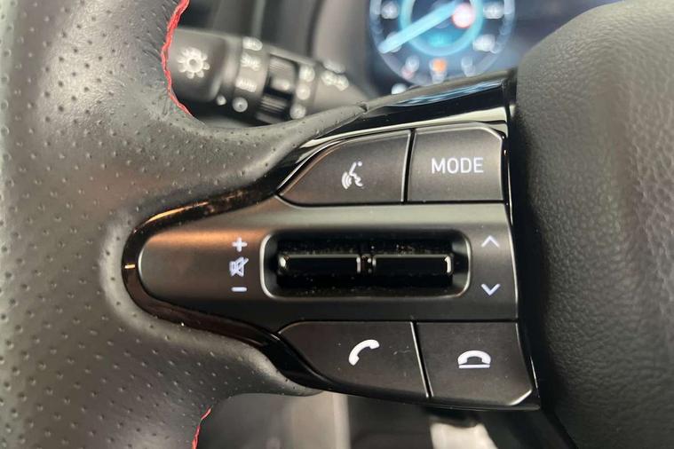 10.25" digital supervision cluster, 10.25" touchscreen centre console display satellite navigation including traffic messaging channel, map care and live services, Apple car play/Android Auto, Bluetooth connectivity with voice recognition, Cruise control + speed limiter, Drive mode selector, Driver alert system, eCall emergency call system, Electric power steering, Emergency stop signalling system, Forward collision assist with pedestrian monitoring and cycle detection, Haptic steering, Lane departure warning system, Lane keep assist, Rear parking sensor, Rear view camera, Trip computer, Vehicle Stability Control (VSC), 6 speakers (2 front, 2 tweeters, 2 rear), Auxiliary input socket, DAB Digital radio, Steering wheel mounted audio/telephone controls, USB connection, Adjustable intermittent front windscreen wipers with aero wiper blade, Auto dimming rear view mirror, Automatic defog system for front windscreen, Automatic headlights with dusk sensor, Automatic windscreen wipers with rain sensor, Black window surrounds, Body colour door mirrors with integrated indicators, Body colour exterior door handles, Body coloured bumpers, Drivers one touch up/down with anti-trap, Electric adjustable heated door mirrors, Electric folding door mirrors, Electric front windows, Electric rear windows, Front fog lights, High beam assist, LED rear combination lights, MFR - LED headlights, N line body kit bumpers, N Line exclusive gloss black radiator grille, Privacy glass - Rear windows and tailgate, Rear dual exhaust muffler, Rear side wing doors, Rear spoiler with integrated LED brake light, Rear Windscreen Wiper - Intermittent Function, Shark fin antenna, Signature LED daytime running lights integrated into headlamp, Static Cornering lights, Tinted windows, 12v power outlet - front, 3 seat bench in 2nd row, 60/40 split folding rear seat, Adjustable head restraints, Black roof liner, Blue interior mood lighting, Climate control, Driver/passenger sunvisors and illuminated vanity mirrors, Front armrest with storage box, Front map reading lights, Height adjustable driver's seat, Height/reach adjustable steering column, Isofix rear child seat preparation, Leather wrapped gear knob with N logo, Leather wrapped steering wheel with N logo, Luggage board, Luggage compartment lighting, N Line cloth trim with red stitching, Parcel shelf, Satin chrome interior door handles, Single front passenger seat, 3x3 point rear seatbelts, Anti-lock brake system (ABS), Autonomous emergency braking, Childproof rear door locks, Curtain airbags, Driver/Front Passenger airbags, ESP, Fasten seatbelt reminder, Front seatbelt pretensioners, Front side airbags, Height adjustable front seatbelts, Hill start assist control (HAC), Impact sensing auto door unlocking, Passenger airbag deactivate switch, Tyre pressure monitoring system, Deadlocks, Immobiliser, Locking wheel nuts, Perimeter alarm, Remote central locking, Smart key with keyless entry and engine start/stop button, Speed sensitive auto door locking, Black N line exclusive with red accents, 17" N Line exclusive design alloy wheels, Michelin Tyre brand, Tyre repair kit,