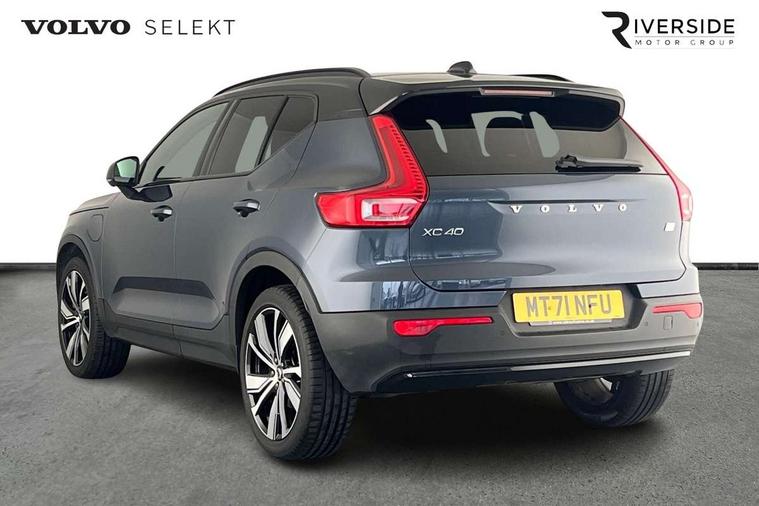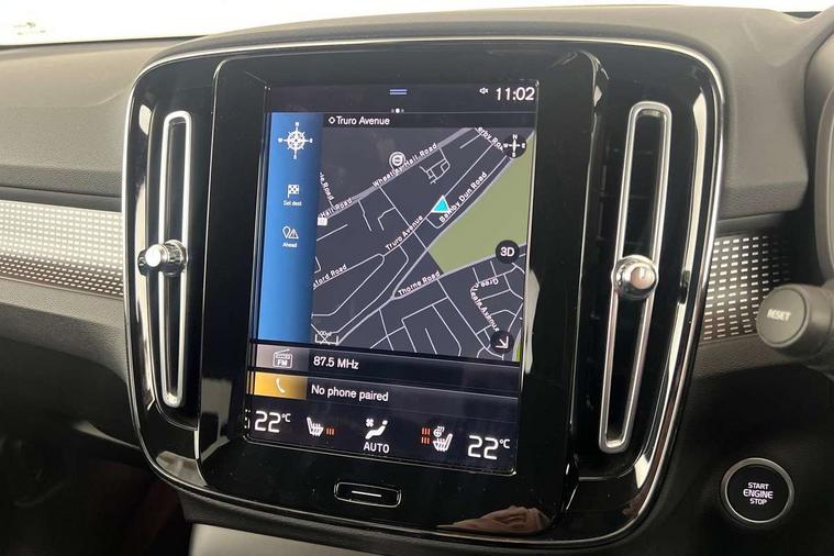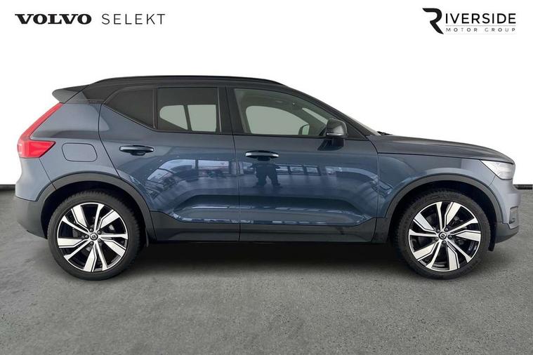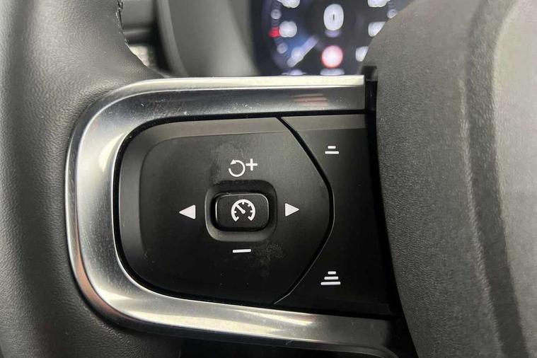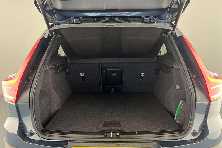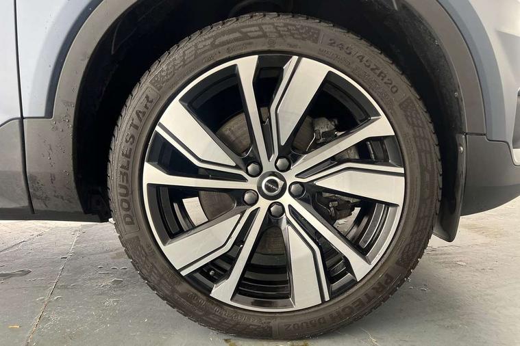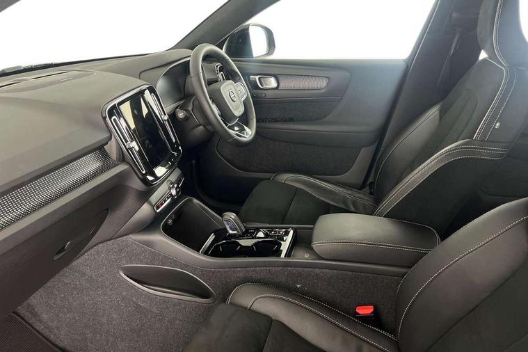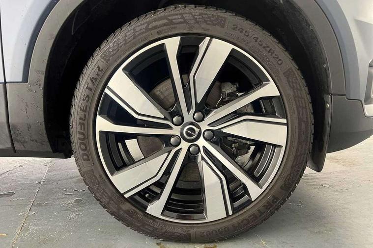 12.3" Active TFT crystal driver's instrument display, 9" centre console portrait touch screen, Adjustable steering wheel force, Bluetooth hands free telephone kit, Drive mode selector, E-call, Lane keep assist with driver alert control, Oncoming Lane Mitigation, Power operated tailgate, Sensus navigation with European mapping and traffic information, Speed limiter, Speed sensitive steering, Voice activated control for key functions, Volvo on call, 7m 10amp charge cable with 3 pin plug and 7m 1 phase 16amp type 2/mode 3 charge cable, Electric front axle drive, Recharging port located in nearside front wing, Sports chassis, DAB Digital radio, Low speed exterior sound speaker, Steering wheel mounted remote controls, Adaptive brake lights with high level LED brake lights, Auto dimming interior mirror, Automatic headlamp levelling, Automatic LED Headlights + Active high beam incorporating daytime running lights, Dark tinted windows for rear door side windows and cargo compartment, Electric adjustable/heated/auto folding door mirrors, Front aluminium tread plates, Front and rear electric windows, Heated front windscreen, High gloss black front and rear skid plate, High gloss black lower front bumper, High gloss black mesh front grille with high gloss black surround, High gloss black sensus surround deco, High gloss black window trim, Home safe and approach lighting, Integrated roof rails in high gloss black, Rain sensor with automatic windscreen wiper activation, Rear side wing doors, Rear wiper, Roof antenna, Roof spoiler, Visible VIN plate, 12V socket in front tunnel console and luggage compartment, 2 zone electronic climate control and rear air vent, 3 seat bench in 2nd row, 60/40 versatile split folding rear seat, A-pillar parking ticket holder, Bright metal luggage threshold, Centre console cupholders and storage, Charcoal headlining, Front footwell illumination, Front headrests, Front reading light and theatre lighting, Front seat cushion extensions, Glovebox bag hook, Heated front seats, Height/reach adjustable steering column, Height/tilt adjustable driver's seat, High gloss centre tunnel deco, Illuminated glovebox, Illuminated luggage compartment, Illuminated vanity mirrors, Isofix attachments on outer rear seats, Leather gearknob, Load protection net, Multi directional lumbar support, Power driver seat with memory + exterior mirrors memory, Rear armrest / integral cup holders / storage tray, Rear coat hook, Single front passenger seat, Sports floor mats, Sports pedals, Sports tailored steering wheel, Underfloor cargo storage, Vanity mirror with ticket holder, Lighting pack - XC40, 3x3 point rear seatbelts, City safety includes pedestrian, cyclist and large animal detection and front collision warning with full auto brake, Drivers knee airbag, Dual stage driver/passenger airbags, Electronic parking brake with auto hold, First aid kit, Front and outer rear seatbelt reminder and pretensioners, Front seats SIPS airbags, Hill descent control, Hill start assist, Inflatable curtain, Passenger airbag cut-off device, Road sign information display, Run off Road Mitigation, Run off Road Protection, SIPS (Side Impact Protection System), Slippery road and hazard light alert, Stability and Traction Control with Spin control, Engine Drag Control and Corner Traction Control, Tyre pressure monitoring system, Vehicle deceleration control with Anti-lock Brake System, Electronic Brake Distribution and Emergency Brake Assist, Warning triangle, WHIPS whiplash protection system - front, Anti-theft alarm including immobiliser/volume sensor + level sensor, Care key with user defined top speed, Key integrated remote control central locking + fuel flap with deadlocking system and auto open/close power windows, Locking wheel nuts, Private locking for tailgate, Cutting edge aluminium inlay, Lower dashboard, tunnel console and door panel in charcoal, 20'' 5 double spoke diamond cut/high gloss black alloy wheels,