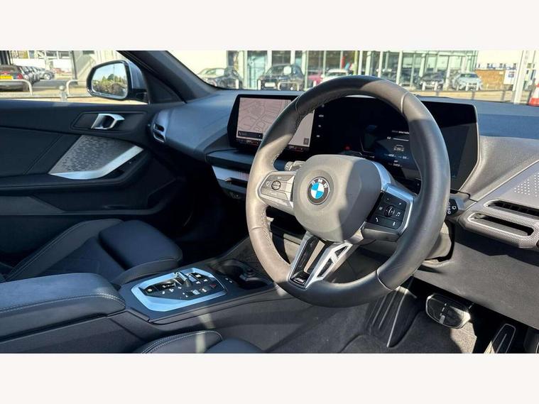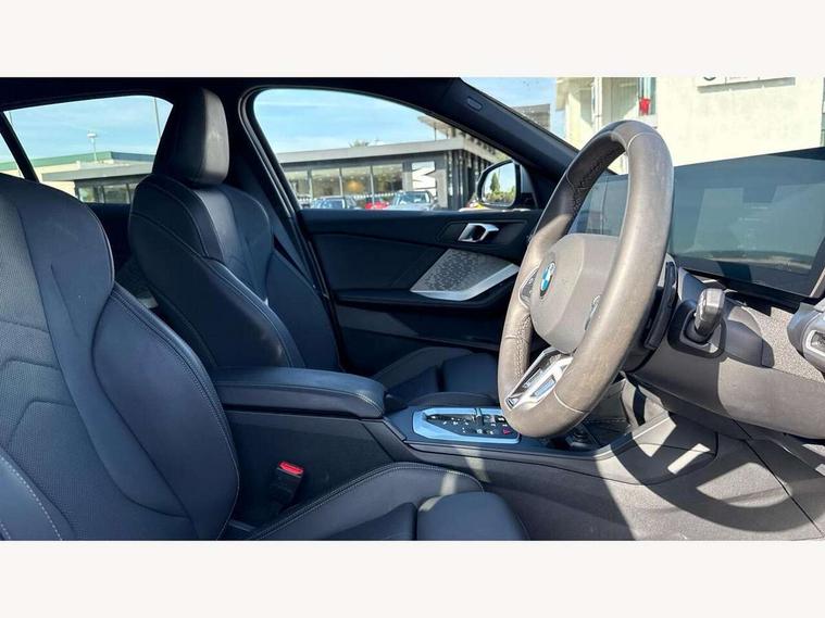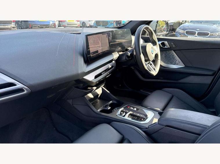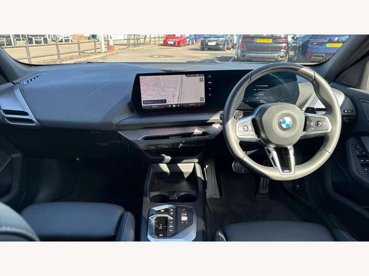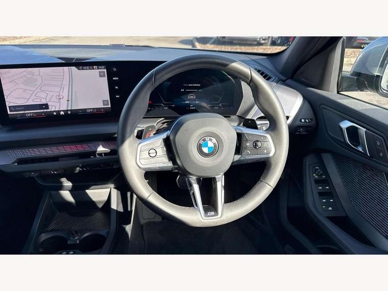 Active guard plus, Attentiveness assist, Bluetooth / WiFi interface for wireless connection of mobile terminal devices and audio streaming, BMW ConnectedDrive online services, BMW Live cockpit plus, BMW Teleservices, Check Control warning system for monitoring of lights and door/luggage compartment open warning, Eco pro mode, Electric power steering with Servotronic steering optimised at all speed ranges, Evasion assistant, Flat airvents in instrument panel with adjustable slats, Front and rear parking sensors, Front axle single joint with specific axle kinematics to minimise drive influences on steering + provide increased rigidity agile driving behaviour, Gearshift time display in manual mode, Integrated owners handbook, Left turn warning with brake function, My modes (Personal / Efficient / Sport), Oil sensor for level and grade, On board computer, Optimum shift indicator, Park assist including reversing assistant, lateral parking aid and reversing assist camera, Personal e-SIM, Personal Profile, Pull away assistant, Rigidly mounted rear subframe - Multi link construction with separate spring / damper configuration and excellent driving characteristics, Speed limit Info including no-overtaking indicator, Speed limiter, 49 litre fuel tank, Aluminium lightweight construction, Anti roll bar front and rear, Balancer shaft, Double VANOS twin scroll turbocharging system, Drive Performance Control, Electronic differential lock, Electronic selector lever, High precision injection, M Adaptive suspension, Petrol Particulate Filter, Steptronic transmission with double clutch, Twin tube gas filled shock absorbers with degressive characteristic curve, VALVETRONIC engine management, DAB Digital radio, Auto dimming rear view mirror, Automatic windscreen wipers and automatic headlight, Body colour door handles, Body colour mirror caps, Body colour roof trims, Chrome 'M' logo side designation, Chrome exhaust twin tailpipes round 90mm in left, Chrome kidney grille frame with Satin Aluminium struts, Direction indicator side lights in exterior mirrors, Electrically adjustable exterior mirror with mirror adjustment switch on drivers armrest and aspheric on driver side, convex on passenger side, Exterior M sport design elements, Fading support, Folding side mirrors with auto dimming/folding wing mirrors with auto dimming, Follow me home headlights, Front and rear bumper system with replaceable deformation elements, Front and rear electric windows with open and close fingertip control, anti trap facility and comfort closing, Front bumper panel with M specific design in vehicle colour with inserts in black high gloss, Front door sill finishers in black plastic with M designation in metallic look, Green tinted heat protection glazing, Heated rear window, High gloss black exterior mirrors, High gloss shadowline window frame, Recess cover mirror frames and B/C pillar embelisher trim, High level third brake light, Integrated front windscreen with washer jets, LED daytime running lights, LED eyebrow turn indicators, LED front fog lights, LED Headlights, Lightweight engineering, M identification on the sides, Matt black air guide grilles, Matt black wheel arch trim, Model badge on tailgate right, Nearside reverse light in rear light cluster, Preparation for high beam assistant, Rain sensor, Rear bumper panel with M-specific design in vehicle colour with inserts in black high gloss, Rear fog lights, Rear side wing doors, Rear window wiper, Shark fin antenna, Side sill covers with M specific design in body colour, Trailer stabilisation logic, Visible VIN plate, Welcome lighting, 12V power socket in front centre console with blanking plug, 3 rear seat head restraints, 3 seat bench in 2nd row, 3 spoke sports leather steering wheel with black leather and stitching, pearl chrome decorative finish, specific M Badge, Anthracite front and rear floor mats, Anthracite headlining, Black boot net with lashing eyes, Cargo function on 2nd seat row, Child seat ISOFIX attachment for two outer rear seats and front passenger seat with anchorage points, Conditioned based service, Driver and front passenger backrest net on rear, Driver and front passenger seat heating, Driver side folding compartment in instrument panel, Folding rear clothes hook, Footrest and pedals in black plastic, Four grab handles integrated in roof lining, Front and rear door pockets with bottle holders, Front and rear side armrest integrated into door trim, Front armrest with storage compartment, Gearshift paddles on steering wheel, Glove compartment, Height adjustable front head restraints, Luggage compartment for bag hooks on left and right, foldable luggage compartment liner and four lashing eyelets, Manual adjust steering wheel, Multi-function controls for steering wheel, Rear seat backrest with manual 60:40 split folding with 3 top tether clips integrated on rear of seat panels, Single front passenger seat, Storage compartment in centre console, Storage compartment in luggage compartment, Stowage of the parcel shelf in luggage compartment trim, Sun visors with vanity mirrors and insert tab, Two front centre console cupholders, Type C two USB ports in rear centre console, Upper retaining strap integrated into backrest rear panels, Connected pack professional - 1 Series, Interior lights pack - 1 Series, M Sport exterior styling aerodynamics pack - 1 Series, 2 tone horn, 3 point seatbelts on all seats, front pyrotechnic belt tensioners, stopper and belt force limiters, rear coded belt buckles, Airbags - Front driver/passenger, front and rear curtain head protection, front side, manual deactivation of front passenger airbag, Anti lock braking system (ABS) with brake assist, BMW emergency call, Brake drying, Braking readiness, Child proof locking system in rear door, Comfort modes, Cornering brake control, Crash sensor activating of airbags, Unlocking doors, hazard warning lights, interior light, safety battery terminal, Driver and front passenger seat belt sec