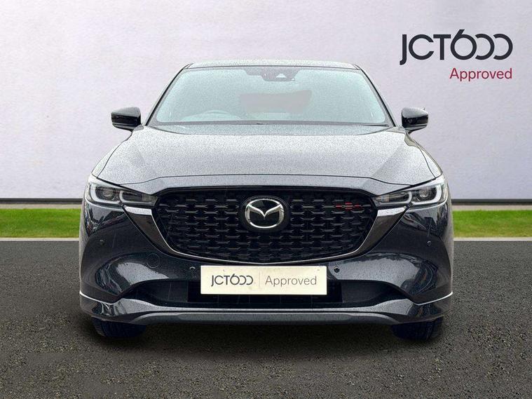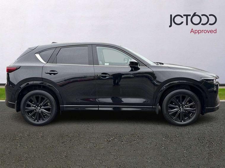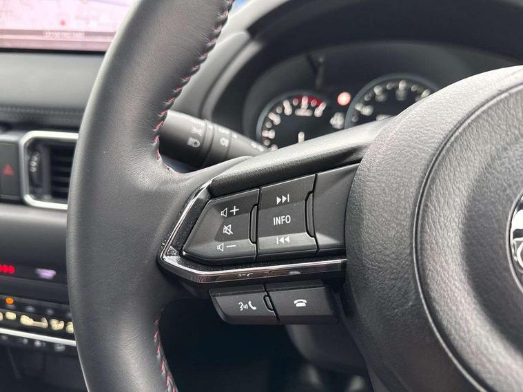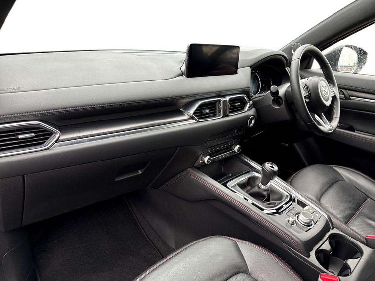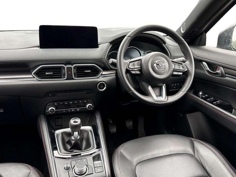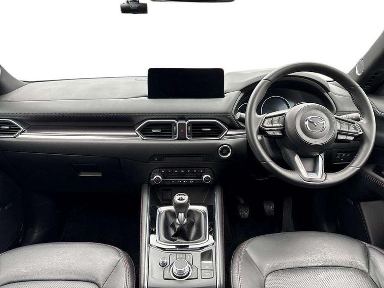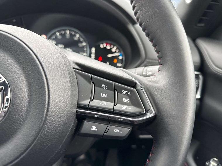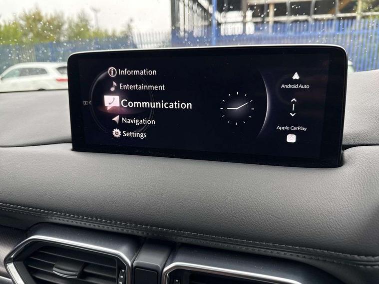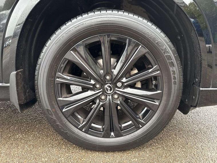 10.25" display with Mazda Connect infotainment, 7" colour TFT display, Advanced blind spot monitoring, Bluetooth connectivity with voice control, Collision prevention assist, Connected services, Cruising Traffic Support, Electric power steering, Emergency stop signalling system, Engine start/stop button, Forward collision warning, Front and rear parking sensors, Integrated navigation system, Intelligent speed assist, Lane departure warning system, Lane keep assist, Power liftgate, Qi wireless phone charging, Radar cruise control, Rear cross traffic alert, Reversing camera, Service indicator, Traffic sign recognition (TSR), Trip computer, Windscreen projected colour active driving display (HUD) with memory, Wireless apple car play/android Auto, Cylinder Deactivation, i-stop, AM/FM radio, Bluetooth audio streaming, Bose premium sound system with 10 speakers, DAB Digital radio, Multimedia Commander including separate volume dial, Steering wheel mounted audio controls, Adaptive front lighting system, Auto dimming rear view mirror, Automatic headlights, Black honeycomb door trim decoration panel, Black honeycomb interior decoration panel, Body colour roof spoiler, Coming/leaving home lighting function, Door mirror integrated indicators, Dual large chrome tailpipes, Dusk sensitive headlamps, Electric front/rear windows with one touch auto up/down, Front grille in gloss black finish, Front grille in gloss black with red accent + gloss black signature wing, Gloss black B and C pillars garnish, Gloss black door mirrors, Gloss black front and rear lower bumper mouldings, Gloss black tire arch and side mouldings, High beam assist, Intermittent rear wash/wipe, LED auto levelling, LED daytime running lights, LED front fog lights, LED Headlights, LED third brake light, Power folding and heated door mirrors, Power tilt/slide sunroof, Privacy glass (rear side windows only), Rain sensing front wipers, Rear side wing doors, Red front grille accent, Red stitching and accents on door trim, knee pad, console lid, steering wheel, shift boots, Scuff plates, Shark fin antenna, Signature LED rear combination lights, Windscreen wiper de-icer, 12v electrical power outlet, 3 seat bench in 2nd row, 3 stage heated front seats, 40:20:40 Karakuri fold-flat seat system, 6 way electric adjustable passenger seat, 8 way electric driver seat with lumbar support + memory, Black roof lining, Cargo room flat floor board with waterproof undertray, Driver seat power slide, recline and height adjustment, Driver, Front passenger and two rear grab handles with coat hooks, Driver/passenger front seatback pockets, Driver/passenger sunvisors + illuminated vanity mirrors (drivers with ticket holder), Dual zone climate control, Folding centre armrest with 2 cup holders, Front and rear door pockets, Front centre storage with two cupholders, Front passenger seat power slide, recline and height adjustment, Gear shift indicator, Heated steering wheel, Humidity sensor, Illuminated glovebox, Interior dome light with integral spotlight, ISOFIX child seat anchorage points attached on outer rear seats, Karakuri tonneau cover, Leather upholstery, Leather wrapped steering wheel and gear knob, Luggage compartment LED lightning, Luggage compartment power outlet, Rear air vents, Rear headrests, Rear seat recline, Roof mounted sunglasses holder, Single front passenger seat, Three height adjustable head restraints, Tilt/height adjustable steering wheel, USB Connectivity (2x front Type-C, 2x rear Type-B), White interior LED illumination lighting, 3 point front seatbelts with pre-tensioners, 3 rear 3 point seatbelts, ABS, Advanced Smart City Brake Support - SCBS, Child locks on rear doors, Driver and front passenger side airbags, DSTC-Dynamic Stability and Traction Control, Dual front airbags, Electronic brake force distribution, Electronic parking brake with auto hold, ESP, Front and rear curtain airbags, Front passenger airbag deactivation, G-Vectoring control, Hill hold assist, Seatbelt reminder front and rear, Single stage passenger airbags, Smart brake support with forward obstruction warning, Tyre pressure monitoring system, Automatic door locking when moving off, Deadlock, Immobiliser, Power door locks, Remote central locking, Smart keyless entry, Thatcham Cat.1 alarm, 19" Black alloy wheels, Tyre repair kit,