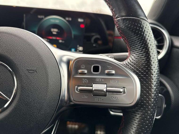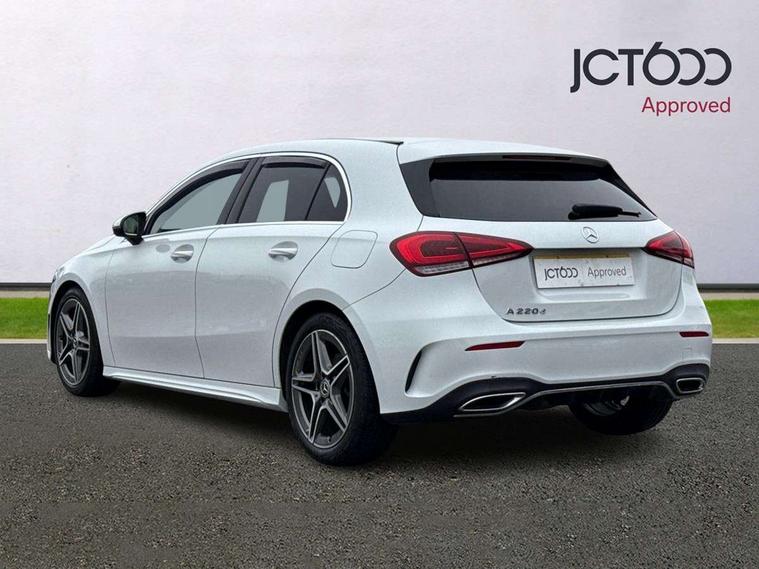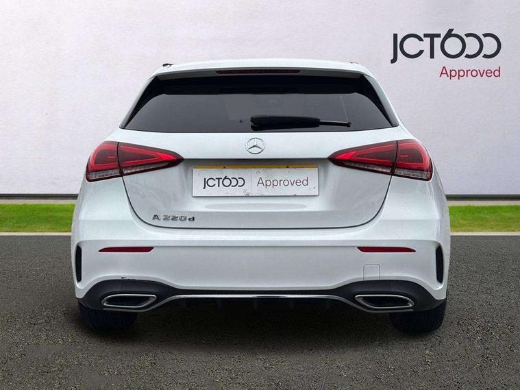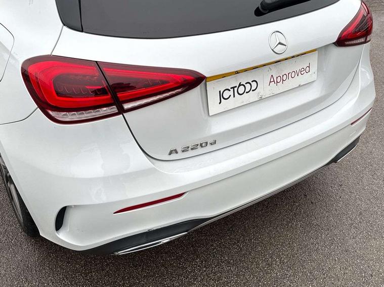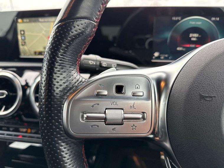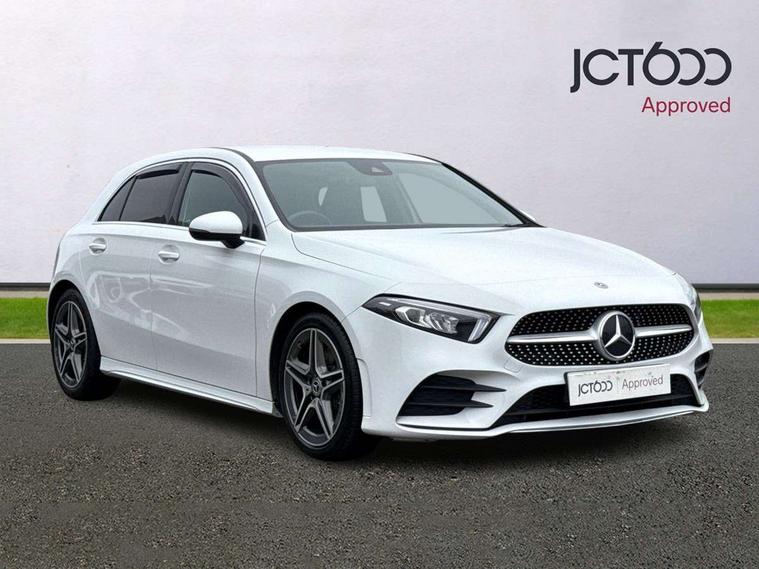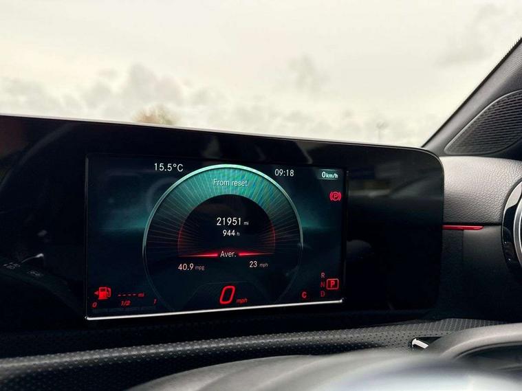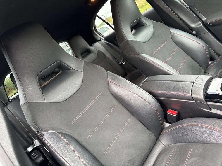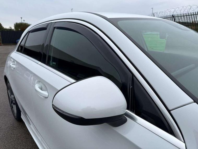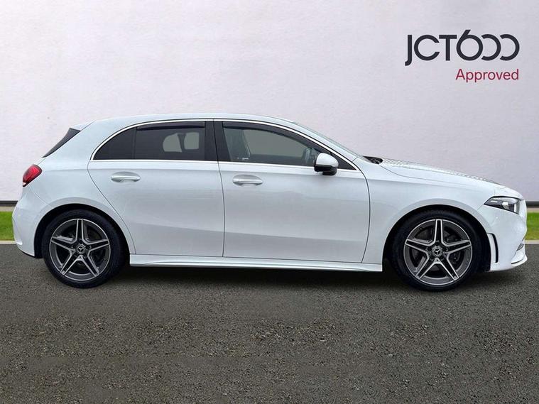 180 degree rear view camera with parking guidelines, 7" colour screen in instrument panel, 7" touchscreen media display, Attention assist, Brake pad wear indicator warning light, Car wash mode, Cruise control + speed limiter, Direct steering, Dual bluetooth interfaces, DYNAMIC SELECT with a choice of driving modes (ECO, Comfort, Sport and Individual), ECO start/stop function, Fluid level warning indicator for fuel, oil, coolant and washer fluid, Hard-disk navigation, Hey Mercedes Voice activation, Lamp failure indicator, Mercedes me connect including emergency call system, accident recovery, breakdown and maintenance management, Mercedes me remote services, Outside temperature gauge, Owners manual in English, Pre-installation for private car sharing, Preinstallation for Mercedes Benz link, Service indicator (ASSYST), Speed sensitive power steering, Trip computer, Lowered comfort suspension, Rear axle multi-link, 2 USB ports (type C) in rear stowage compartment and one in front of center console, 6 speakers, DAB Digital radio, MBUX multimedia system with DAB digital radio and touchpad including satellite navigation, Mercedes-Benz sound system - 100W, 4 Electric Front and Rear windows, Adaptive brake lights, AMG bodystyling - Front apron with splitter in chrome, rear apron with chrome trim and chrome visible trim elements in tailpipe, Black weather strip, Body colour bumpers, Body colour door handles, Body colour side skirt, Body coloured door mirrors, Chrome beltline trim, Diamond radiator grille with chrome pins and silver louvre + chrome insert, Electric adjustable and heated door mirrors with integrated LED side indicators, Exhaust system - Twin visible tailpipes in polished stainless steel, Headlamp assist automatic headlamp activation, Heated glass rear windscreen + timer control, LED high performance headlamps with integrated LED daytime running lights, LED tail lamp, LED third brake light, Privacy glass, Radio aerial, Rain sensing windscreen wipers with two sensitivity settings, Rear fog lights, Rear wiper, Window line trim strip in chrome, 3 Spoke flat bottom leather multi function steering wheel with perforated leather in grip area, 40:20:40 split folding rear seats, Artico man-made leather/Microfibre Dinamica upholstery with red contrast stitching, Auto Mercedes-Benz child seat recognition sensor, Black air vents with surround in silver chrome, Black roof lining, Brushed stainless steel sports pedals with rubber studs, Controller on centre console with chrome surround, Floor mats with stitched edging and AMG lettering, Front centre armrest with storage compartment, Front door sills with Mercedes Benz lettering, Front seat backs luggage nets, Front seat cushion length adjustment, Galvanished gear shift paddles on steering wheel, Heated front seats, Height/reach adjustable steering column, Interior mirror with reading lamps in black and frameless, Manual height adjustable front seats, Rear head restraints, Seat occupancy sensor for front passenger seat, Sports seats with integrated headrests, Stowage compartment in centre console with retractable cover, Sunvisors with illuminated vanity mirrors, Touchpad on center console, Twin front cupholders, Two zone thermotronic luxury automatic climate control, Light and sight pack - A Class, Seat comfort pack - A Class, 3 rear 3 point seatbelts, ABS with Brake Assist, Active bonnet, Active brake assist includes forward collision warning system with autonomous braking, Adaptive brake assist with hold function and hill start assist, Black seatbelts, Childproof locks manually operated for rear doors and electrically operated for rear power windows, Crash responsive emergency lighting, Driver and passenger head and side airbags, Drivers knee airbag, Dual stage driver/passenger airbags, Electronic parking brake, ESP curve dynamic assist, ESP with ASR, Front and rear seatbelt reminder, Front brake callipers with Mercedes Benz lettering, ISOFIX and top tether child seat fixing points in two outer rear seats, Tyre pressure monitoring system, Warning triangle and first aid kit, Window airbags, Alarm system/interior protection/immobiliser, Keyless Go, Remote central locking and crash sensor with emergency opening function, Urban guard vehicle protection system with immobiliser and interior protection, Dinamica microfibre trim in black, 18" AMG 5 twin spoke light alloy wheels in titanium grey with highsheen finish, Summer tyres, Tirefit sealant kit,
