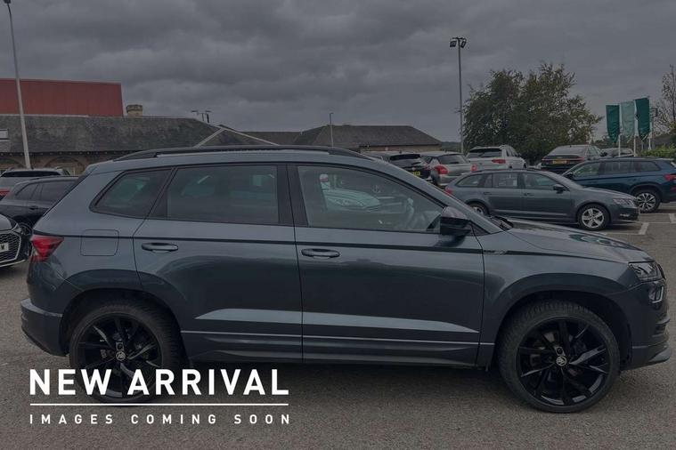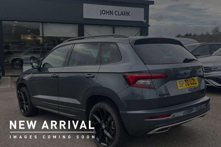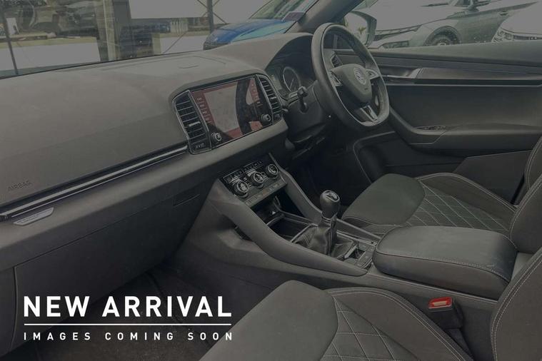 Care connect, Drive mode selector, Driver alert system, Driver fatigue sensor, Driver profile selection, Multifunction colour trip computer, Outside temperature gauge, Rear view camera, Service interval indicator, SmartLink + wireless for Apple and wired for Android, Start/stop system with regenerative braking, USB C Port x 2 in front centre console, DAB radio with Bluetooth, SD card slot, USB connection, Wireless charging without wireless aerial connection, Acoustic glass, Aero front windscreen wipers with intermittent function, Automatic headlight control system, Black electric window control buttons, Black roof rails and door mirrors with radiator grille, Body colour door handles, Electric front and rear windows with child proof lock, Front door steps with SportLine logo, Full LED headlights + adaptive front light system + LED daytime running lights and front cornering fog lights, Headlight washers, Heated rear windscreen, LED rear lights with high functionality, Light assistant (coming/leaving home/tunnel light), Panoramic sliding sunroof, Privacy glass, Protective door side sills in body colour, Rear diffuser, Safety reflectors on front doors, Skoda lettering on tailgate in black, Sportline badge on front fender, Sportline decorative inserts with badging, Sports front and rear bumpers, Third brake light, 1.5 litre bottle holders in driver and front passenger door panels, 12V socket in boot, 12v socket in front centre armrest with storage compartment and rear air vents, 2 Folding hooks and nets in boot, 2 Front readings lights for driver and passenger, 3 rear height adjustable headrests, 3 spoke leather sports heated multifunction steering wheel with hands off detection and silver stitching, 4 foldable roof handles with rear coat hooks, 4 lashing points on luggage floor, Aluminium pedals, Backrest release, Black roof headlining, Cargo elements in boot, Chrome inner door handles, Door sill scuff plates, Driver and passenger seats height adjust, Front head restraints, Front seat and rear pockets, Height adjustable front three point seats belts with tensioners, Height/reach adjust steering wheel, Ice scraper, Illuminated and cooled glovebox, Illuminated luggage compartment, Isofix child seat preparation outer rear, Manual lumbar support for front seats, Net programme in boot, Pen holder, Pollen filter, Rear boot cover, Rear reading lights, Rear seats fixed folding and divided 60:40, Retractable parcel shelf attachable to tailgate, Safety vest holder, Storage box in upper central dashboard closed, Storage compartment below the passenger seat, Sunvisors with illuminated vanity mirrors, Textile floor mats, Umbrella under passenger seat, LED Interior lighting pack with Skoda welcome logo - Karoq, Airbags - Front side, head, knee and curtain, Automatic door unlocking in case of crash, Automatic fuel cut off in case of crash, Driver airbag, Electronic parking brake with auto hold function, Emergency rear braking signal, ESC including ABS, MSR, ASR, EDS, HBA, DSR, RBS, MKB and traction control, Front assist radar scanning of the space in front of the car with automatic braking, Hill hold control, Passenger airbag with switch-off function, Pedestrian monitor, Seatbelt reminder signalisation and pretensioner for all seats, Three point seatbelts rear, Two tone horn, Tyre pressure display, Tyre pressure monitor, Alarm with interior monitoring, back up horn and tilt sensor with safe function, Electronic engine immobiliser, Keyless entry and keyless start with safe system, Remote central locking with 2 remote folding keys, Black air vent surround, 19" Vega anthracite alloy wheels, Anti-theft wheel bolts protection, Storage on wheel cover,