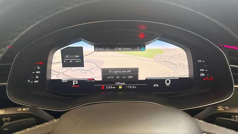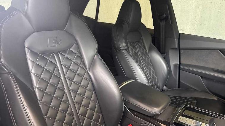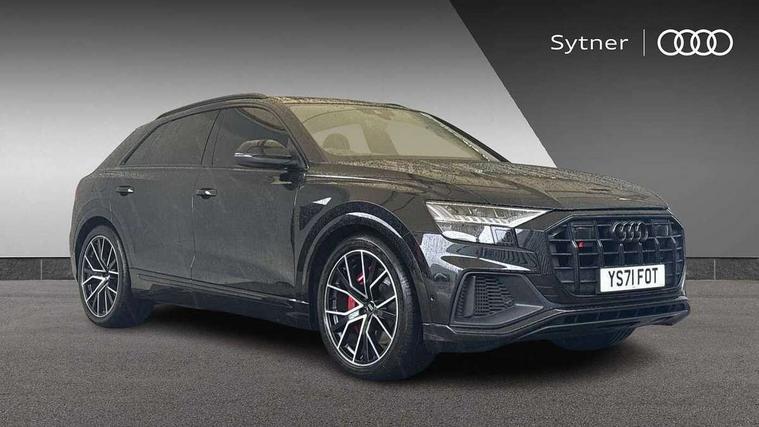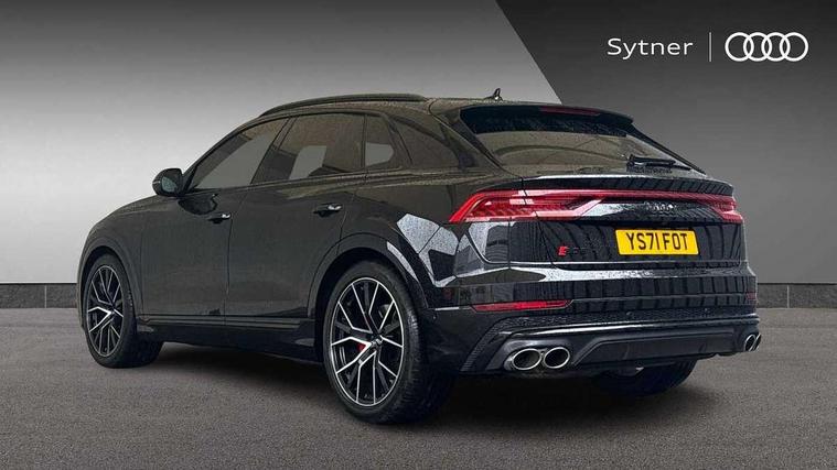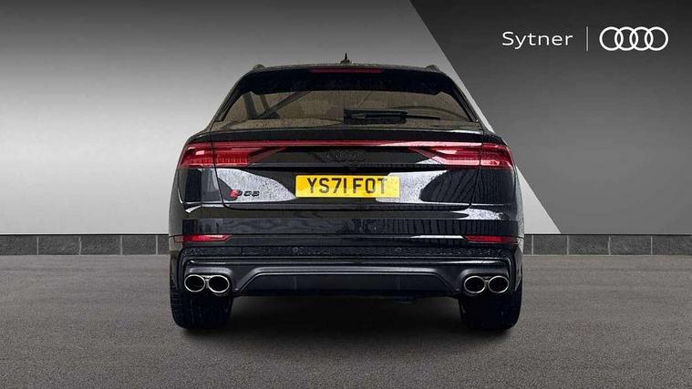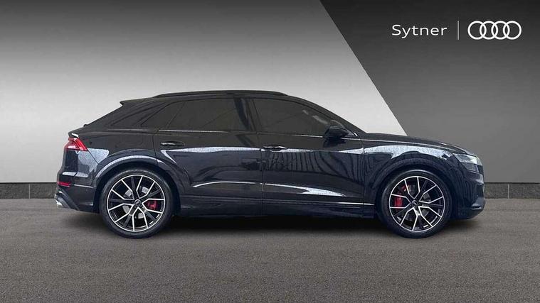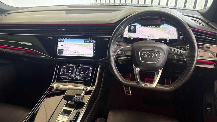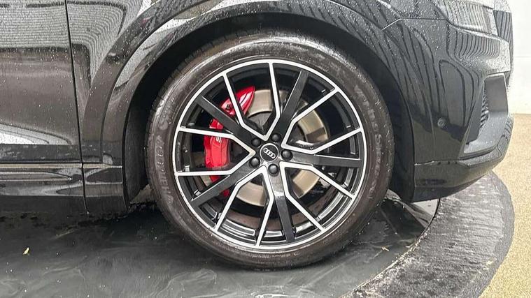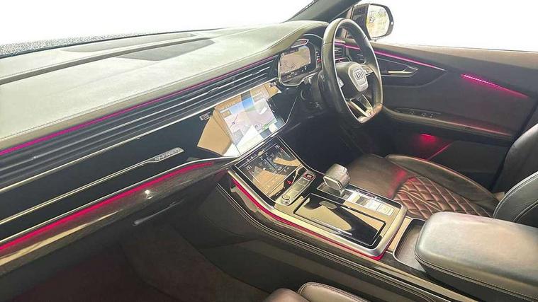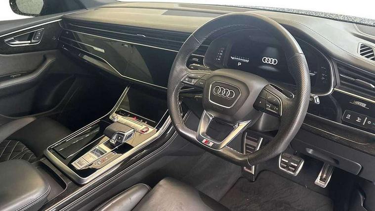 10.1" and 8.6" Dual colour touchscreens, All wheel steering, Audi connect safety and service (e-call), Audi connect with Amazon Alexa Integration, Audi drive select, Audi parking system plus includes 360 degree display with front and rear sensors, Audi virtual cockpit - 12.3" high resolution LCD display with fully customisable instrument cluster, Automatic start/stop system, Electro-mechanical PAS, Low washer fluid indicator, MMI - Multi Media Interface control system, MMI navigation plus with MMI touch, Natural voice recognition, On board computer, Operating buttons in black, glass look with haptic feedback, Power operated tailgate, Rear view camera, Service interval indicator, Smartphone interface includes wireless Apple carplay/Android Auto, 48V Mild hybrid technology, 85 litre fuel tank, Quattro all wheel drive with self locking centre differential, S specific Adaptive air suspension, Audi music interface with 2 USB ports with charge and data functions, Audi sound system with 6 channel amplifier, 180 watt amplifying capacity and 10 loudspeakers including subwoofer, Aux-in socket, DAB Digital radio, 3rd brake light, Acoustic windscreen, Audi Beam uses LEDs to project the Audi logo, Audi HD Matrix LED headlights with dynamic front and rear indicators, Auto dimming frameless rear view mirror, Body coloured bumpers, Coming/leaving home lighting function, Electric front+rear windows, Electrically folding auto dimming/adjustable/heated door mirrors with memory function, LED side indicators and kerb view function for passenger side, Gloss black finish for exterior Audi rings and SQ8 logo, Headlight washers, Heat insulating glass in windshield, LED signature daytime running lights, Platinum grey front spoiler lip and diffuser insert, Privacy glass - dark tinted rear and rear side windows from B-pillar backwards, Rain and light sensors, Rear side wing doors, Rear wiper, S specific dual brach chrome tailpipes on both the left and right, S specific front and rear bumpers, S specific side skirts in matt selenite silver, Side air inlet grilles in matt titanium black, Trim and underbody protection in matt selenite silver, 4 zone deluxe automatic climate control, 4-way lumbar support for front seats, 40:20:40 split folding rear bench seat, Black cloth headlining, Comfort front centre armrest, Driver seat memory function, Electrically adjustable front seats, Front head restraints, Front/rear floor mats, Heated front seats, Illuminated door sill trims, ISOFIX child seat mounting for front passenger seat and 2 outer rear seats with top tether child seat mounting for all 3 rear seats, LED interior ambient lighting, Luggage compartment sill protection in stainless steel, Rear centre armrest with 2 cupholders, Rear headrests, Rear seat bench plus, Single front passenger seat, Stainless steel pedals, Sunvisors with illuminated vanity mirrors, Upper and lower interior elements in leather, leather door armrests, Titanium Black Styling Pack - Q8, 3 point seatbelts on all seats, Audi pre sense front, Child locks on rear doors, Driver and front passenger, front side and curtain airbags, Electromechanical parking brake, Electronic Stability Control (ESC) including ABS, ASR and EDL, Front passenger airbag deactivation, Hill descent control, Hill hold assist, Predictive pedestrian protection, Seatbelt monitoring, Traction control, Tyre pressure loss indicator, Warning triangle and first aid kit, Anti theft alarm with tow away protection, Anti-theft wheel bolts and wheel loosening detection, Immobiliser, Keyless go with remote central locking, Polished oak trim with grey finish inlay, Tool kit, Tyre repair kit,