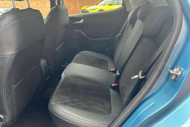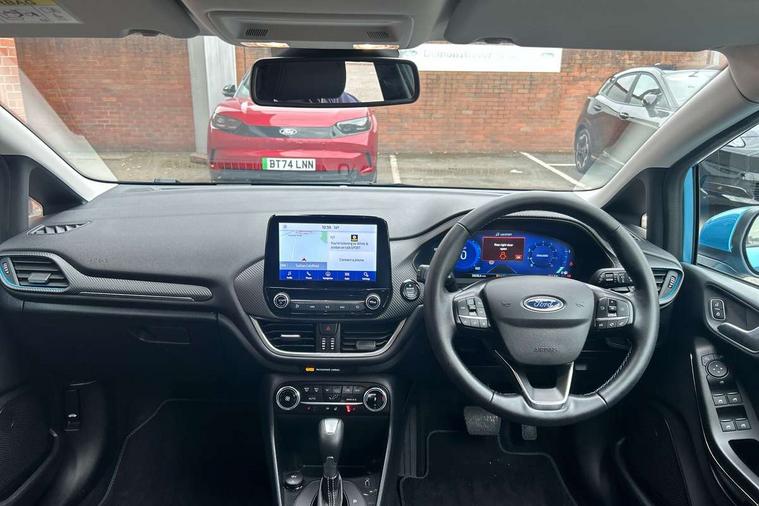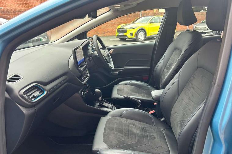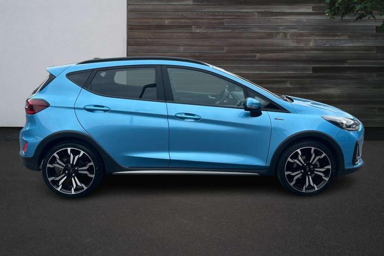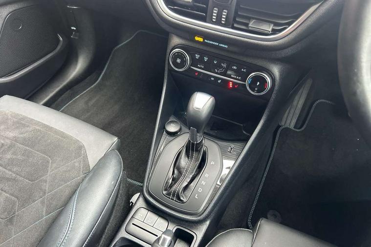 12.3" Full digital cluster, Driver alert system, Electric power steering, Extra selectable drive modes ( Trail, Slippery), Ford easy fuel, Ford SYNC 3 Nav with DAB radio, 8" touch screen, voice control, emergency assist, Apple CarPlay/Android auto, 2x USB, 6 speaker, Ford pass connect, Rear parking distance sensors, Rear view camera, Speed sign recognition, Trip computer, Wrong way alert, Rough road suspension with increased ride height adjust, Auto high beam, Body colour bumpers, Body coloured electrically operated with side indicators, Electric front windows/one touch facility, Electric rear windows, Front ST line scuff plate, LED Night signature to rear lights, LED third brake light, Quickclear heated windscreen, Rain sensing wipers and auto dimming rear view mirror, Rear privacy glass, Rear side wing doors, Rear wiper, Rugged bodystyling kit with active front wing badges, Silver roof rails, 3 seat bench in 2nd row, 4 way manually adjustable passenger seat, Adjustable head restraints, Centre console with opening armrest, 2x cupholders, 12v and USB, Drivers and Passenger lumbar support, EATC - Electronic Auto Temperature control, Front floor mats in velour, Leather gear knob, LED ambient lighting, Manual 4-way driver seat adjust, Sensico partial premium leather upholstery with blue stitching, Sensico wrapped steering wheel, Single front passenger seat, NCAP Pack - Fiesta, Winter pack [GTBAB]- Fiesta, 3 point seatbelts on all rear seats, Electronic stability control with hill start assist, Manual child lock in rear doors, Tyre pressure monitoring system, Ford keyfree system with Keyless entry and keyless start, MyKey system, Remote central locking, Thatcham alarm with power door dead locks, 18" 5x2 spoke alloys with bi-colour black machined finish,