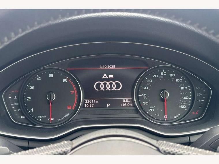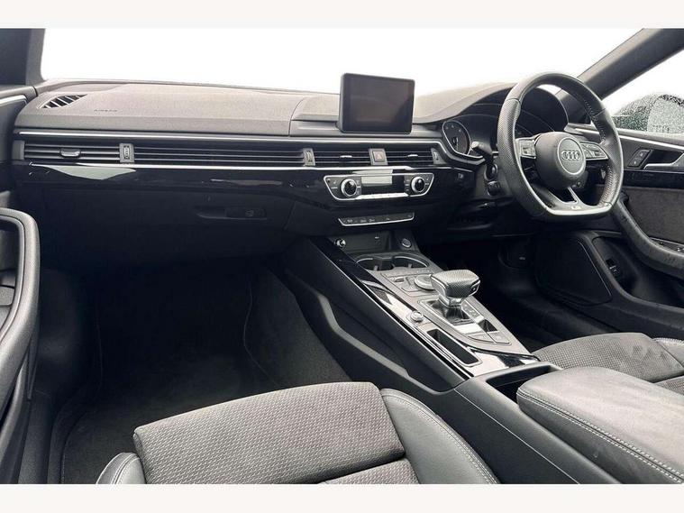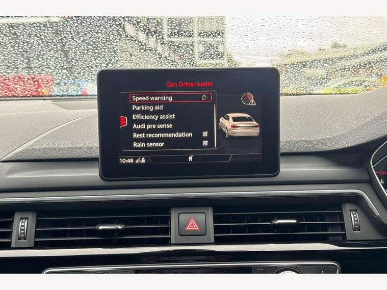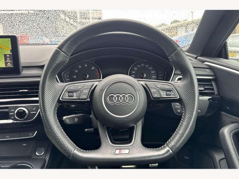7" Colour driver information system, Audi connect, Audi drive select, Audi parking system plus with front and rear sensors, Audi smartphone interface, Automatic start-stop system with coasting functionality and efficiency programme, Bluetooth interface, Electric boot release, Electro-mechanical power steering, MMI Navigation, Service interval indicator, Voice control system, CD player, DAB Digital radio, Two SDXC card slots, Air inlets in titanium black with matt aluminium inlay, Auto dimming rear view mirror, Body colour bumpers, Chrome plated exhaust pipe, Electric adjustable heated door mirrors, Electric front windows, Front fog lights, High beam assistant, High gloss black door mirrors, Rain and light sensors, Rear diffuser in Twilight grey matt with honeycomb grille, S Line body styling, S line sill plates, S style high gloss black rear spoiler, Side and rear windows privacy glass, Titanium black frame and radiator grille, Titanium black front and rear air intakes, Titanium black window surround, Windscreen with acoustic glazing, 2 x USB charging port with aux input socket, 3 spoke flat bottom high multi-function leather steering wheel, 40/20/40 split folding 2 seater rear seat bench with rear centre armrest, Adjustable steering column, Black headlining, Black perforated leather gearknob, Centre console with cupholders, Contrast stitching on seats, steering wheel and gear lever gaiter, Deluxe 3 zone electronic climate control, Front centre armrest, Front head restraints, Front/rear floor mats, Gearshift paddles, Illuminated door sills, ISOFIX child seat mounting and top tether, Jack and tool kit, Luggage compartment mat, Rear headrests, S embossed logo on front sport seats, Stainless steel pedals and foot rest, Non Smokers pack, 6 airbags - Driver, front passenger, curtain and side airbags, Electromechanical parking brake, Electronic Stabilisation Control (ESC) including ABS, ASR and EDL, Front passenger airbag deactivation, Height adjustable front seatbelts, Hill hold function, Multi-Collision braking, Pop-up bonnet for pedestrian protection, Pre sense city, Seatbelt monitoring, Tyre pressure warning, Variable restraint system, Warning triangle and first aid kit, Anti theft alarm system, Anti theft wheel bolts, Immobiliser, Keyless Go, Remote central locking, Piano black finish inlay, 20" 5 arm rotor alloy design wheels with matt titanium finish, Tyre repair kit,