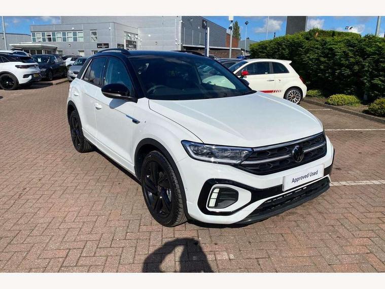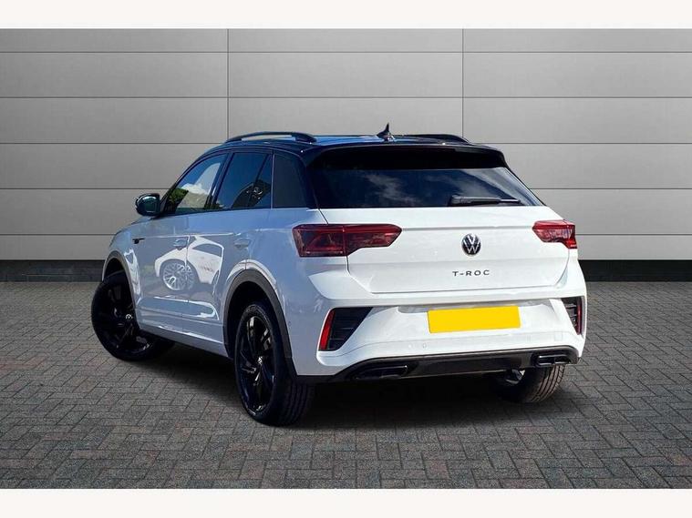 10.25" Digital cockpit pro, Advanced driver attention and drowsiness monitor, Emergency call service, Lane keeping system Lane Assist, Mobile phone interface, Modified key software - reduce switch off time for key status change to Long no motion, Online services, Park assist including front and rear parking sensors, Power assisted speed sensitive steering, Service interval indicator, Tailgate/trunk lid release from outside, Think blue trainer driver tips and journey analysis, Warning sound and light for front seatbelts unfastened, Wireless app connect, Battery regeneration during braking, Rear shock absorption chassis with increased ride height, Start/stop function with battery regeneration, DAB Digital radio, Diversity antenna for FM reception, Front and rear 6 speakers, Music playback - MP3, WMA and AAC files, Premium USB cable in choice of either Apple or Android smartphone compatibility, SD card slot, Simultaneous pairing of 2 compatible mobile devices, Title and cover art display, We Connect and We Connect Plus functionality, Auto dimming interior rear view mirror, Automatic hazard lights activation under emergency braking, Automatic headlight control with LED separate daytime running lights with coming/leaving home function, Dynamic cornering light, Electrically adjustable and heated door mirrors, Extended roof spoiler, Exterior mirrors aspherical on driver side, convex on front passenger side, External USB type C socket and charging sockets, Front windscreen wiper with intermittent wipe and 4 position delay, Heated rear window, Illuminated front grille, IQ LED matrix headlights, LED 3rd brake light, LED rear number plate lights, LED rear tail lights with dynamic turn signal, Light mode for poor weather, rain, fog or snow, Power windows with comfort operation and circuit breaker, R-Line design body coloured bumpers, Rain sensor, Rear exhaust tailpipe, Rear fog light on one side and reversing lights on both sides, Rear side wing doors, Rear wash/wipe with intermittent wipe setting, Remote electrically foldable door mirrors, puddle lights and reverse activated passenger's door mirror, 12V power socket in centre console, 3 rear head restraints, 3 seat bench in 2nd row, 4 load lashing points in luggage compartment, Air care climatronic air conditoning system with active combination filter and 2-zone temperature control, Artvelours cloth upholstery, Black roof lining, Chrome plated radiator grille inserts, air vent surrounds and light switch surrounds, Door and side trim panel with leatherette insert, Drawer under drivers seat, Driver seat height adjust, Driver's seat lumbar support, Front + rear carpet mats, Front centre armrest, Front comfort sports seats, Front cupholders x 2, Front footwell illumination, Front reading light, Front scuff plates with R Line logo, Front seat back storage pockets, Glove compartment door with light, Instrument lighting, white adjustable panel illumination, Interior ambient lighting and surround lighting, Interior light delay, Isofix child seat preparation, Leather gearshift handle, Leather wrapped multifunction steering wheel with paddle shift, Load-through provision with cup holder when folded down ('Unsplit rear seat bench, split folding backrest, with centre armrest), Luggage compartment lighting, Non-folding front passenger seat backrest, Passenger seat height adjuster, Passenger seat lumbar support, Single front passenger seat, Stainless steel pedals, Storage compartment in left and right luggage area, Storage compartment in rear doors, Storage compartments in driver and front passenger doors, Sunvisors with illuminated vanity mirrors, Variable boot floor, height adjustable and removable, Winter pack without heated windscreen washer jets - T-Roc, 3 point height adj front seatbelts + pretensioners, 3 point seatbelts in outer rear with ECE label, ABS, Child locks on rear doors, City emergency braking and pedestrian monitoring, Driver and front passenger airbag with front passenger airbag deactivation, Driver and front passenger safety-optimised head restraints, Drivers seatbelt reminder, Electronic parking brake, Electronic Stability Control (ESC) inc EDL (Electronic Differential Lock) and ASR (Traction Control), Front and rear passengers curtain airbag system including front side airbags, Front disc brakes, Hill start assist, Predictive pedestrian protection, Rear disc brakes, Two tone horn, Tyre pressure loss indicator, Volkswagen roadside assistance, Tool kit, Trims for alloy wheels, Tyre mobility kit including compressor and sealing foam,